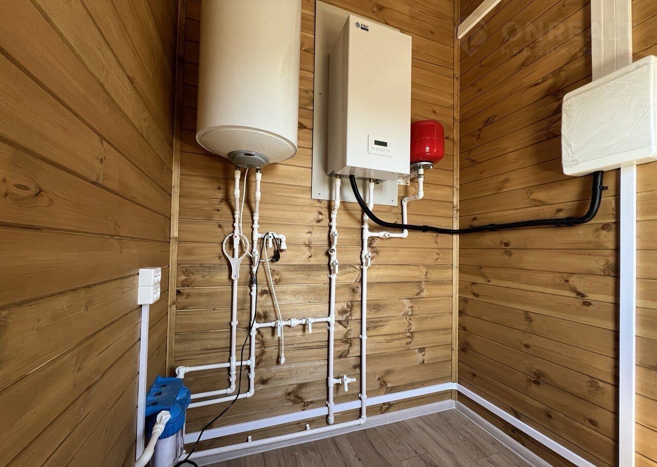 Электричество 15 кВт (Россети), разведено по точкам потребления, есть заземление (УЗО); Водоснабжение: центральное (водоканал); Отопление: электрокотёл, второй этаж радиаторы;