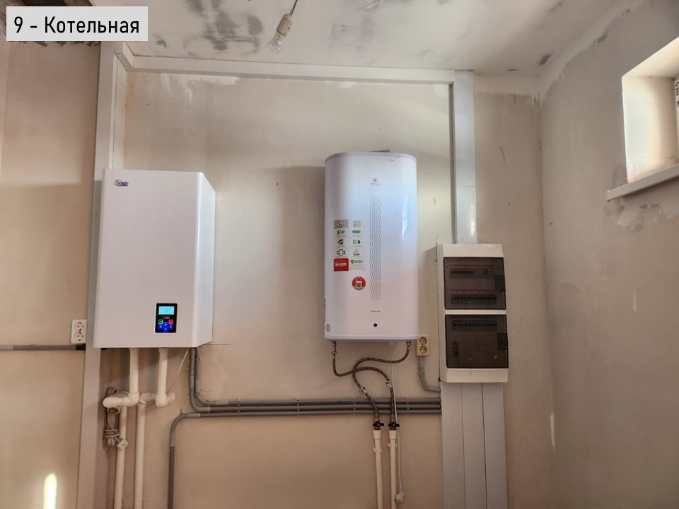В доме три спальни, кухня-гостиная, два санузла, прихожая, коридор, котельная.