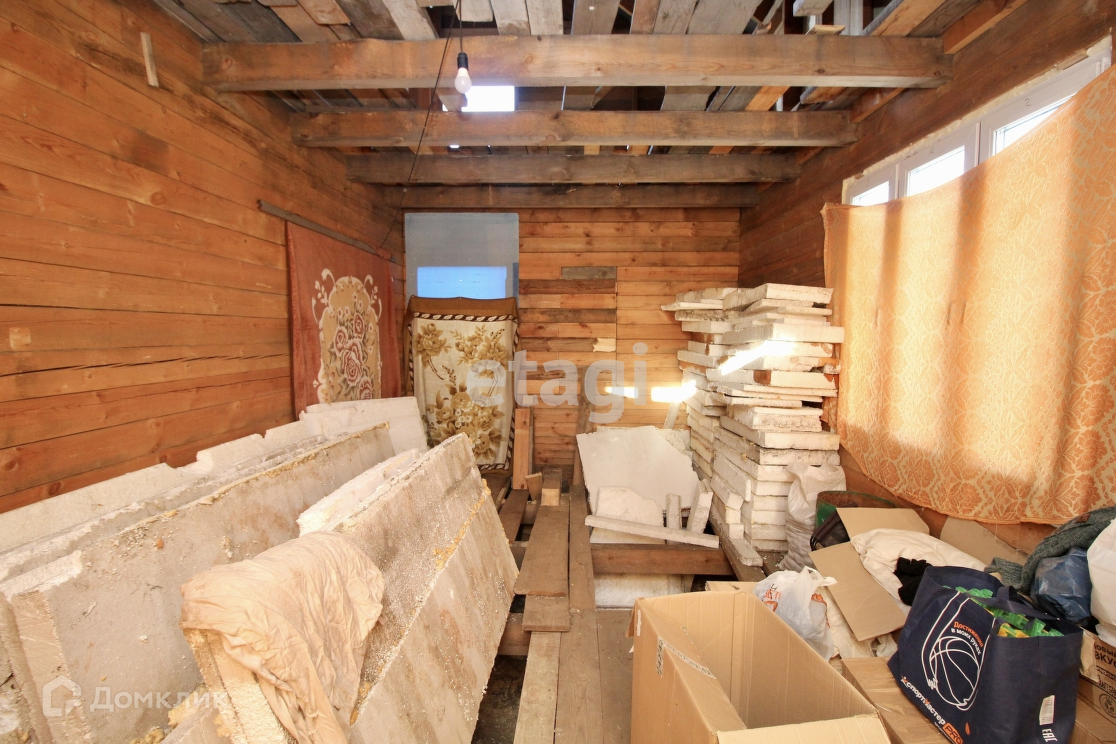 - одноэтажный дом 20 м2, деревянный, с хорошим утеплением, обшит сайдингом, окна пластик, веранда обшита вагонкой, кухня с гарнитуром. В комнате печка буржуйка, встроенный шкаф, диван.