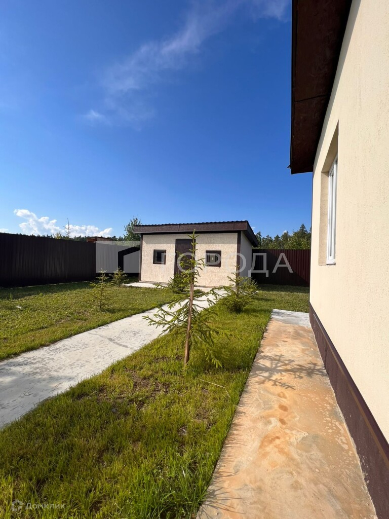 Территория выровнена, вокруг дома произведена отмостка, на территории имеется подсобное сооружение свободного назначения выполненное в стиле дома.