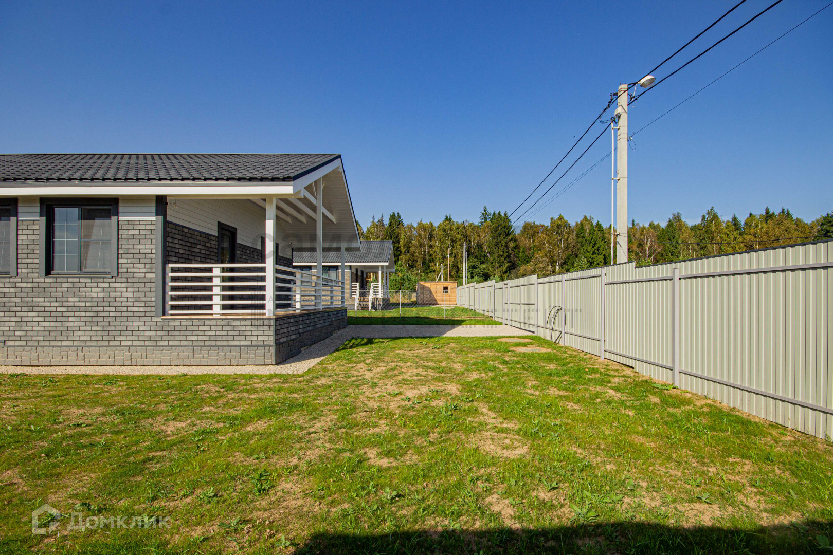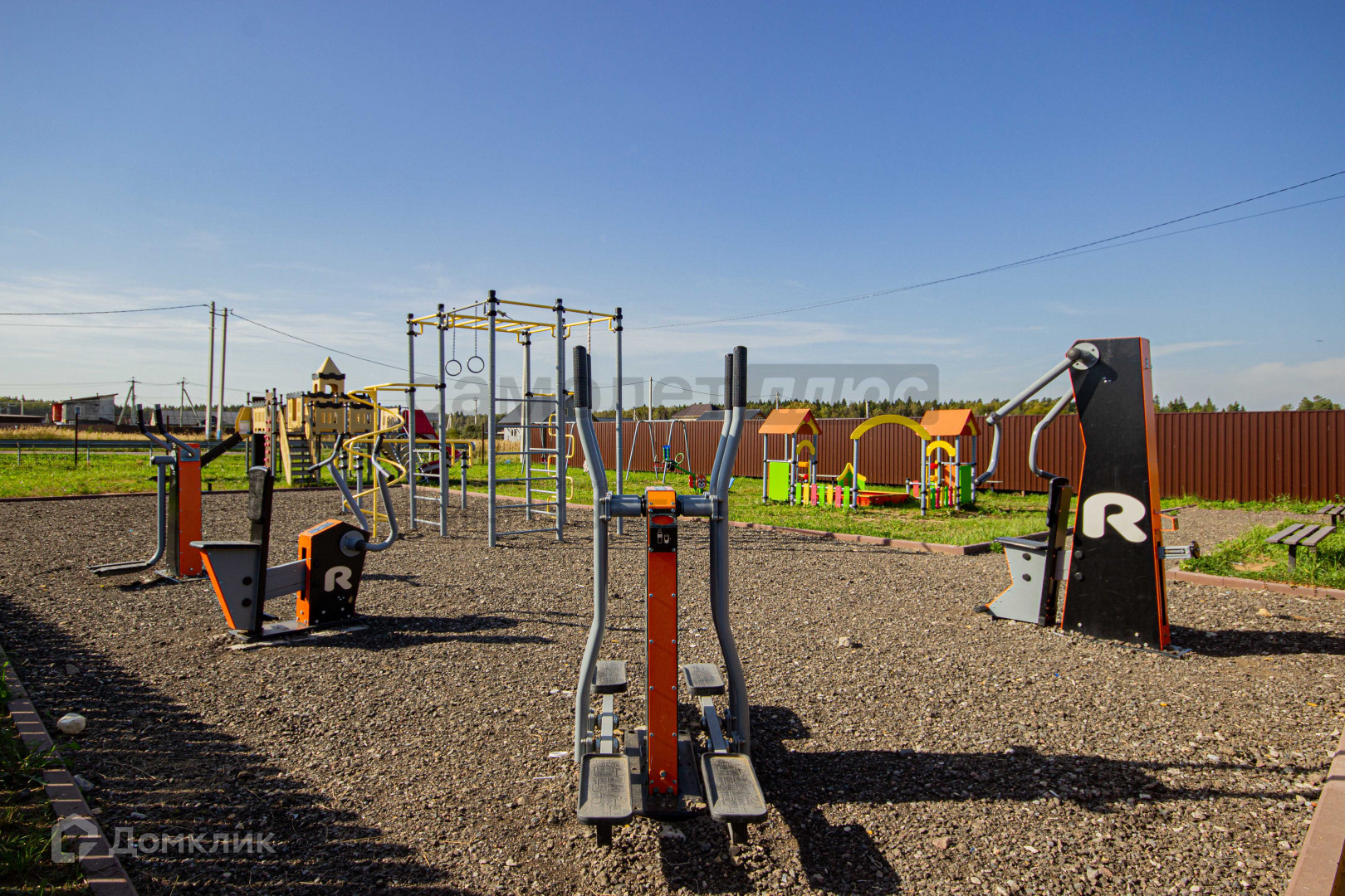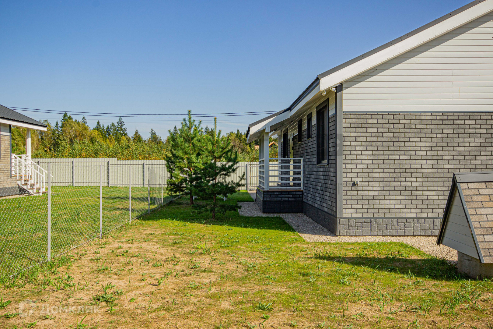 Огорожен: рабица+ металлическим штакетником;