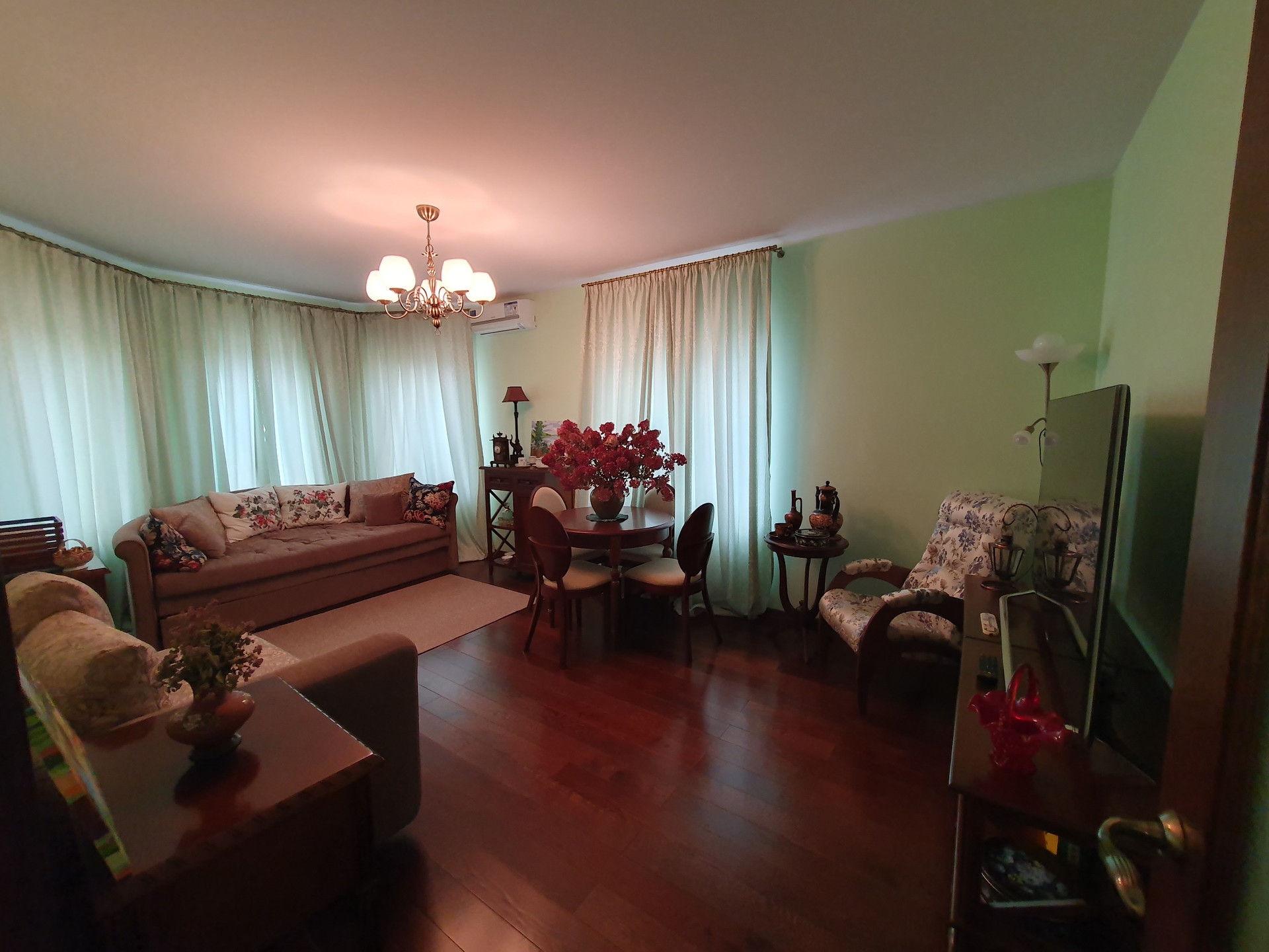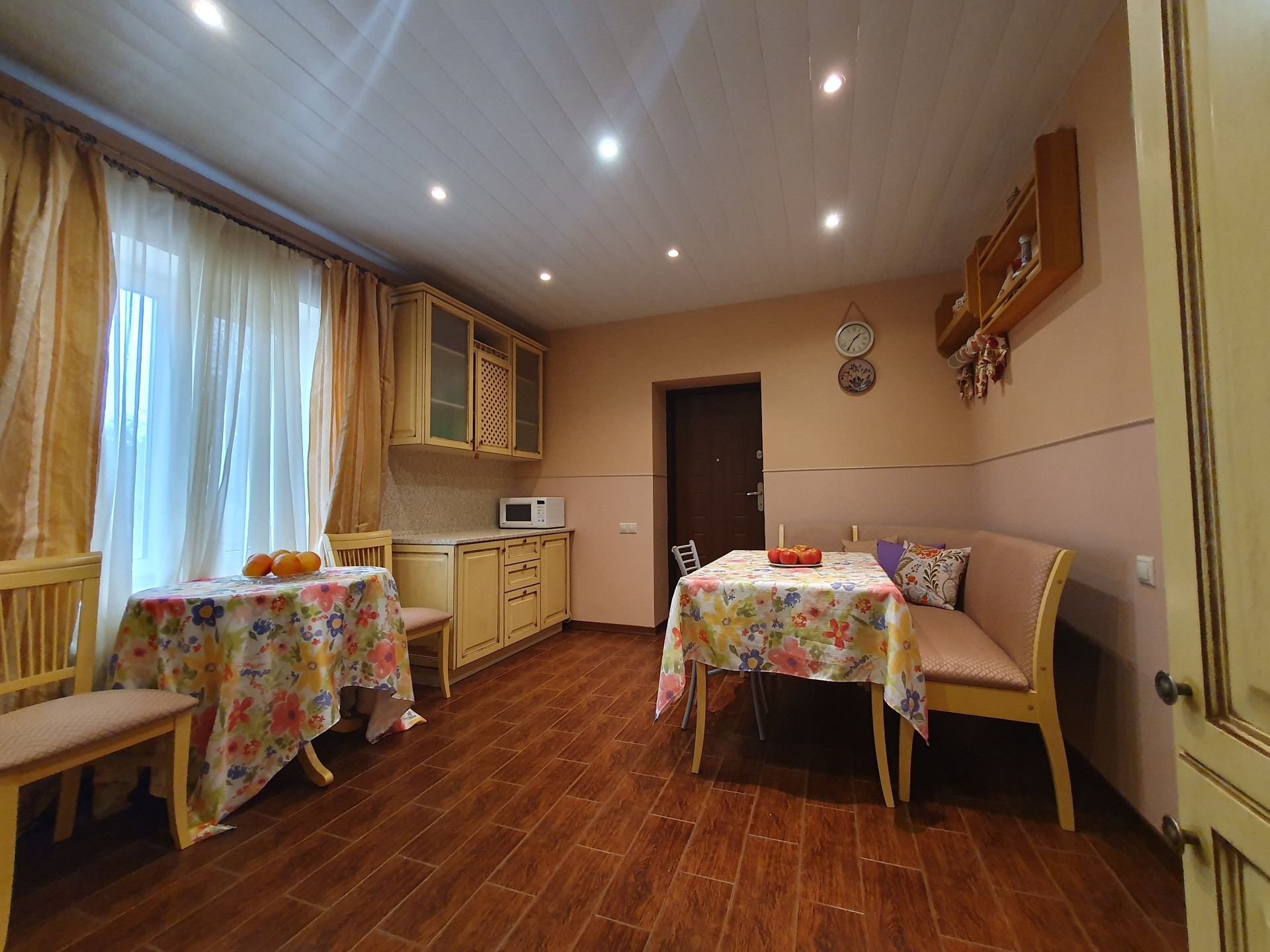 Качественные пластиковые окна с мраморными подоконниками (травертин). Весь ремонт делался для себя с применением очень качественных и экологически чистых материалов.