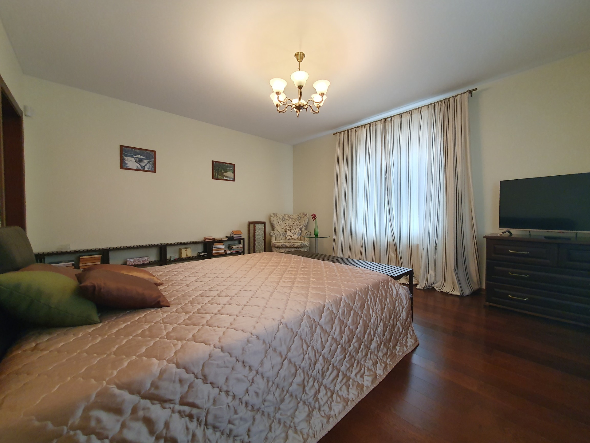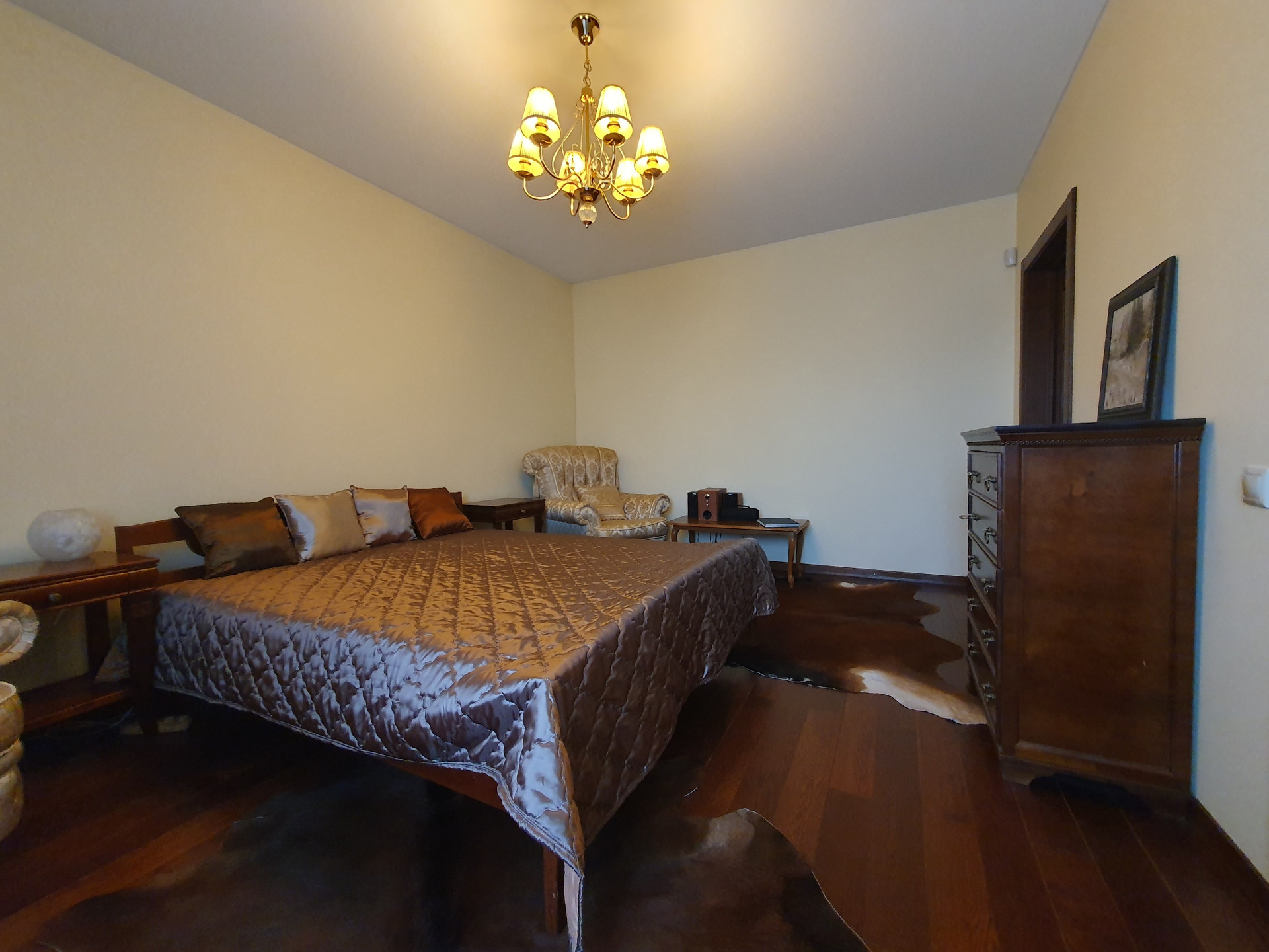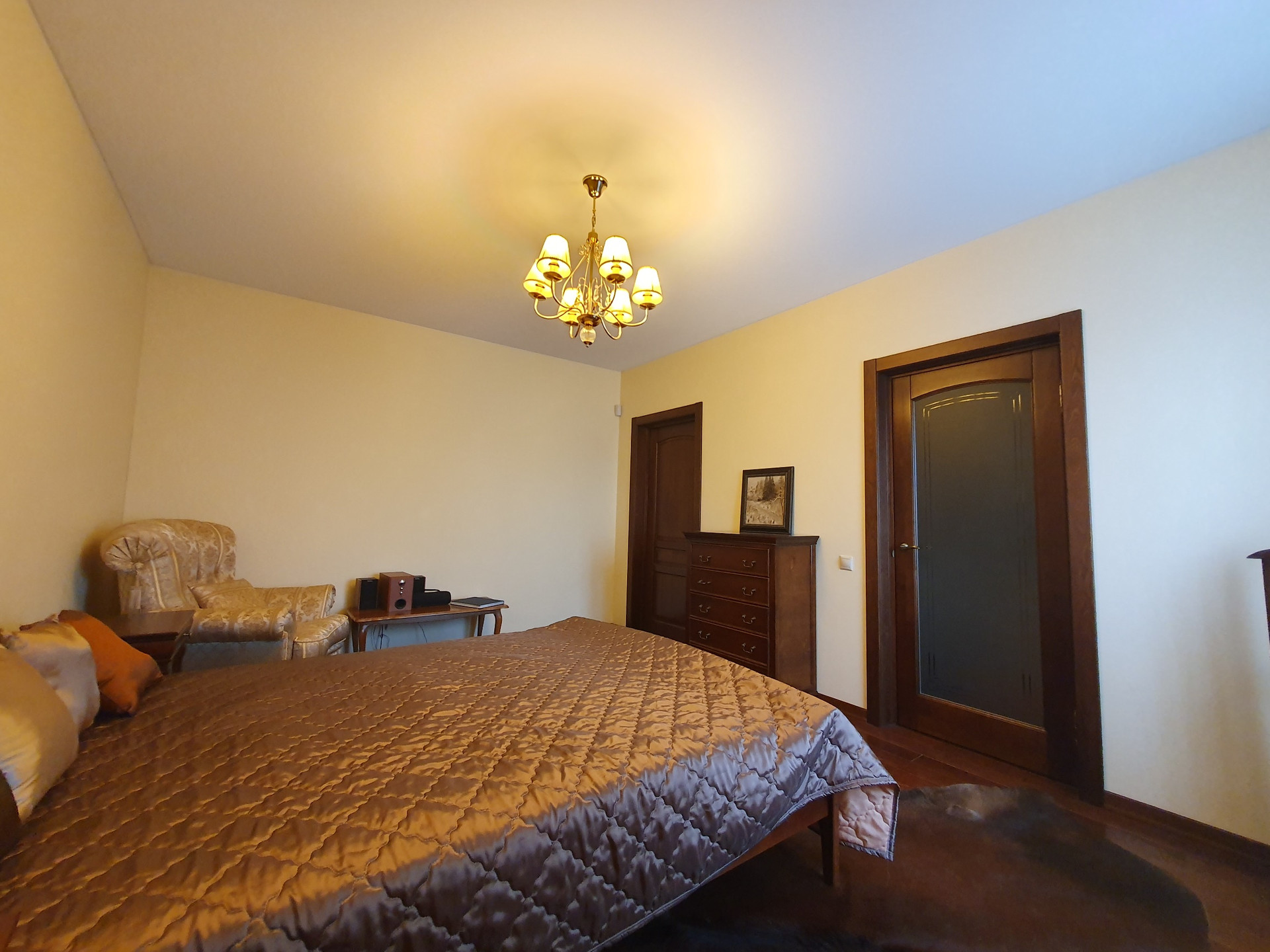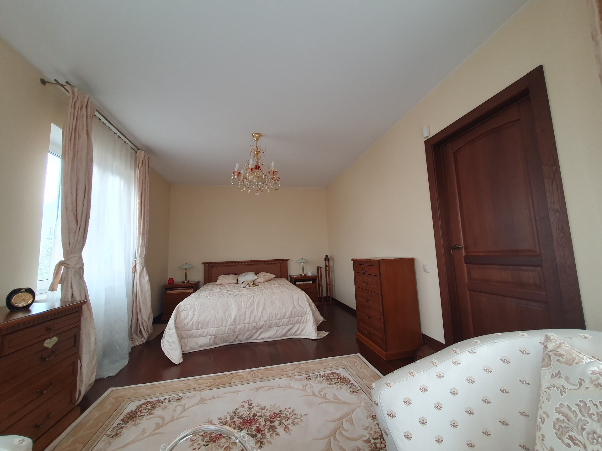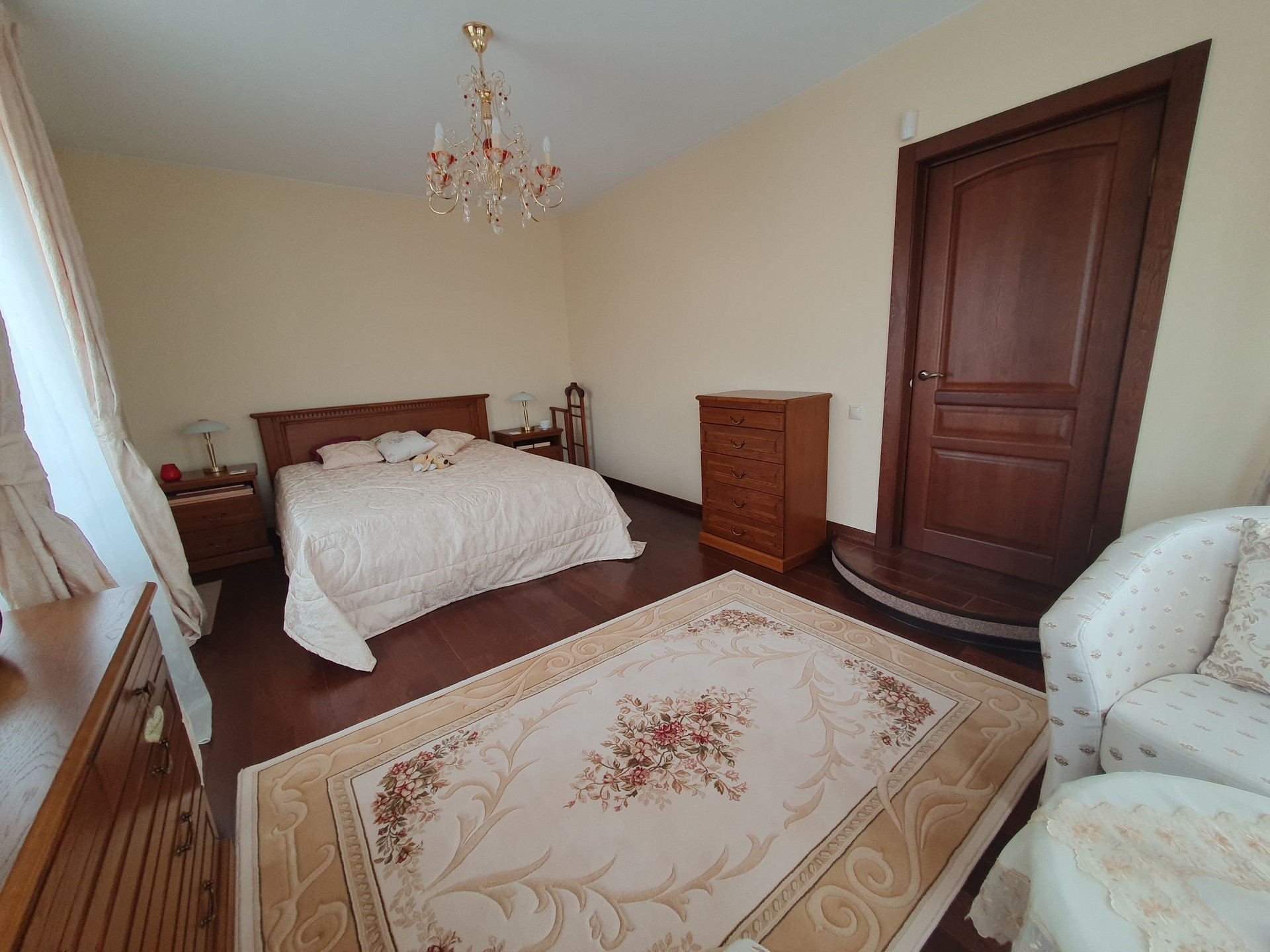 2й этаж: Четыре изолированные спальни, в двух из которых имеются гардеробные комнаты, с/у более 10 кв.м., пол – массив дуба. Во всех помещениях двери выполнены на заказ так же из дубового массива.