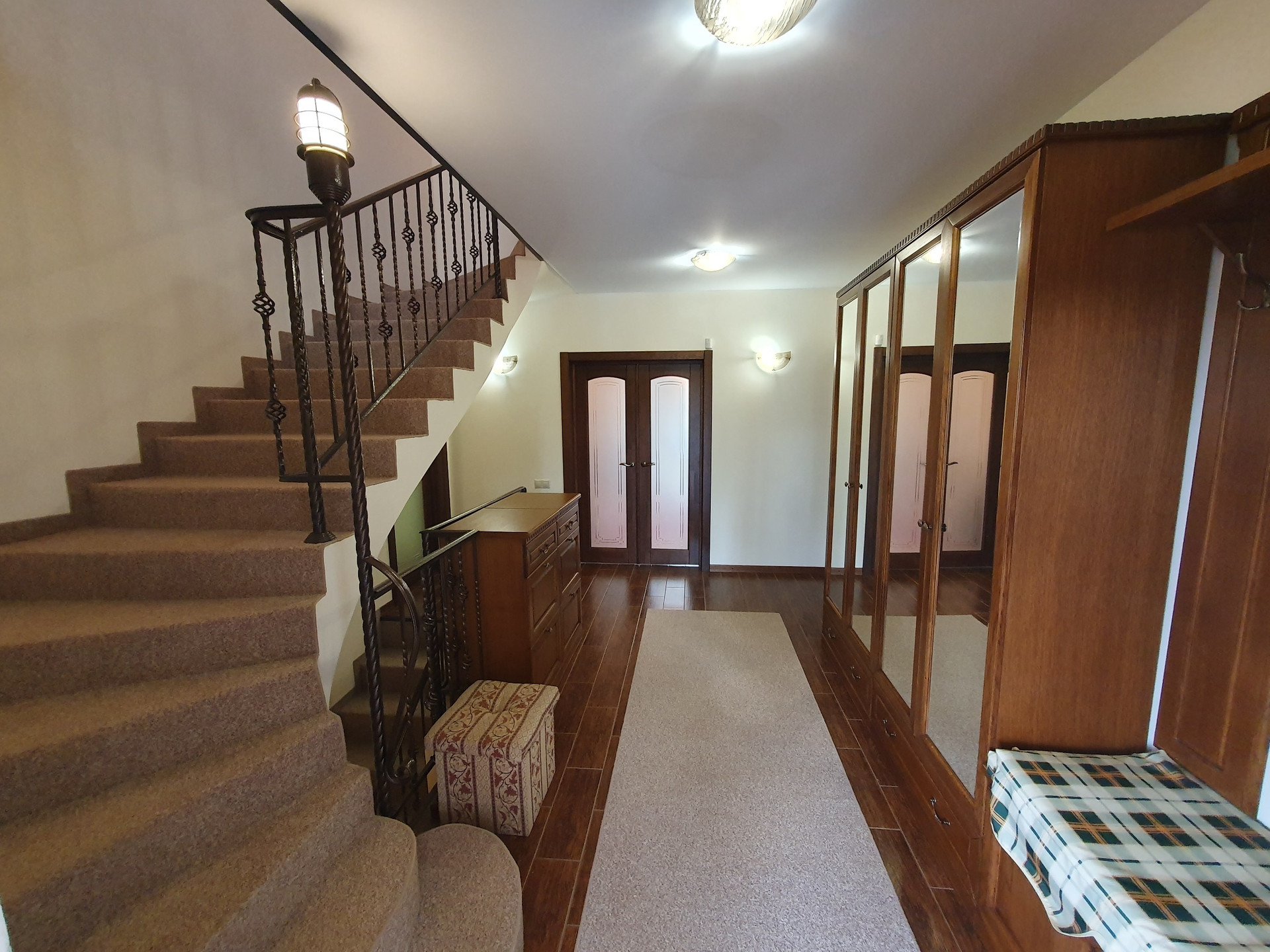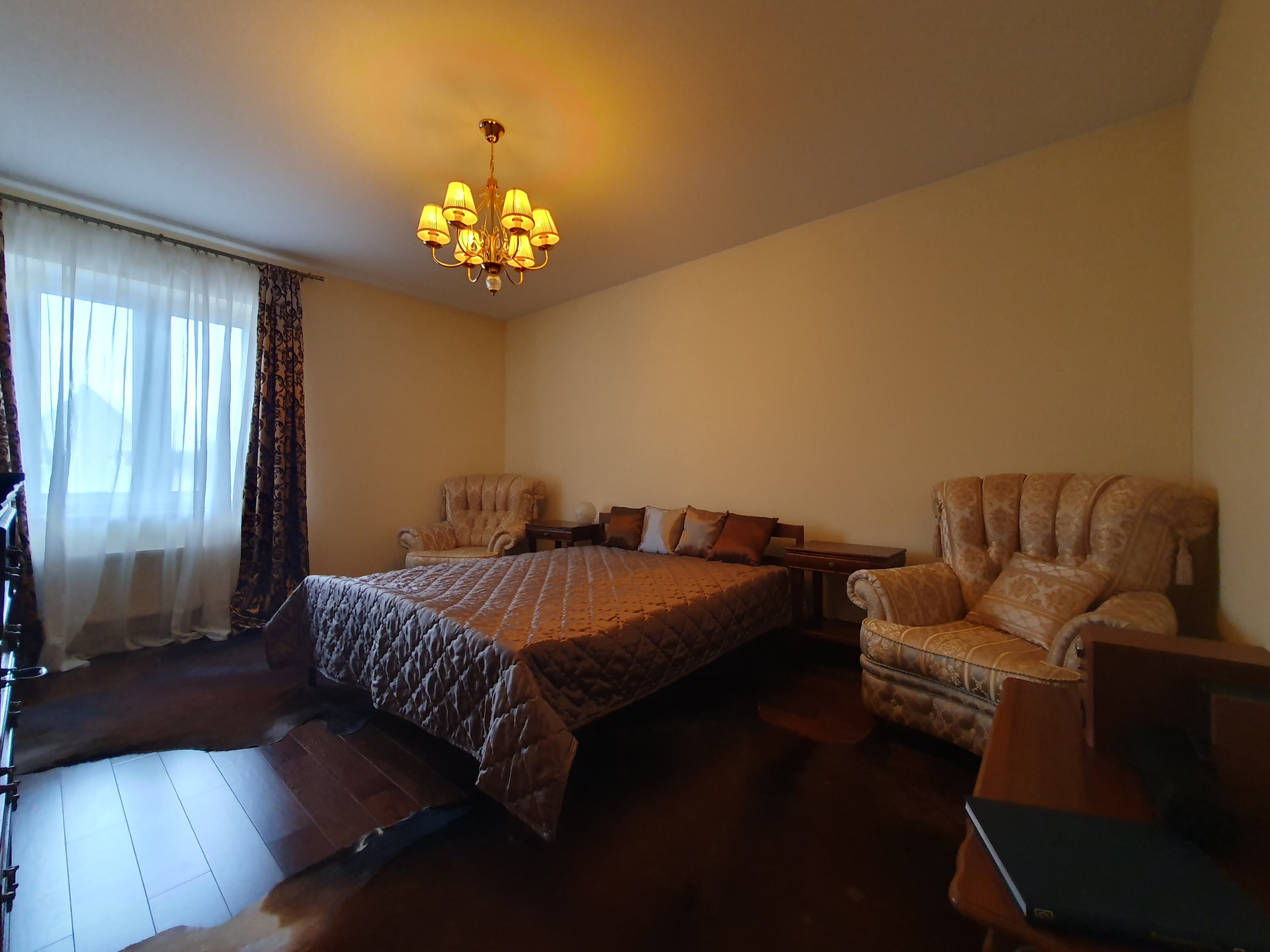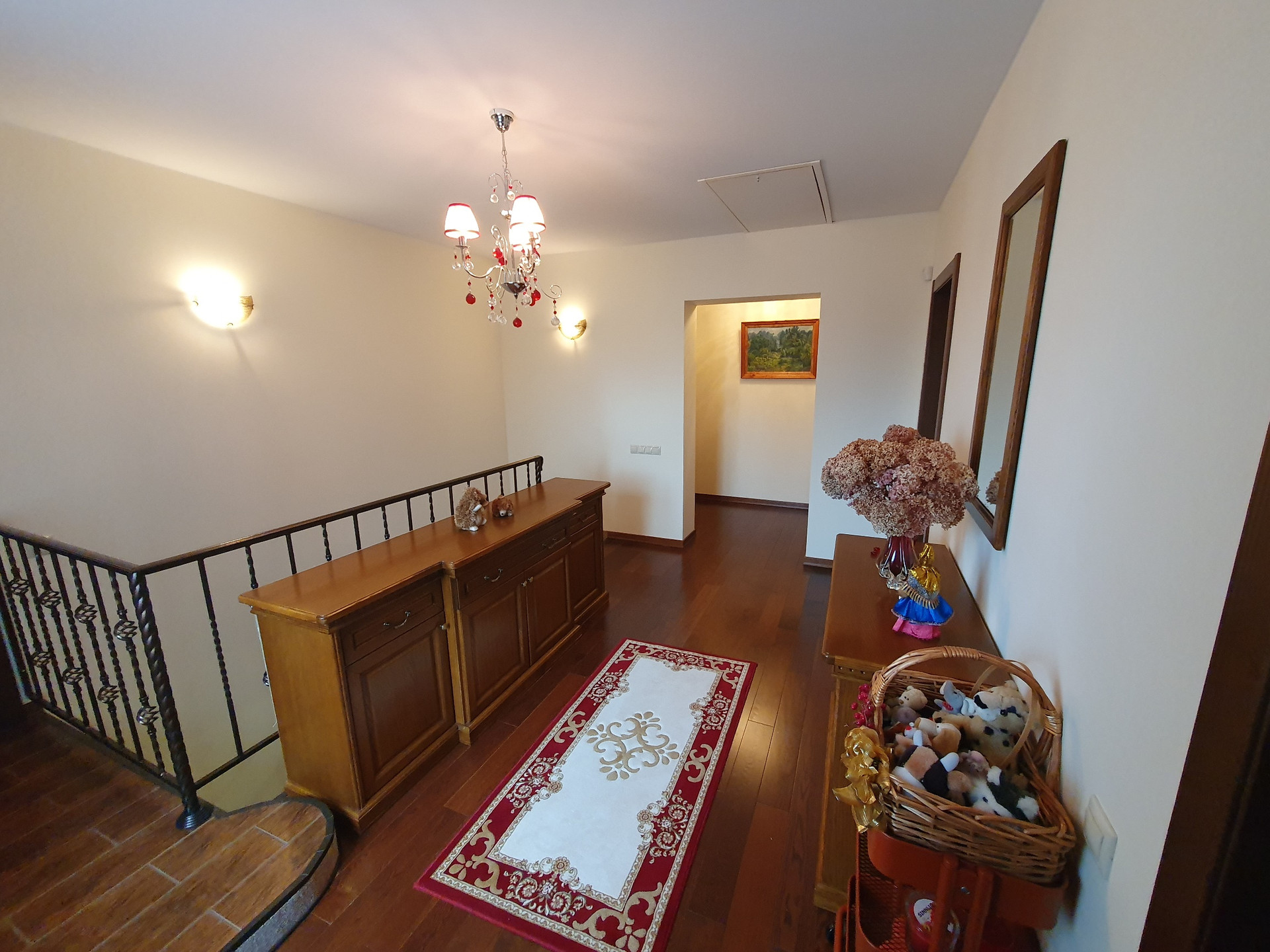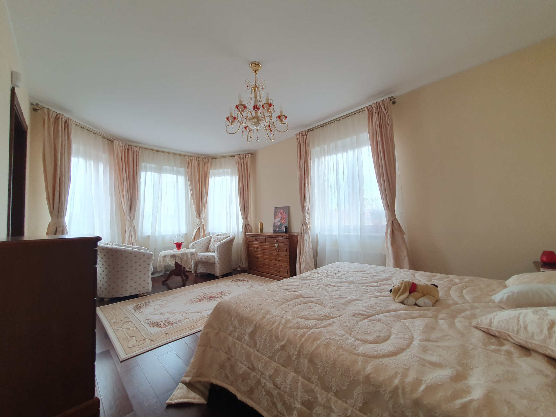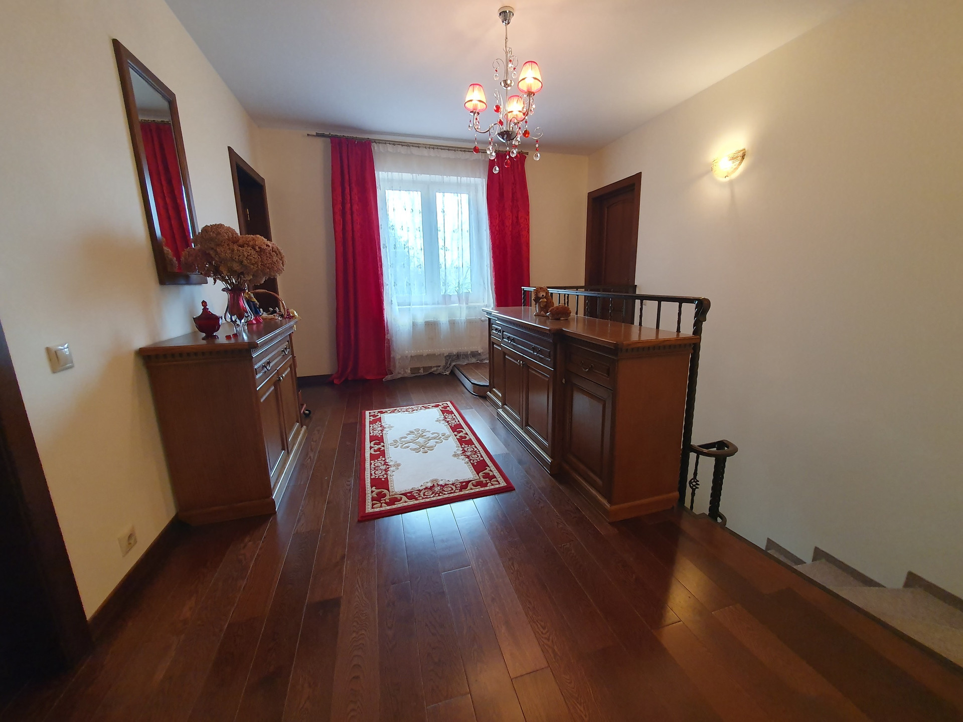 2й этаж: Четыре изолированные спальни, в двух из которых имеются гардеробные комнаты, с/у более 10 кв.м., пол – массив дуба. Во всех помещениях двери выполнены на заказ так же из дубового массива.