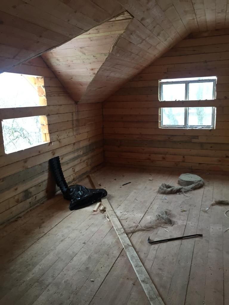 Дом из бруса, снаружи утеплен минеральной ватой и обшит лиственницей.