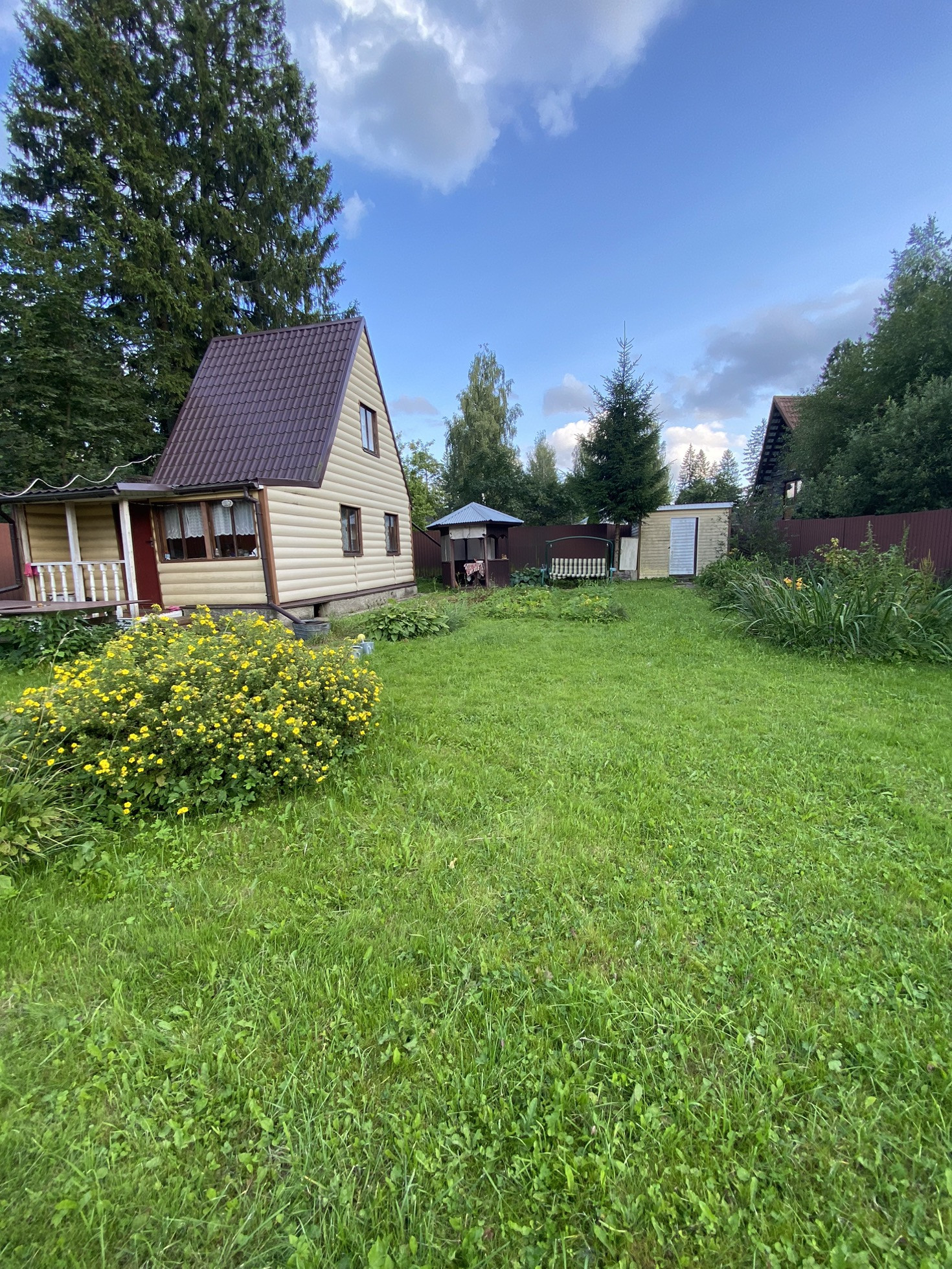 расположенный на земельном участке площадью 7,57 соток в СНТ Геофизик, дом 85-а, поселок Поваровка. Очень удобное местонахождение - до железнодорожной станции Поваровка 12 мин пешком (10 мин до Зеленограда-Крюково, 1 час до Ленинградского вокзала на МЦД). Дом брусовой двухэтажный с верандой, крыша - металлочерепица. Стены снаружи дома обшиты сайдингом, внутри дома обшиты вагонкой. На первом этаже: остекленная веранда, две изолированные комнаты, лестница и печка-буржуйка. На втором этаже одна большая комната. Дом стоит на ленточном фундаменте, по периметру участок огорожен забором из профессий. листа с воротами и калиткой. На участке расположен хозблок, уличный туалет, баня 4,8х3,2 (110 градусов) для расслабления и оздоровления, теннисный стол для активного времяпровождения, качели, беседка, скважина, парковочное место, дровница. При желании можно подключить газ, который идет по границе участка.