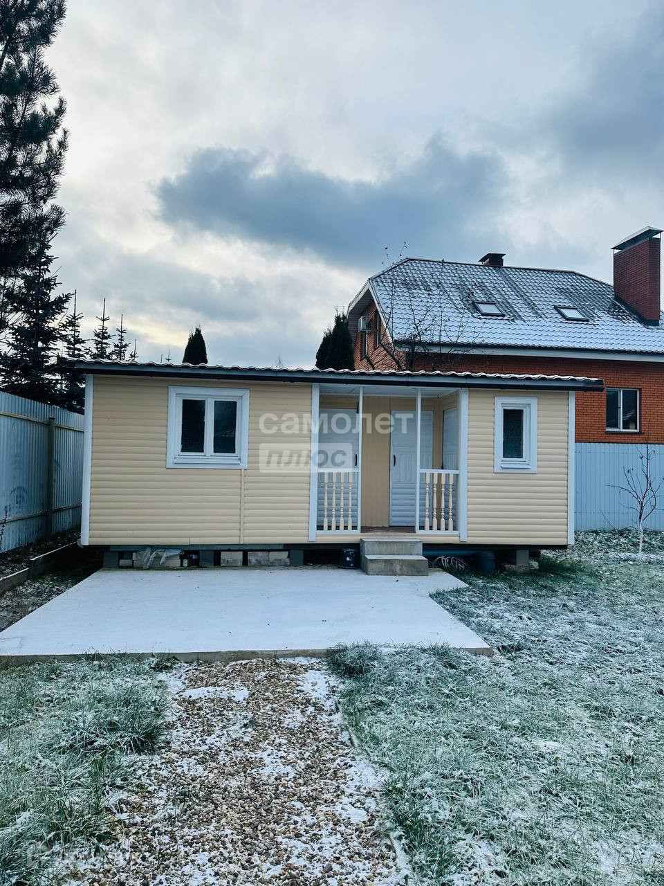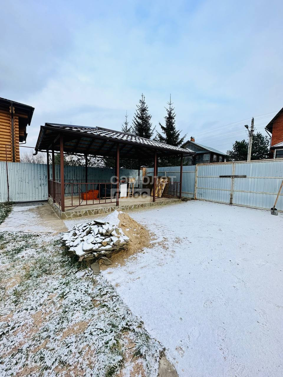 • на участке расположены сарай, беседка (металл и камень), плодовые деревья.