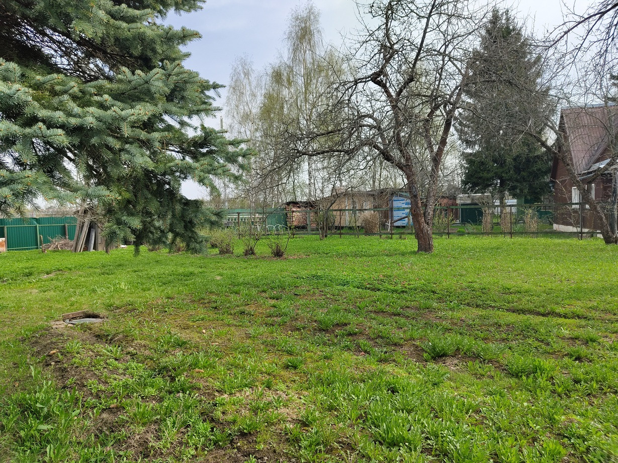 Характеристики участка: Участок большой и солнечный! 9 соток. Форма почти квадратная. Участок грамотно спланирован и ухожен. Три яблони, несколько молодых слив, много цветов и плодовых кустов. Хороший газон.