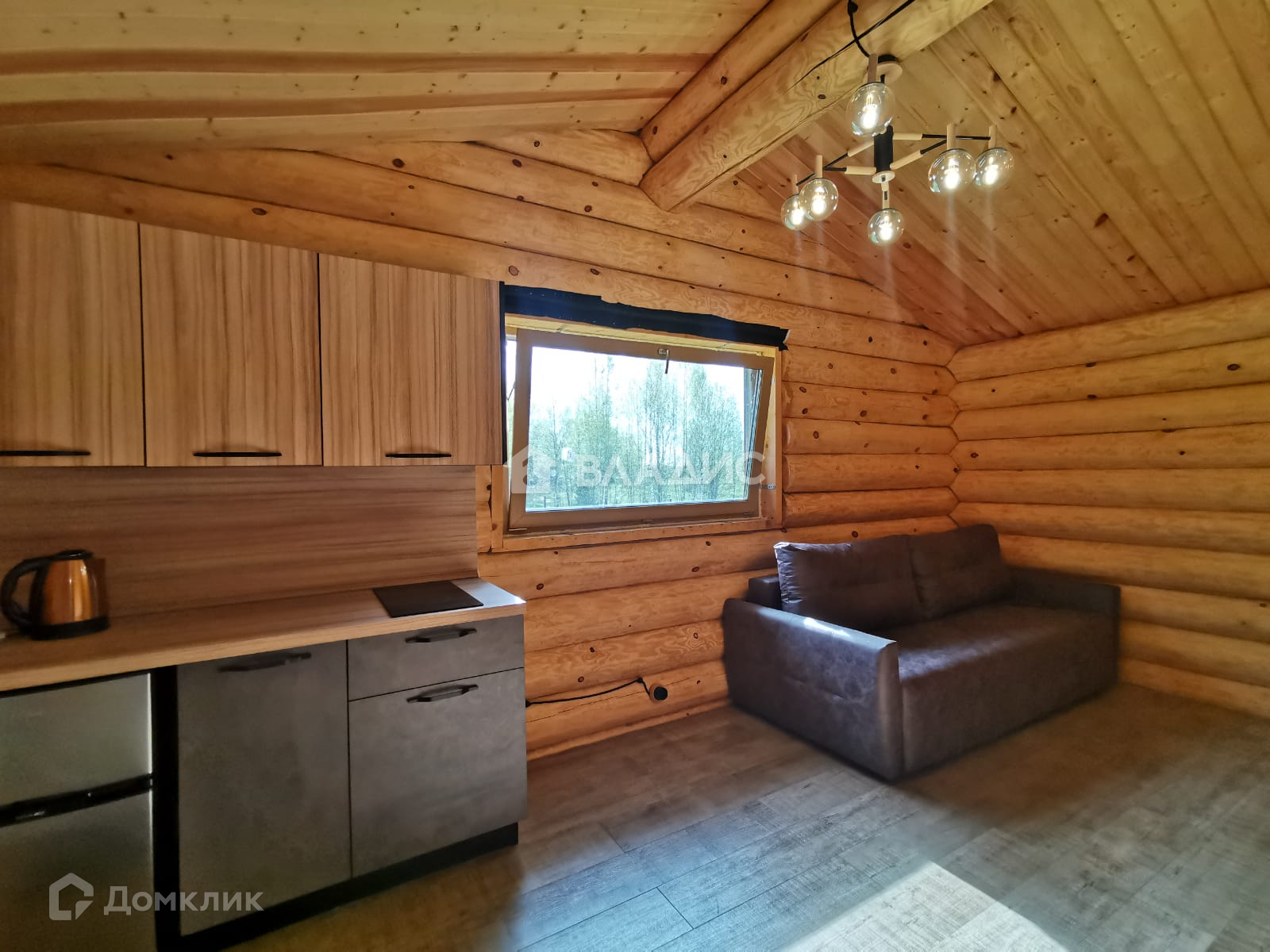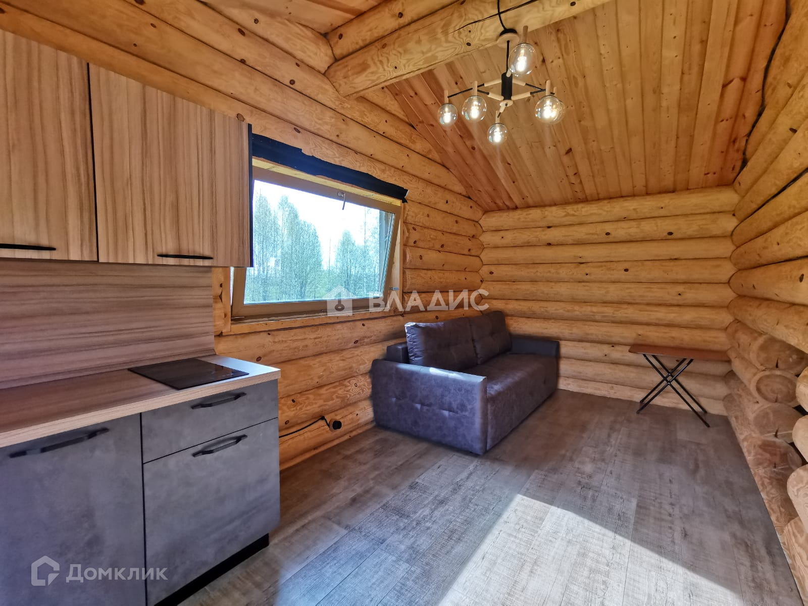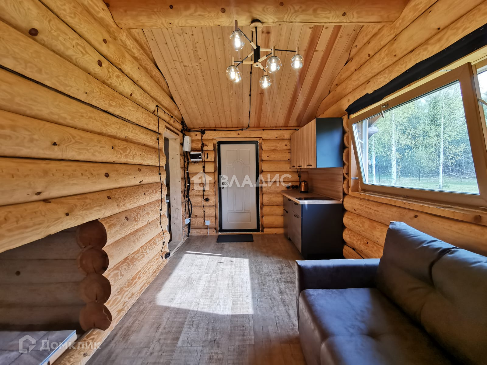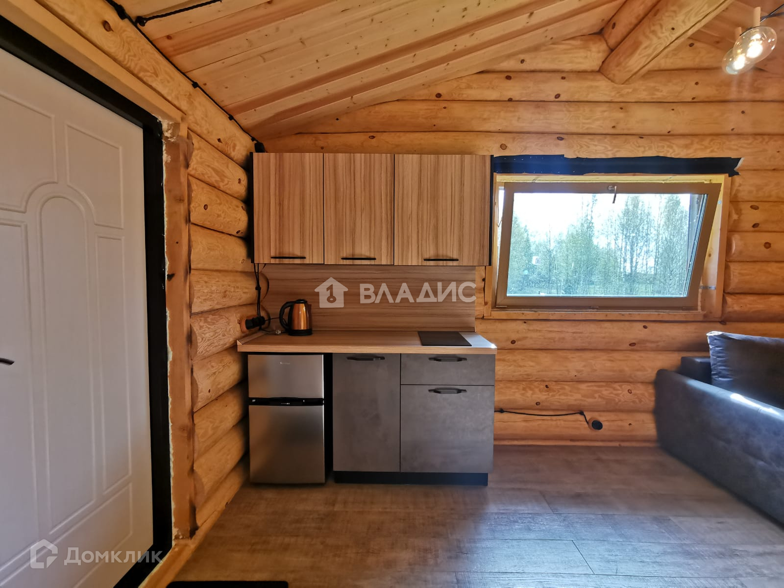 В гостиной стоит большой новый диван и стильная кухня с индукционной плитой (производство и установка "Стильные Кухни) + компактный холодильник с морозильной камерой. Дом в процедуре стадии узаконивания.