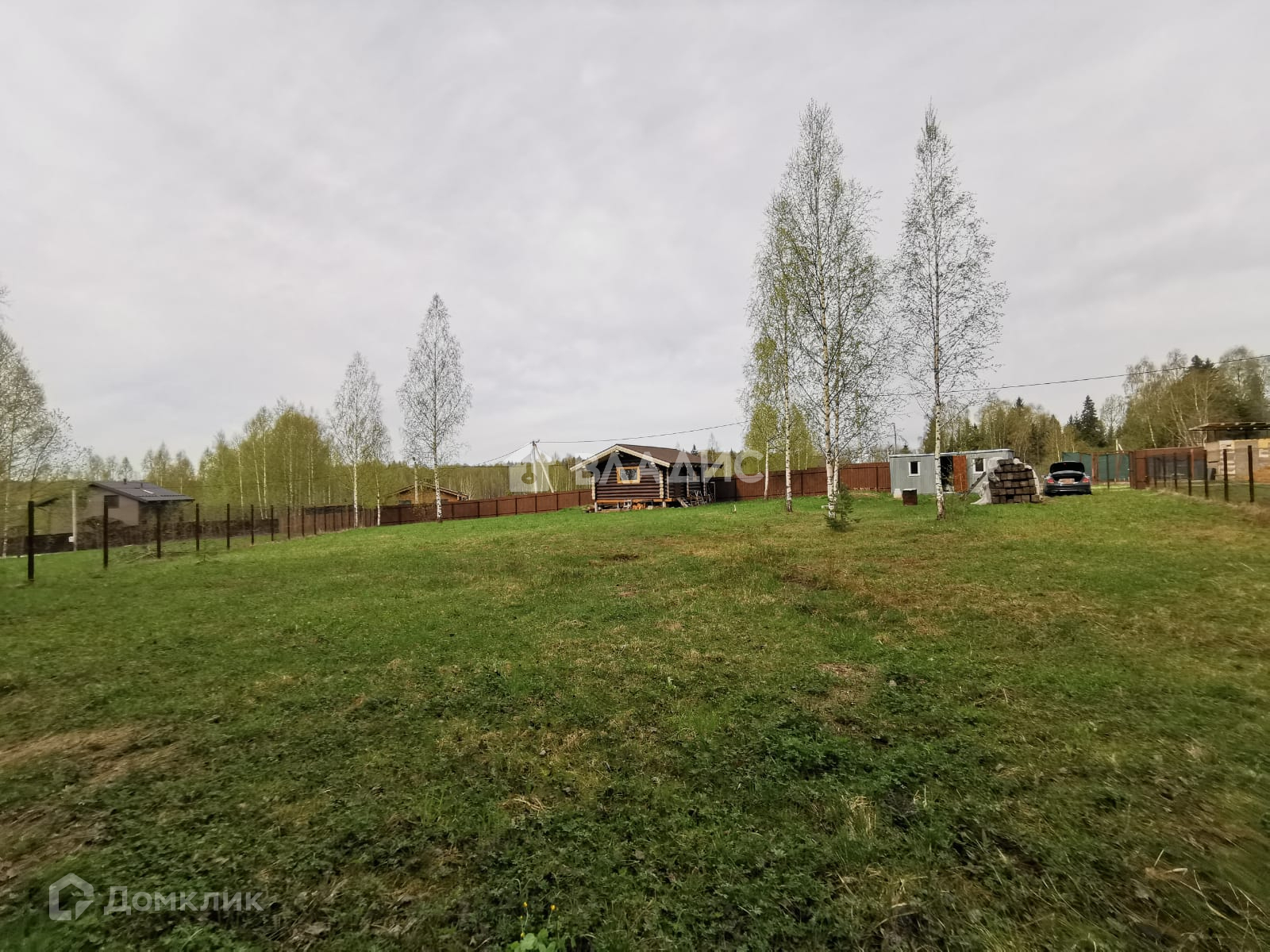 Участок обнесен качественным забором, со стороны дороги металлический профиль под дерево, на границе с соседями 3Д забор под последующую высадку живой изгороди. На участке растут березы, елка, кедр, дикая земляника. Охраняемая территория, пункт КПП, дороги зимой чистят.
