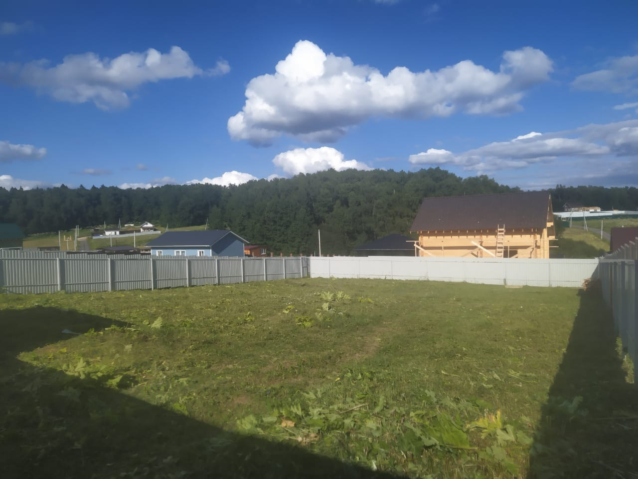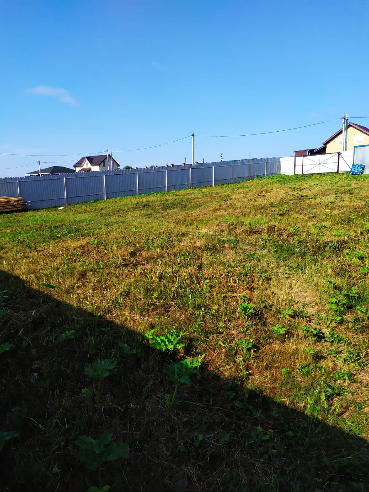 Участок огорожен со всех сторон забором с откатными воротами. Сухой, без построек.