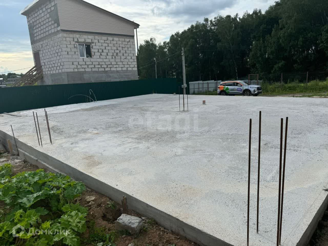 Залит фундамент ленточный, и плиточный. размером 13х10.