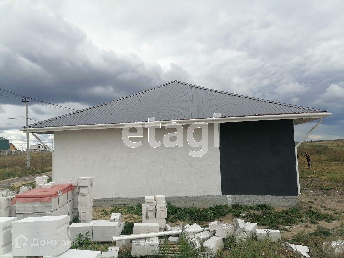Высота потолков 3.1 м, фундамент УШП, стены силикатные блоки + утеплитель + штукатурка, крыша металлочерепица, окна пластиковые, септик 7 куб.м., скважина 33 м, газ проходит по улице. Внутренняя отделка предчистовая (штукатурка на стене), теплый водяной пол, электрокотел, стяжка, электрика, стены выровнены под маяк.