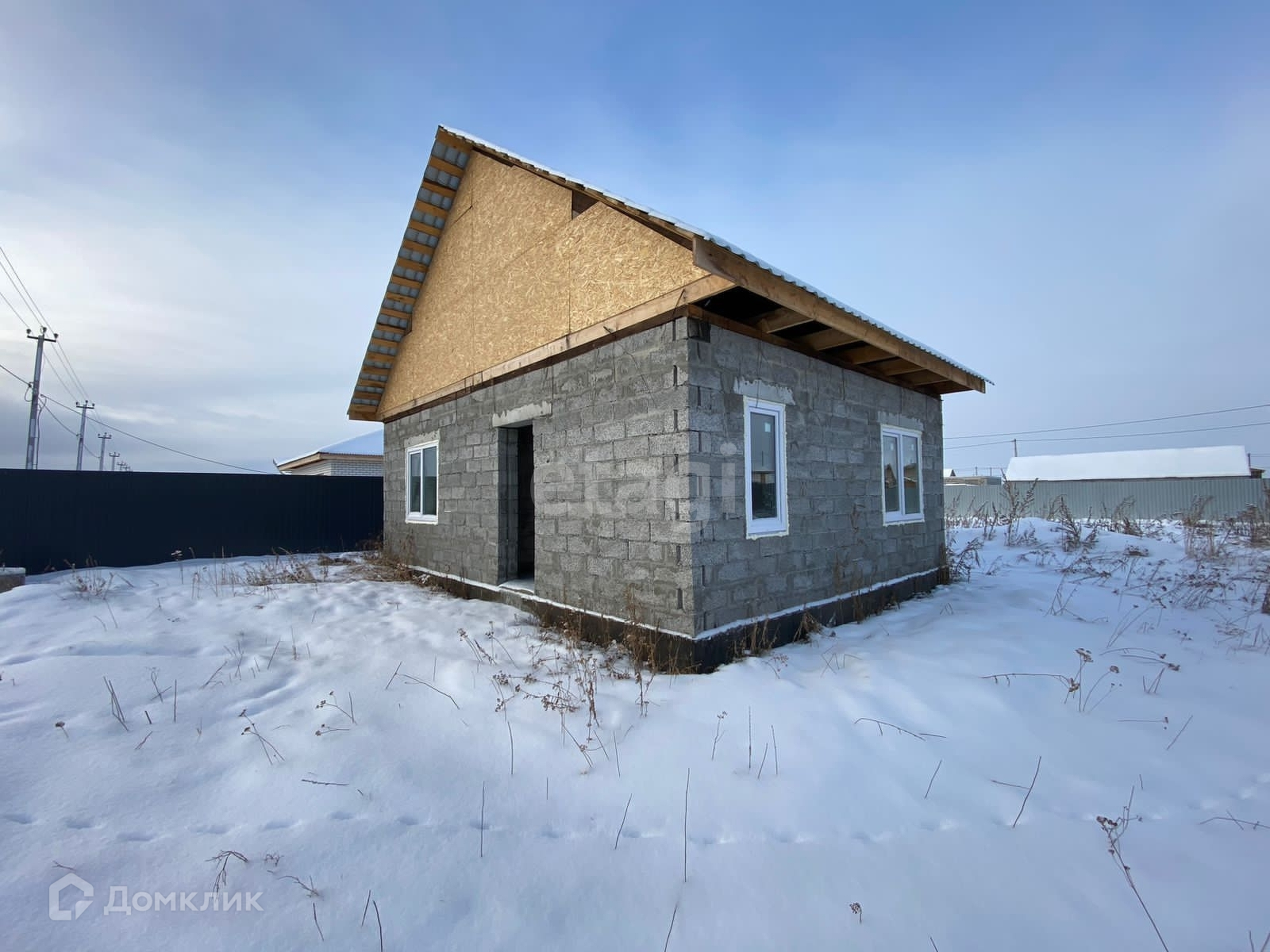 Дом из керамзитоблоков. С террасой и мансардой. Дом 6 на 8. .Ленточный фундамент. Забор на три стороны. Кухня-гостиная 25м.кв, спальня 12м.кв. Поставлены хорошие пластиковые окна. В гостиной одно окно (в кухонной зоне )+ противоположенная сторона окно в пол (панорамное) с выходом на террасу. Крыша по цвету графит.Проведена канализация, септик. Электричество заведено и подключено. Скважина в доме. Стены керамзитоблок. Земля плодородная. Самое высокое место среди всех местных участков. Грунтовые воды расположены на глубине 9 м. Расстояние 13 км от Автограда. В поселке все есть-продуктовые и строительные магазины, рядом, через дорогу школа, детсад, Сбер. Поселок заселен. Много соседей живут круглогодично.