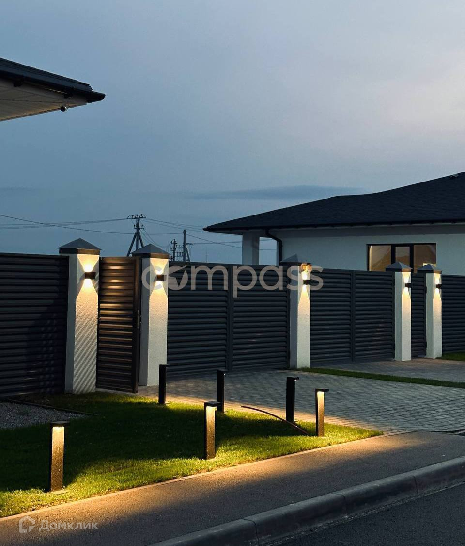 Вентиляция-естественная, карнизы-ПВХ панели, водосточная система, отделка стен-декоративная штукатурка, дверь-металлическая с терморазрывом, фундамент-монолитная бетонная плита (+пенополистерол 50 мм), окна-двухкамерный стеклопакет, профиль-графит, металлические отливы, материал кровли - Ондулин, материал стен - керамзитоблок 300мм, отмостка - утепленная, на «подушке» верхний слой -щебень, архитектурный свет.