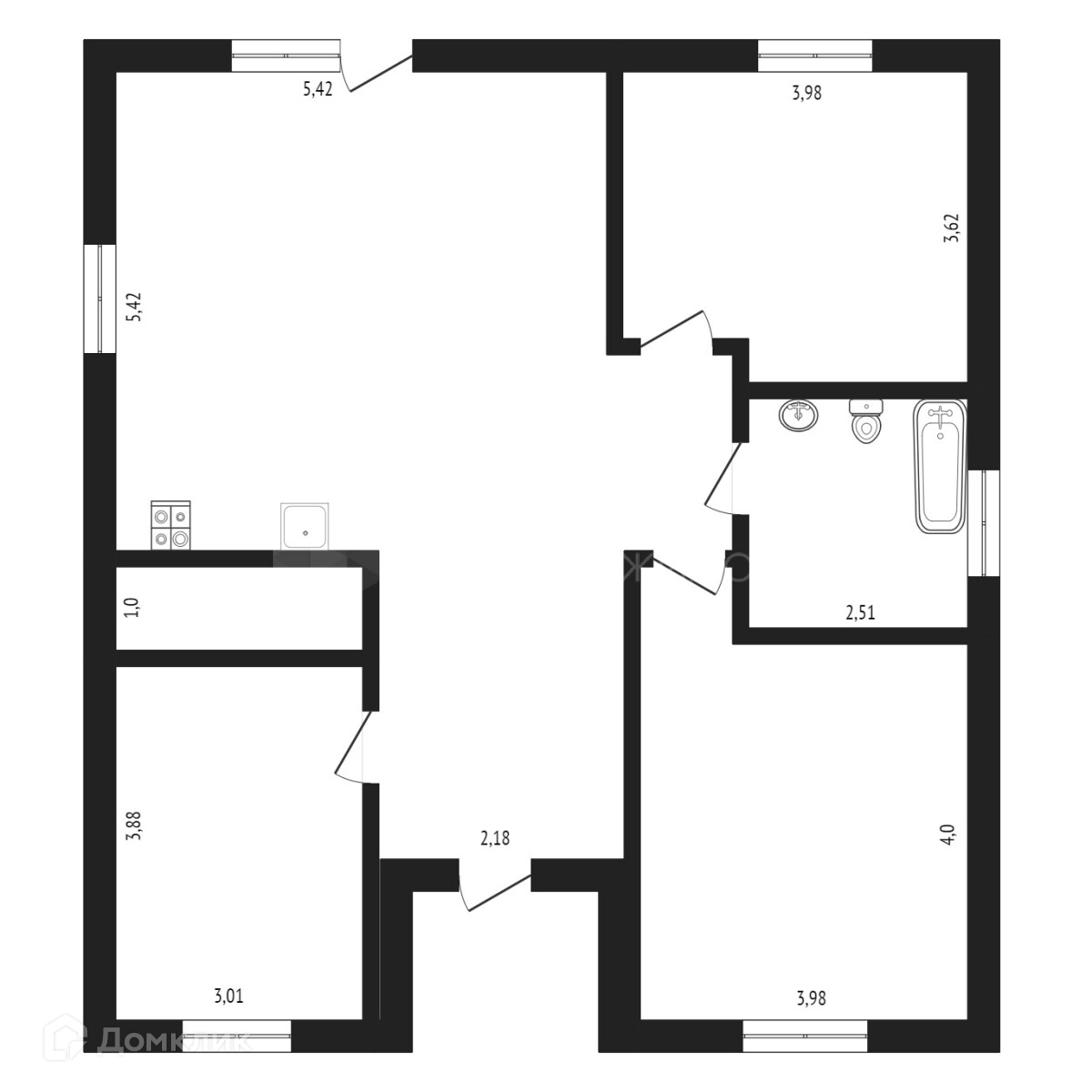 Балкон, лоджия 1 балкон
