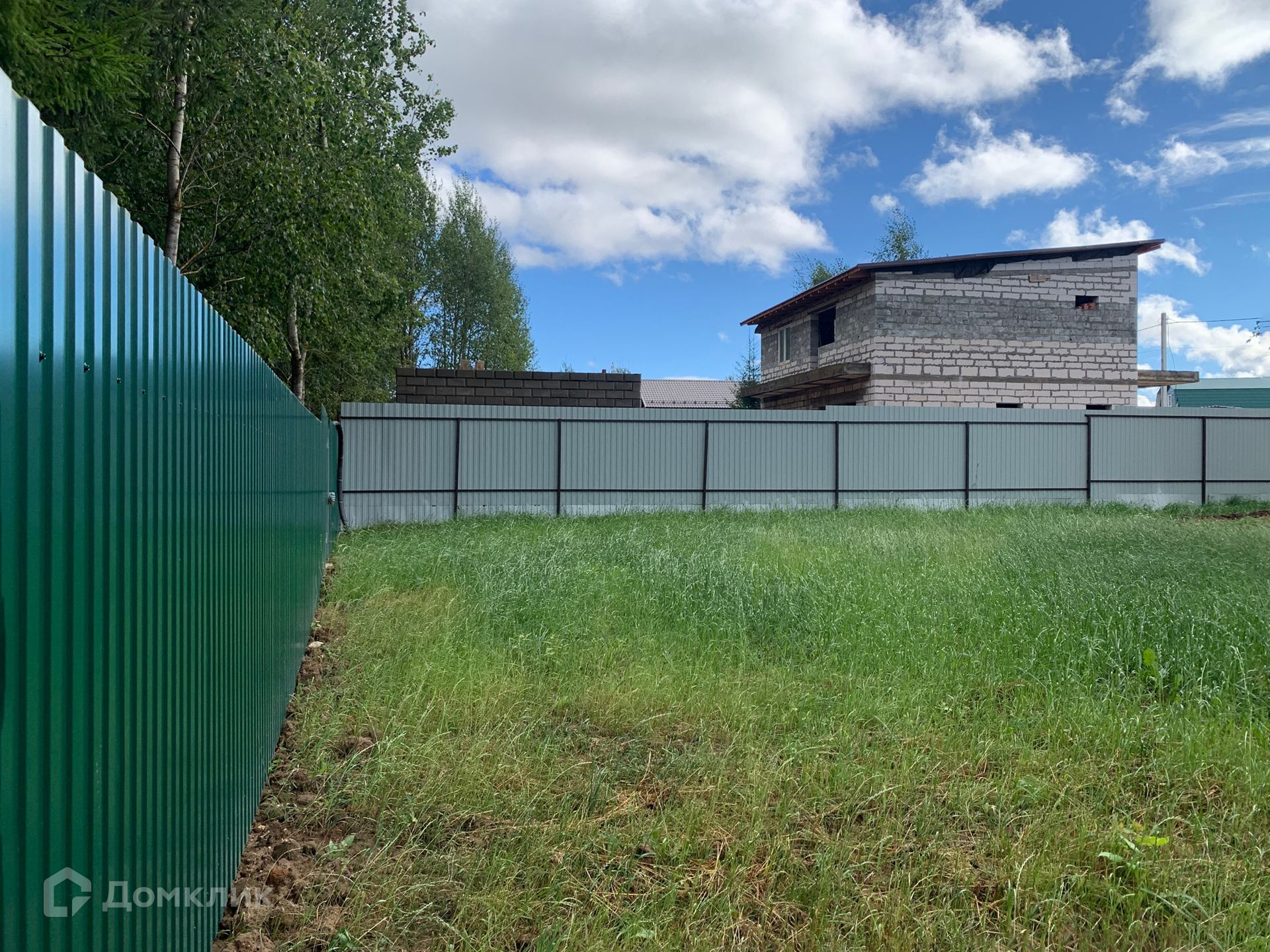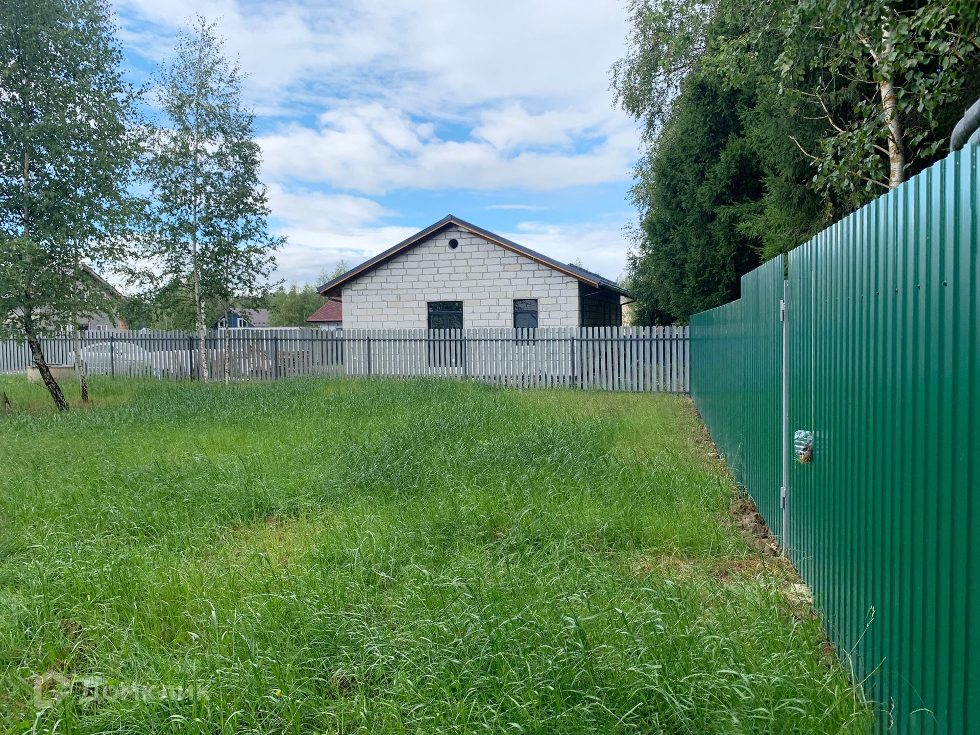 Участок площадью 6,6 соток правильной прямоугольной формы, выровнен. Посеян газон.