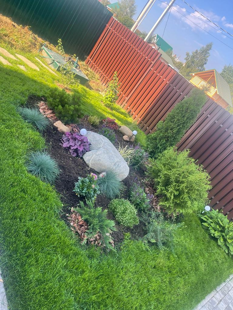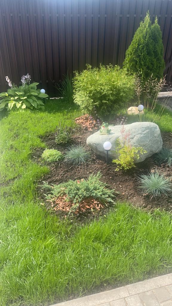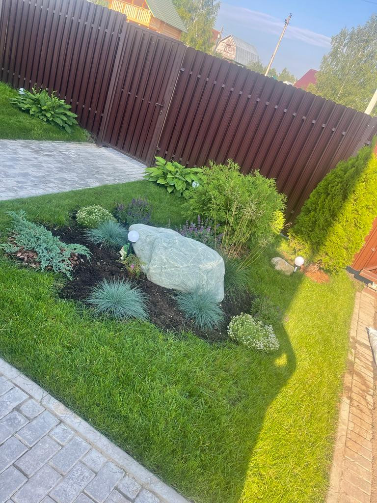 Участок очень ухоженный с ландшафтным дизайном, подсветками, по периметру участка дренажная система