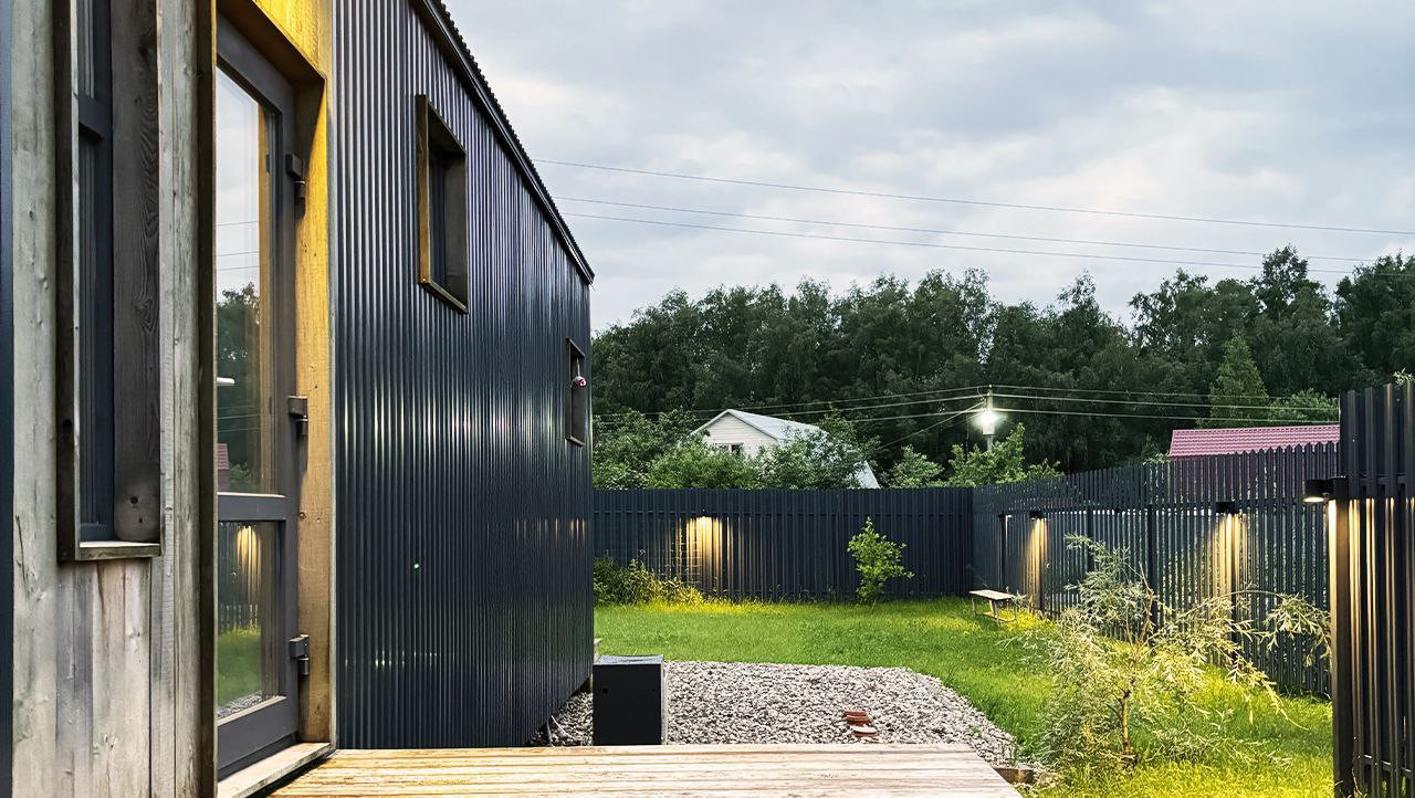 Отличная наружная инфраструктура: Качественный забор с автоматической ночной подсветкой по всему периметру.