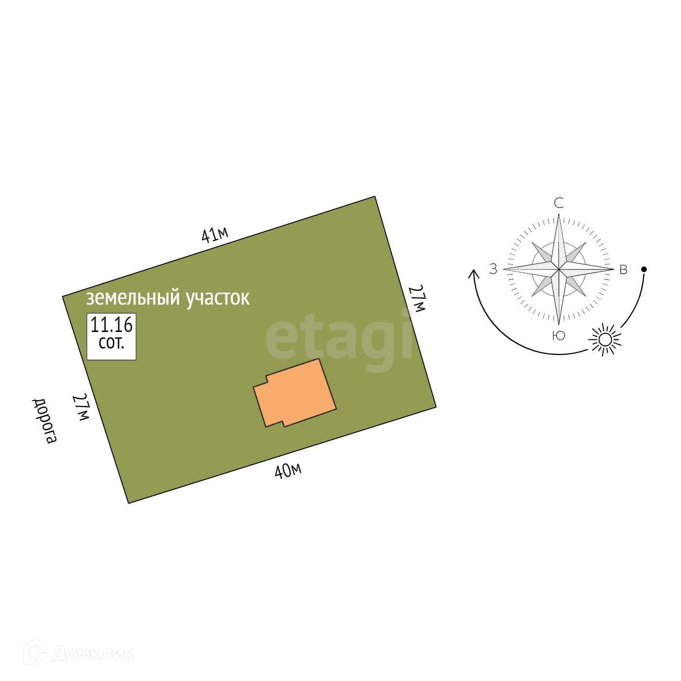 Площадь участка 11 сот.