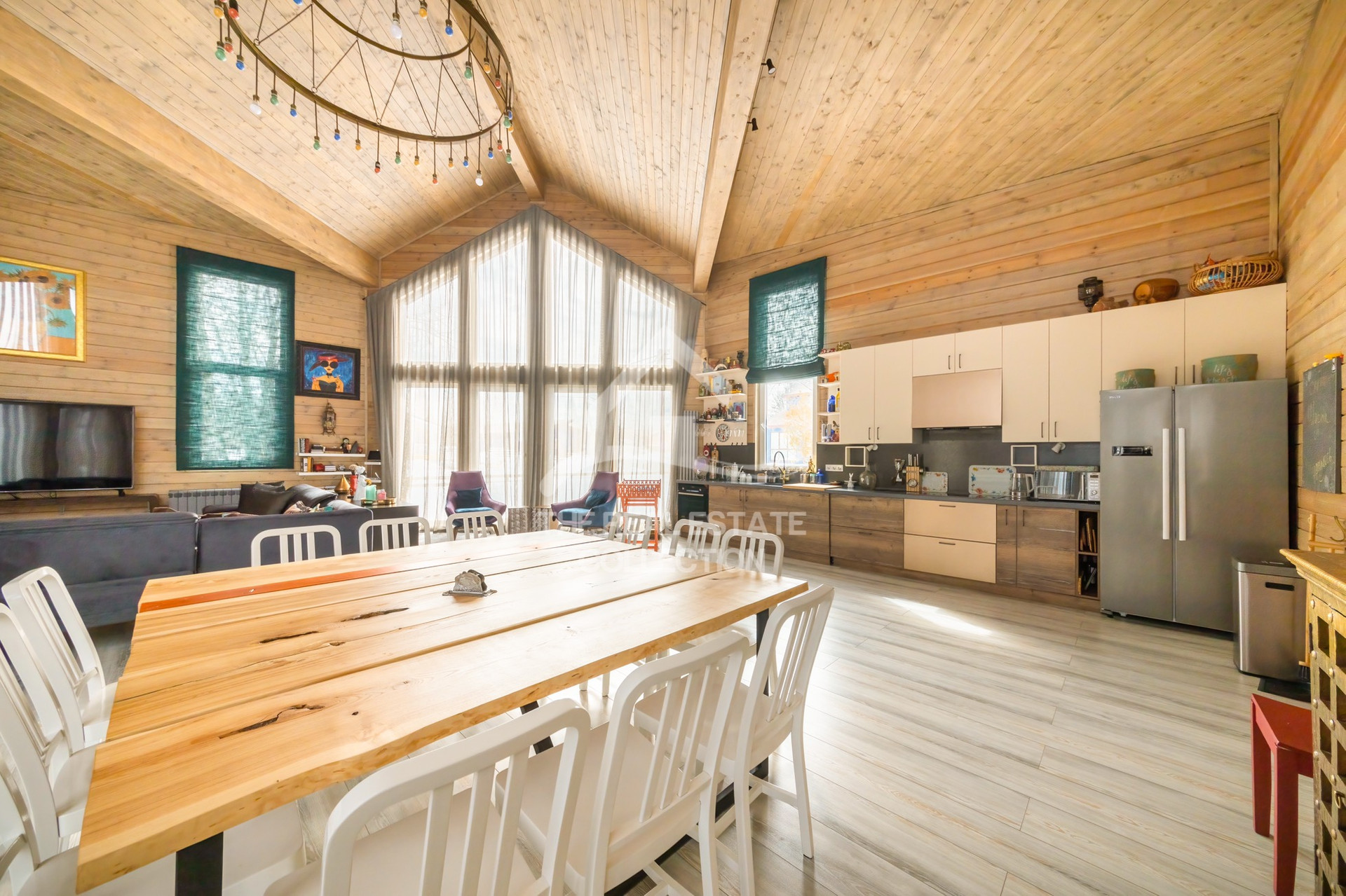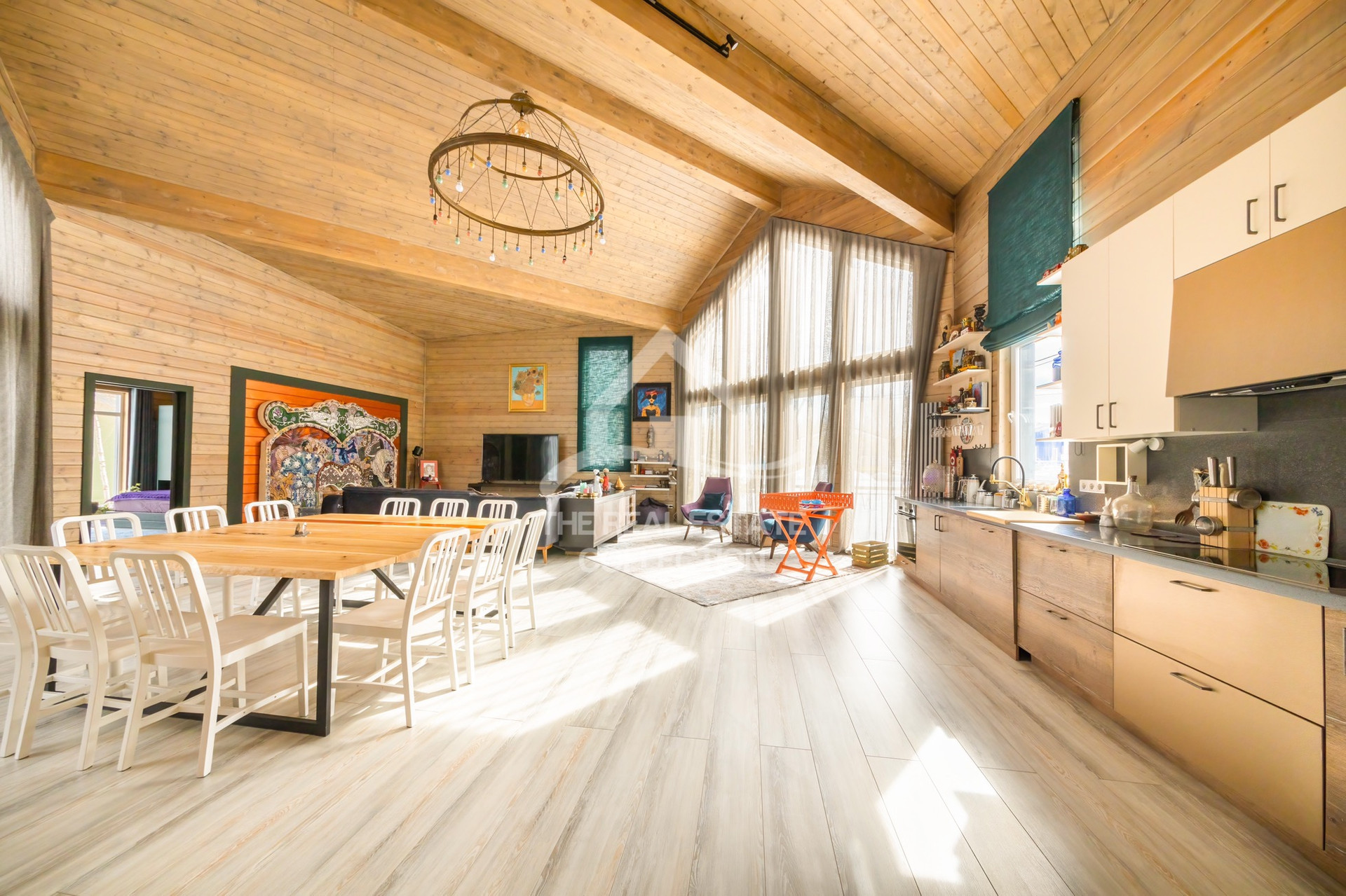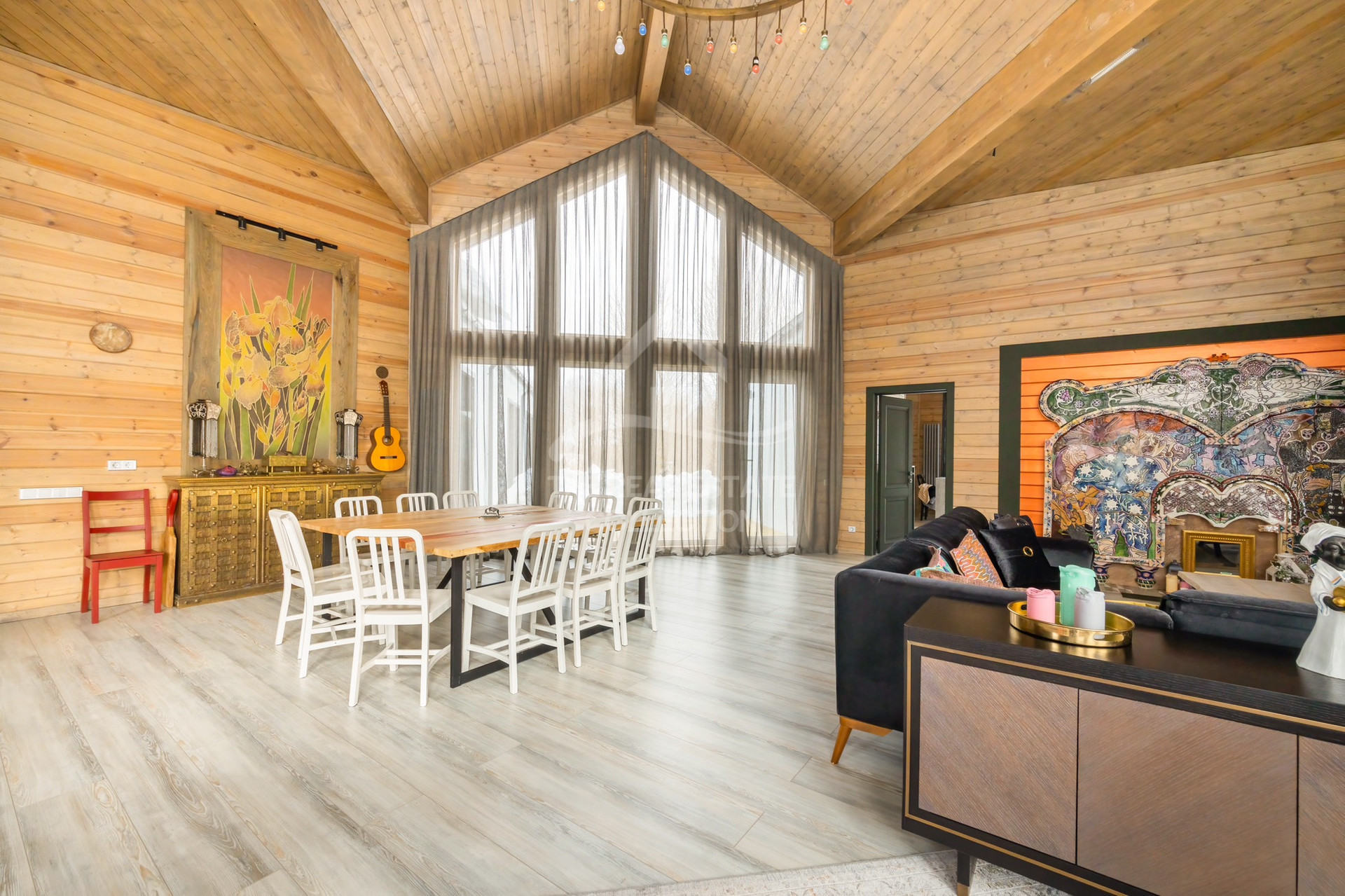 Потолки переменой высоты от 5-7,5 метров. Просторный холл. Второй свет. Широкие комнаты с высокими потолками.