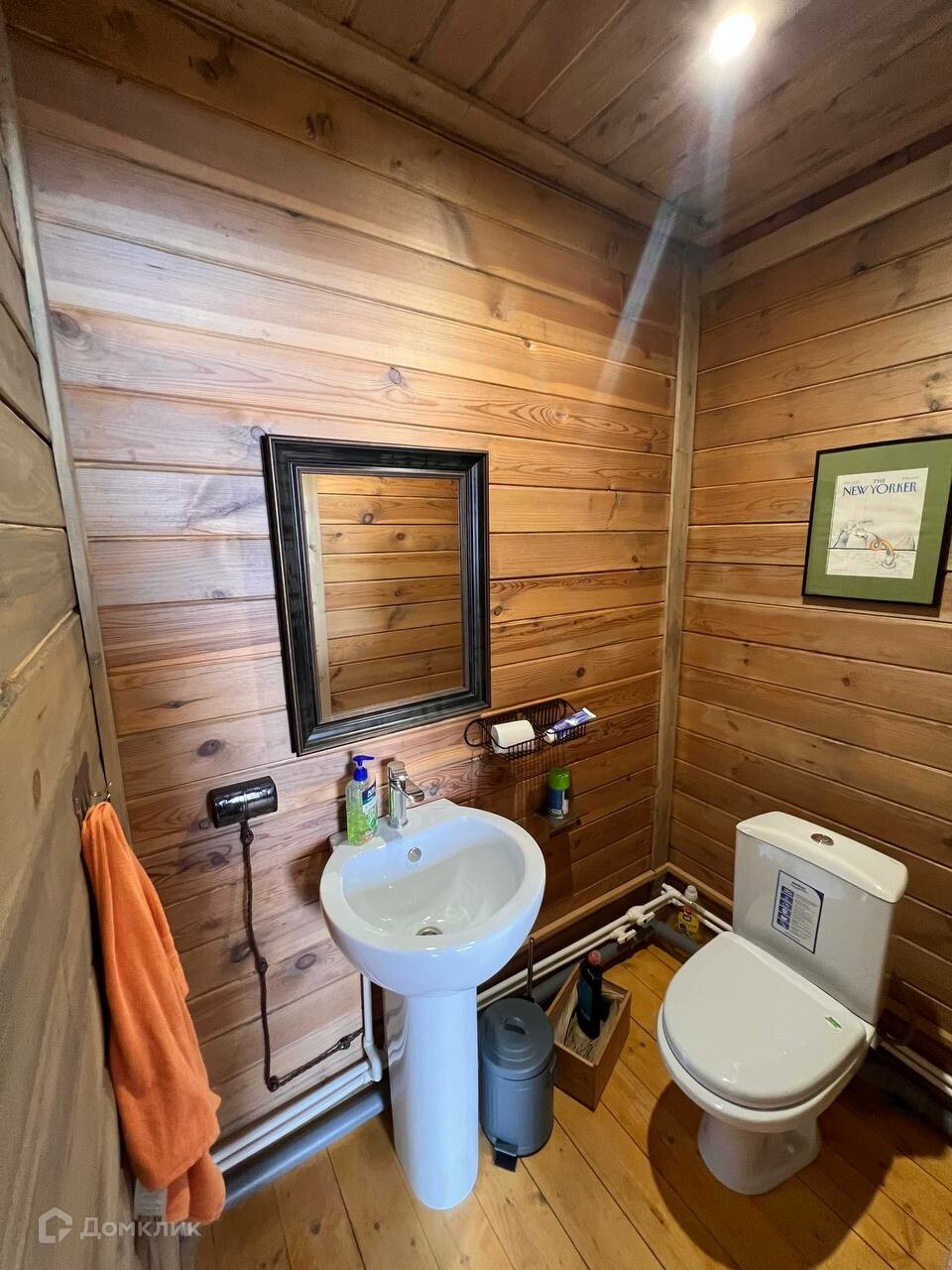 Санузел первого этажа выполнен современным фаянсом. Поднимаясь по лестнице - вы попадаете в библиотеку или общую зону для игр с детьми.