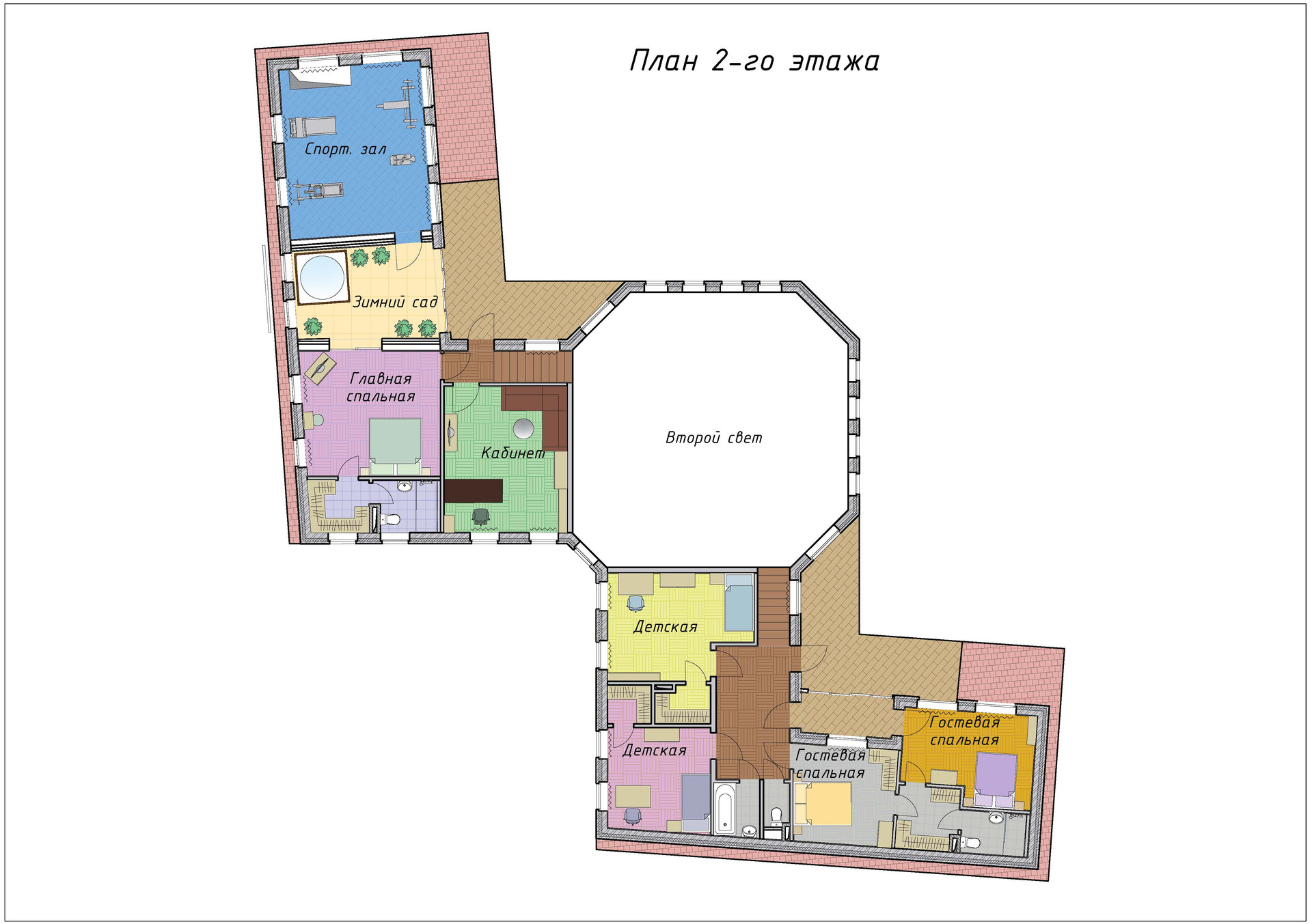 Дом построен по уникальному проекту, оптимально ориентирован по сторонам света, многократно описывался в глянцевых журналах. Представляет из себя 2 крыла, объединенных большим залом 80кв.м. с потолком выше 10 метров.