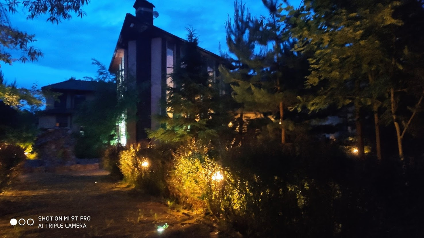 Соседи - по 2-м сторонам, по другим границам лес и река Македонка около 100 метров береговой линии. Забор по берегу сочетается с зеленой изгородью, берег укреплен частоколом свай из лиственницы и валунами. Участок высокий воды весной нет. На участке есть проточный пруд 2500кв.м. с рыбой и утками, фонтан диаметром 12 метров. Участок разбит на 2 части внешний малый двор для парковки машин, мощенный гранитной брусчаткой (без проблем умещается 6-8 машин), внутренний, большой - для отдыха. На участке выполнен ландшафтный дизайн: посажаны десятки видов растений подобрано так, что весь теплый сезон что-то цветет. Все дорожки из натурального камня со встроенной подсветкой, подпорные стены с подсветкой, в целом участок лесной, много сосен, но есть большая поляна для спортивных развлечений, детская площадка. На участке располагается теплая беседка с большой верандой в стилистике основного дома 60кв.м., с печью и барбекю, с выходом к реке. Отдельно расположен летний дом садовника с кладовыми помещениями и вольерами для собак. Архитектурное освещение фасадов.
