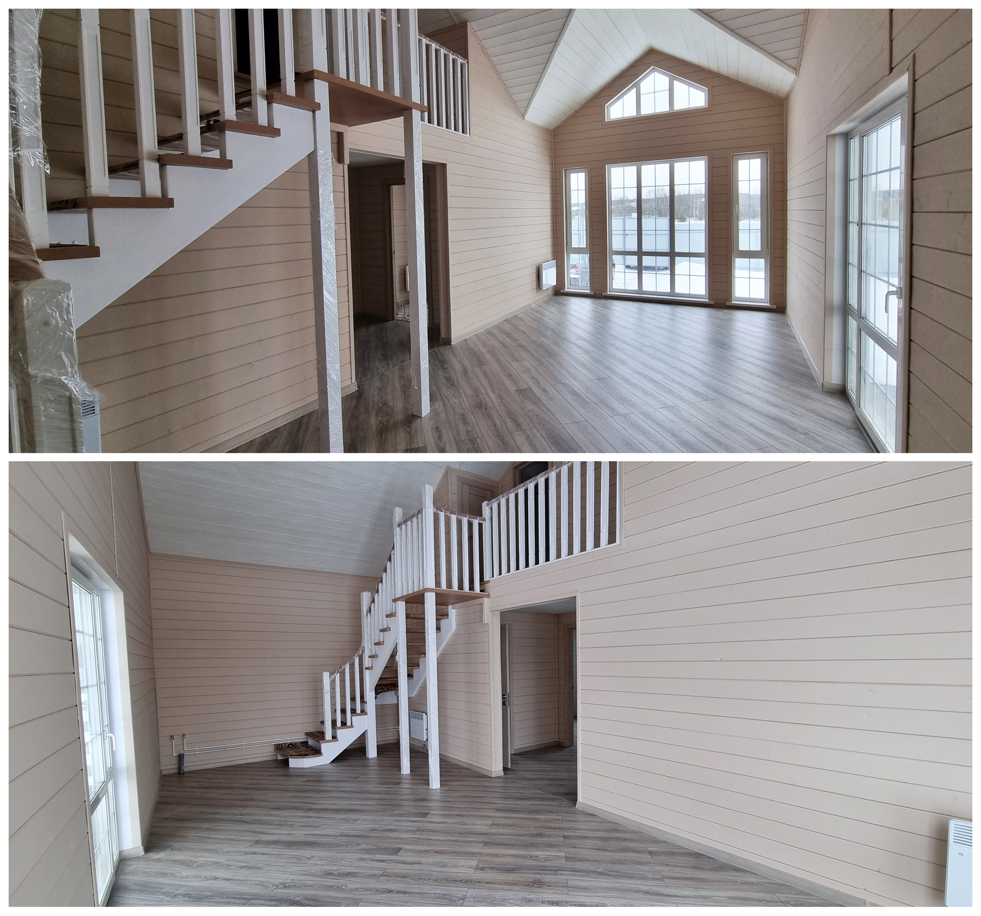 Большое пространство на втором этаже с удобной лестницей