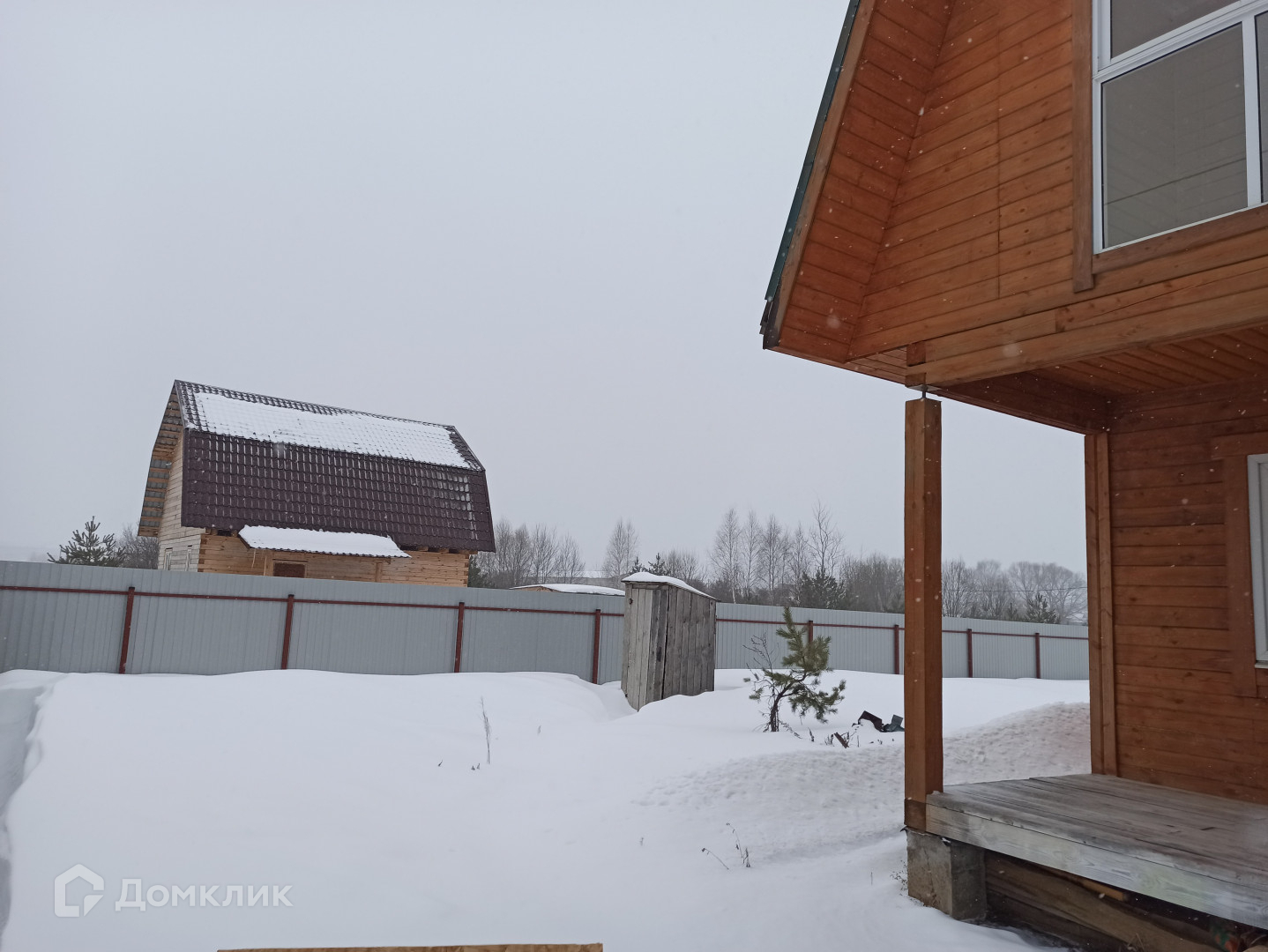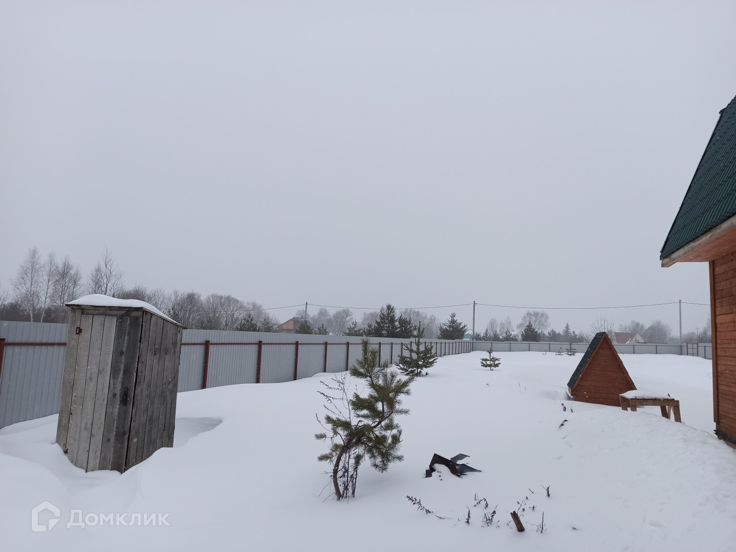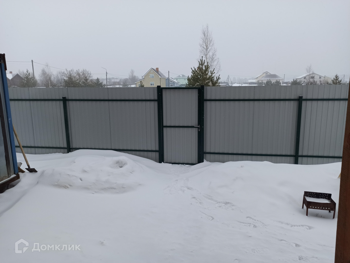 На участке забор из профлиста, два заезда для автомобиля, калитка.