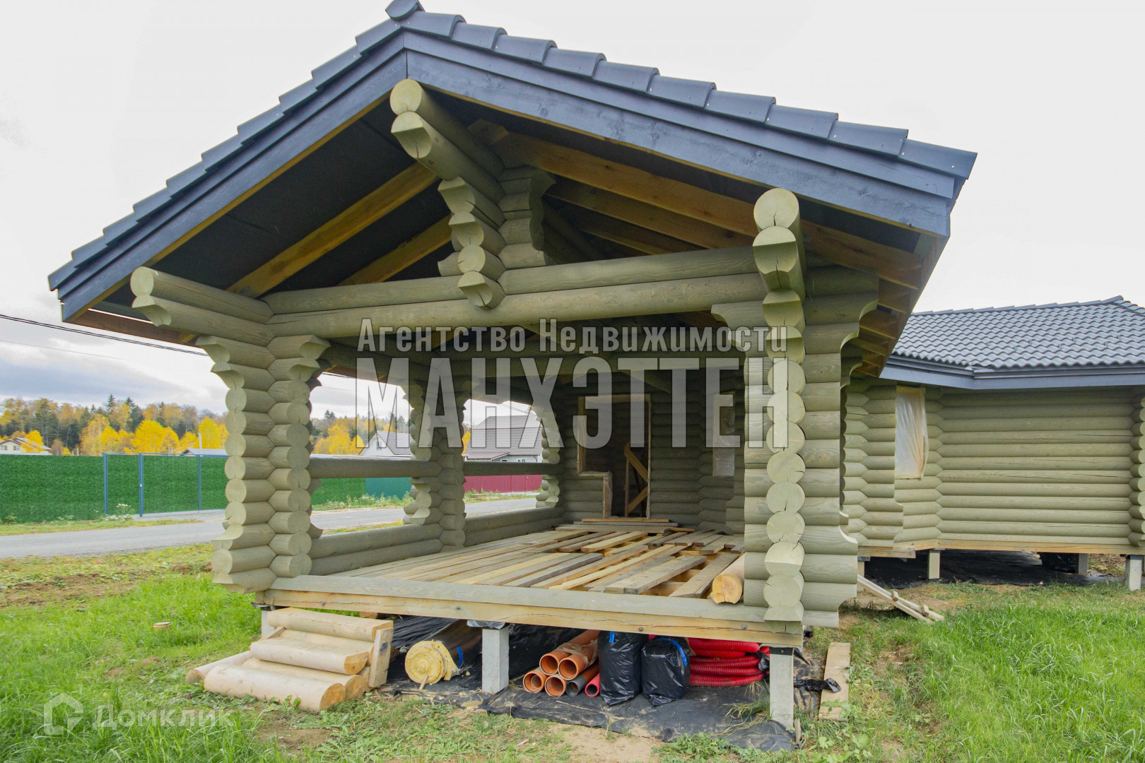 Материал дома: оцилиндрованное бревно d24;