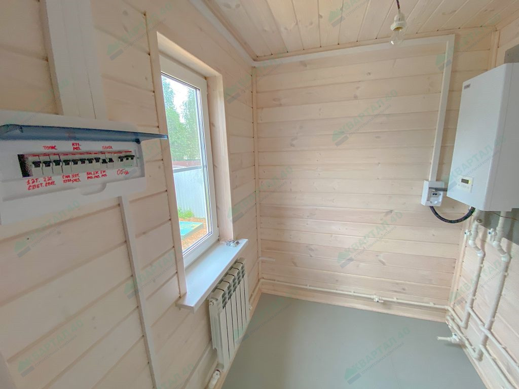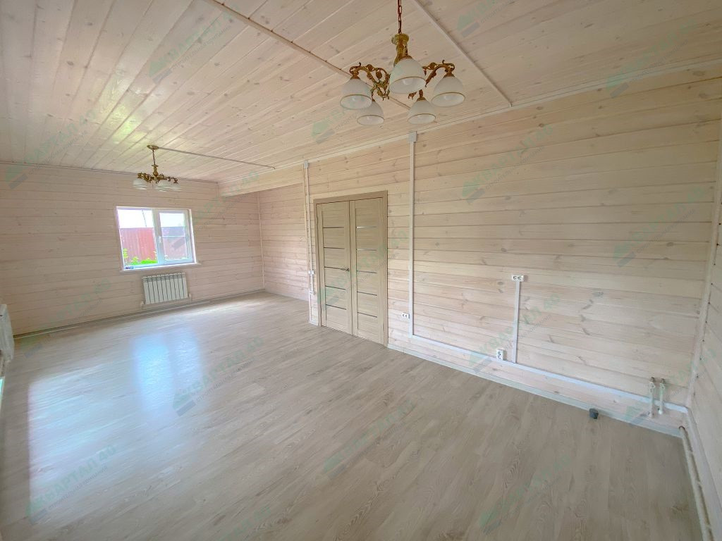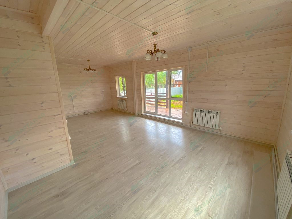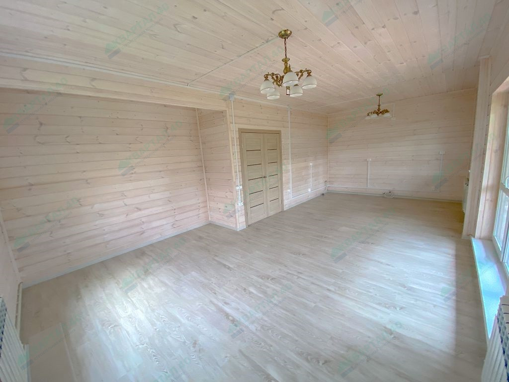 Материал стен - брус 150 мм и наружное утепление, пол и крыша утеплены - 150 мм, отделка наружная и внутренняя - имитация бруса;