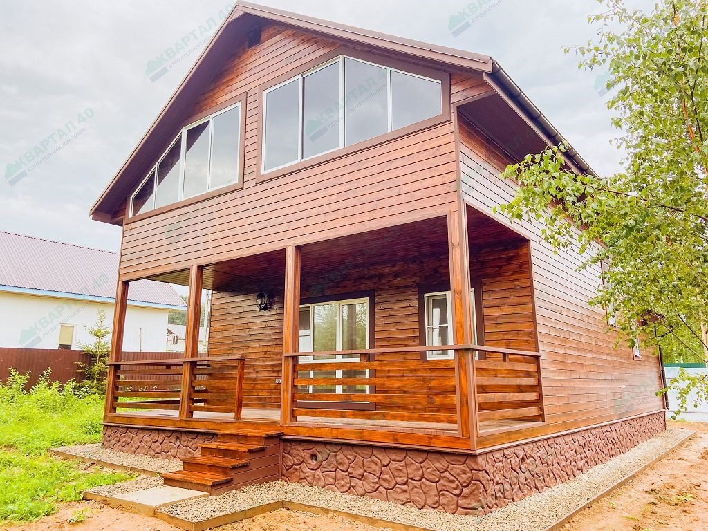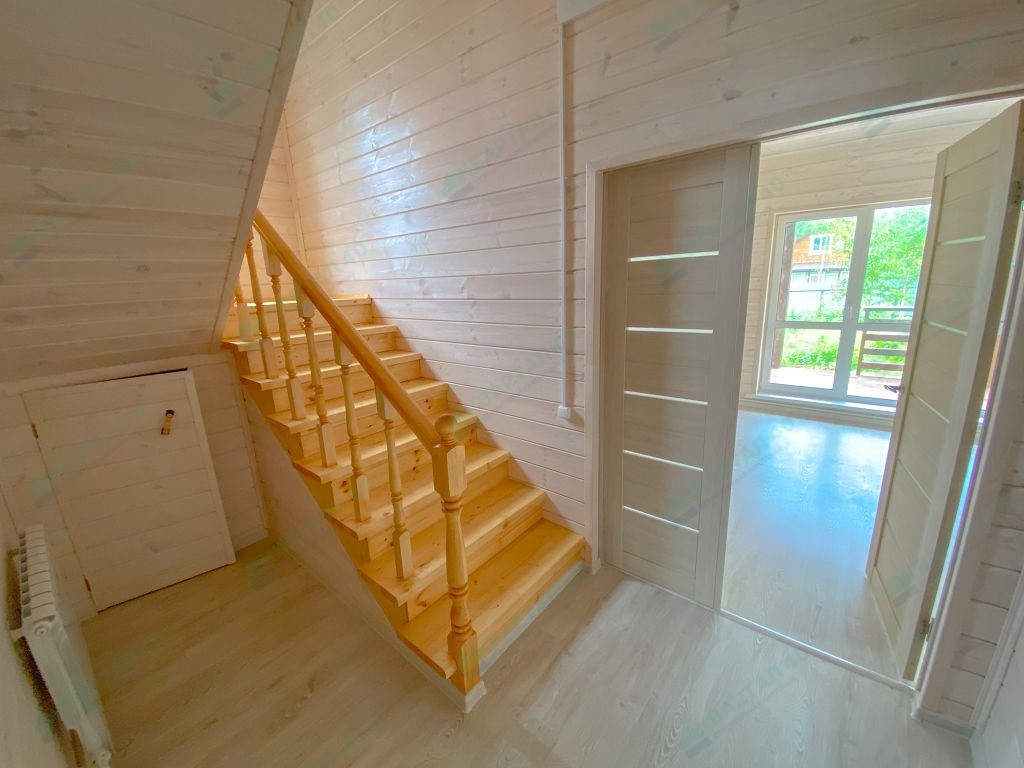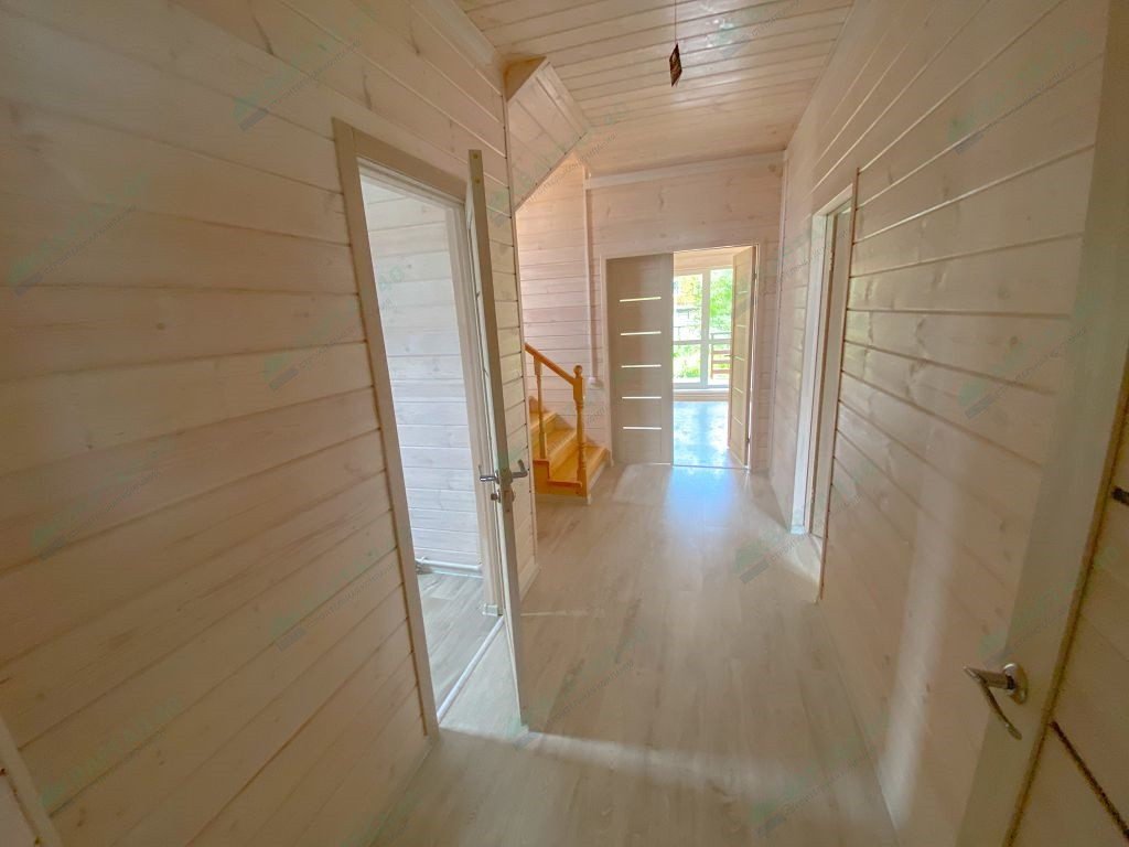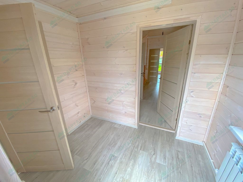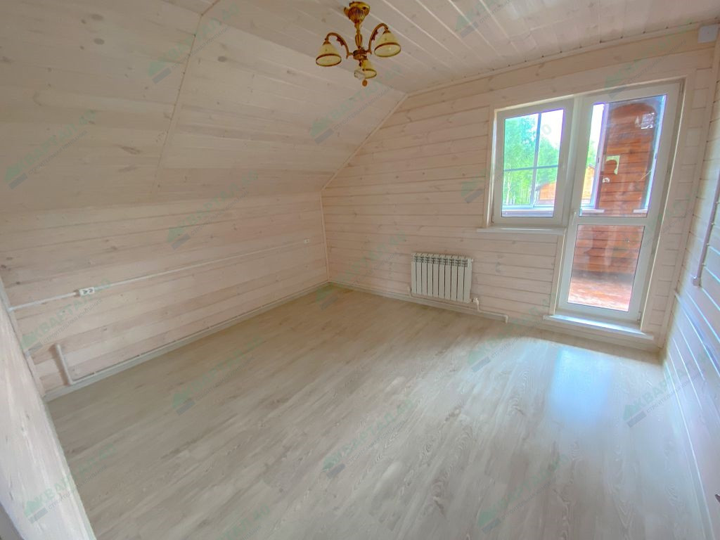 Материал стен - брус 150 мм и наружное утепление, пол и крыша утеплены - 150 мм, отделка наружная и внутренняя - имитация бруса;