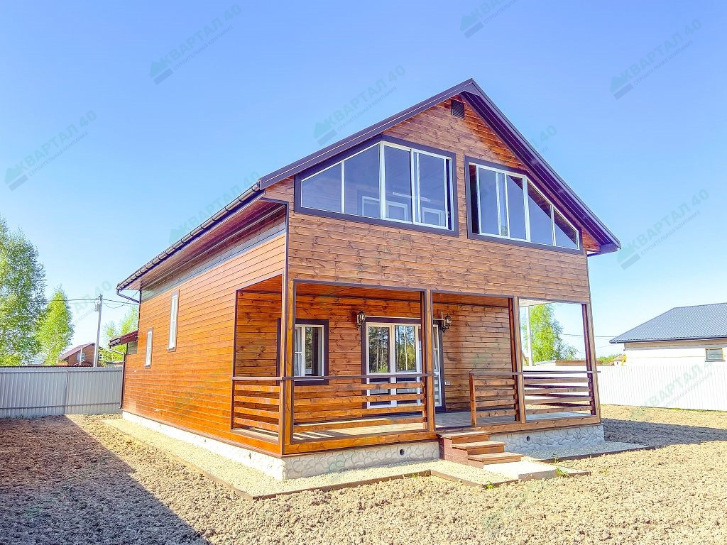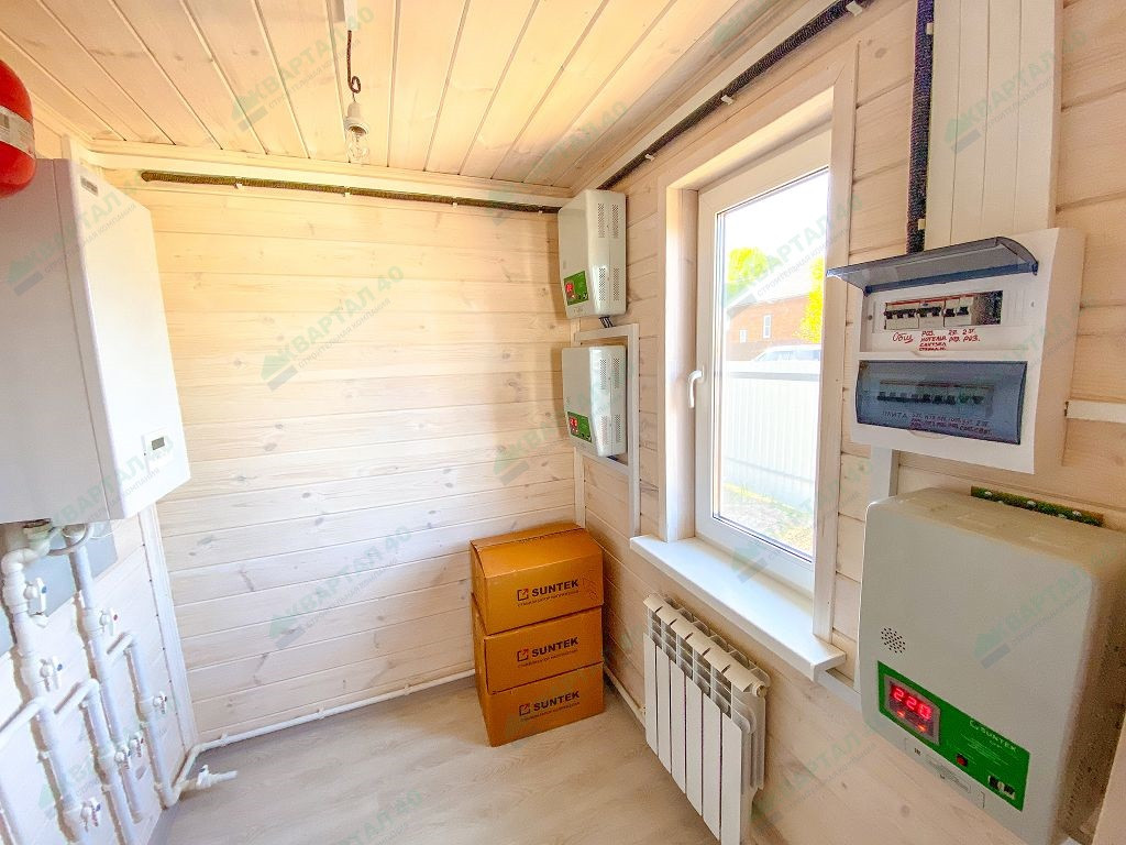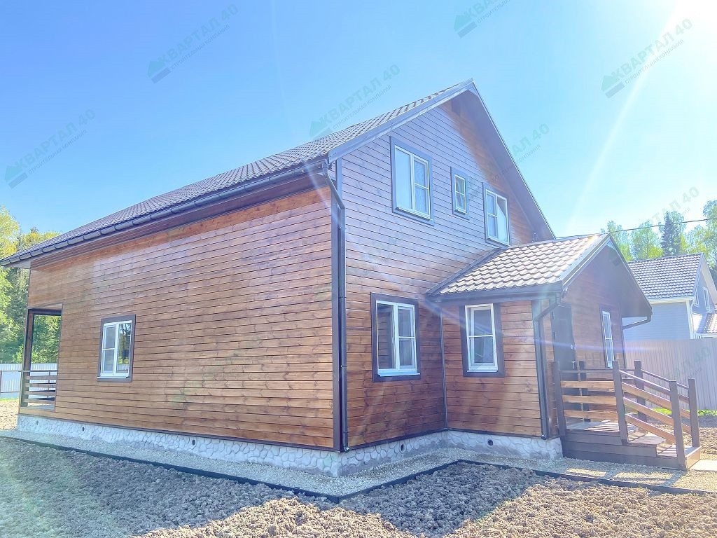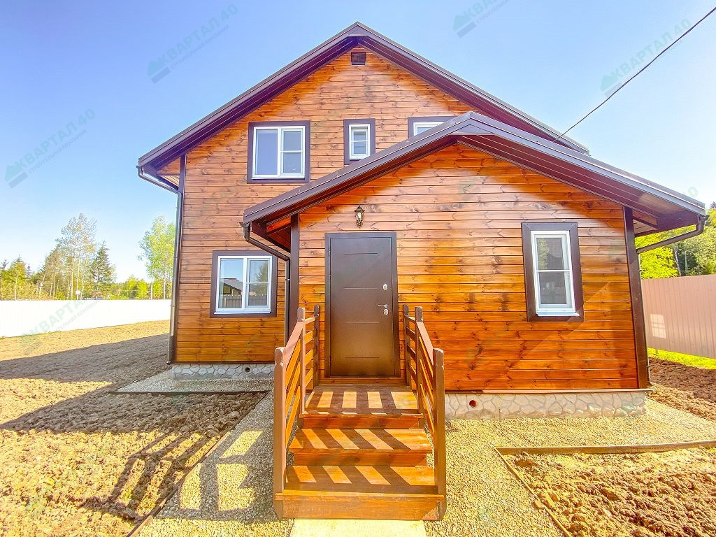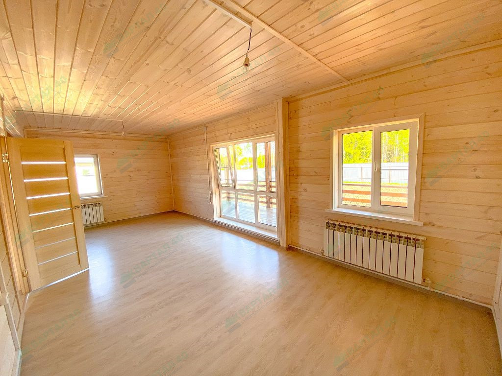 Материал стен - брус 150 мм. и наружное утепление 100 мм., пол и крыша утеплены - 150 мм, отделка наружная и внутренняя - имитация бруса (внутри и снаружи обработан, покрашен);