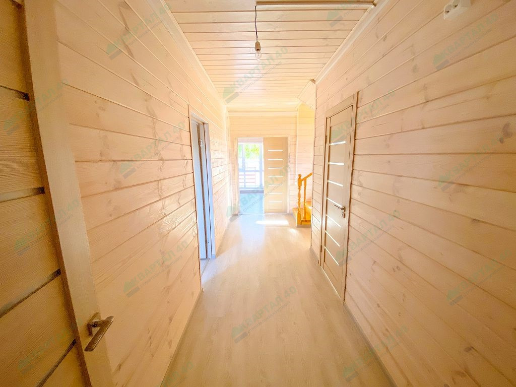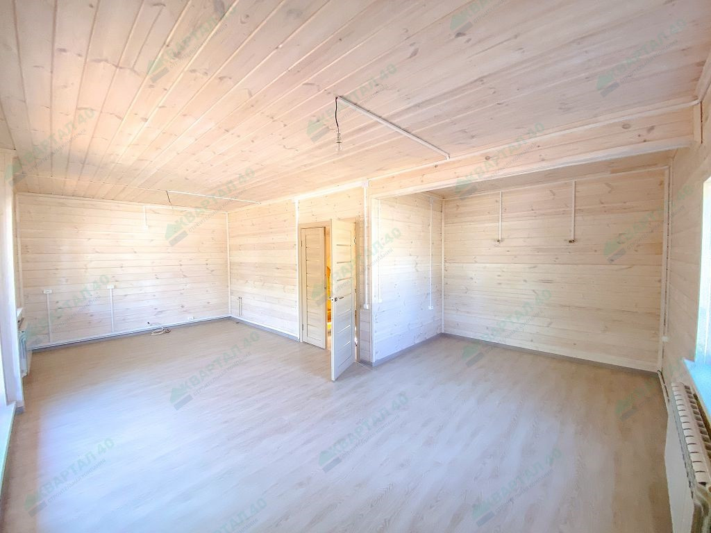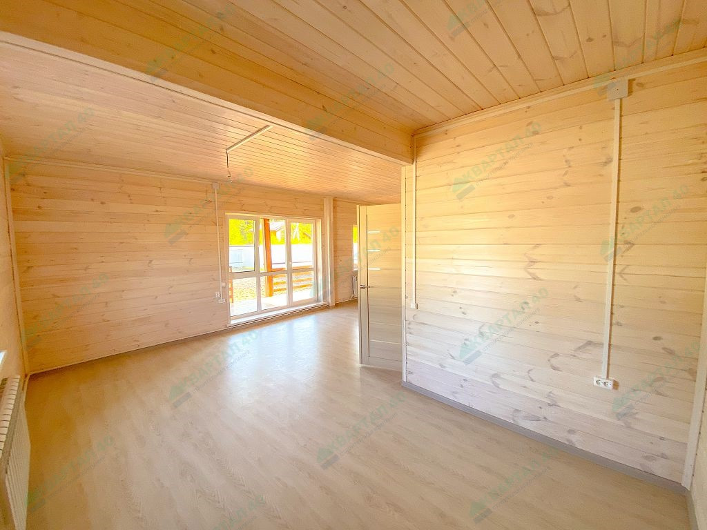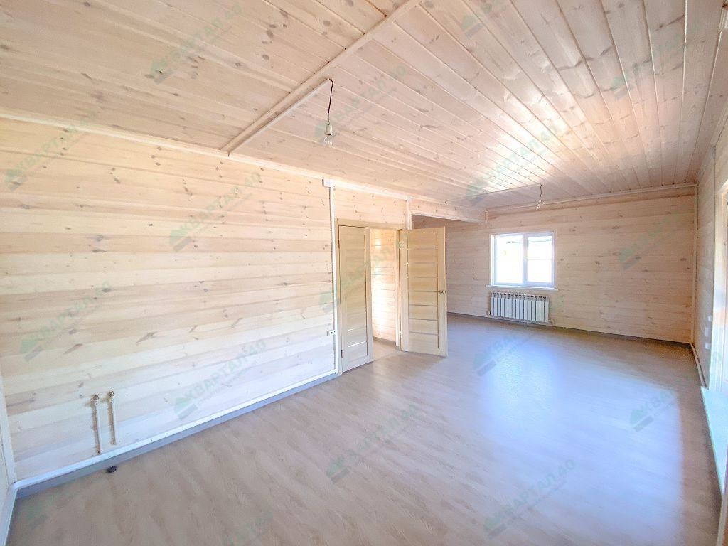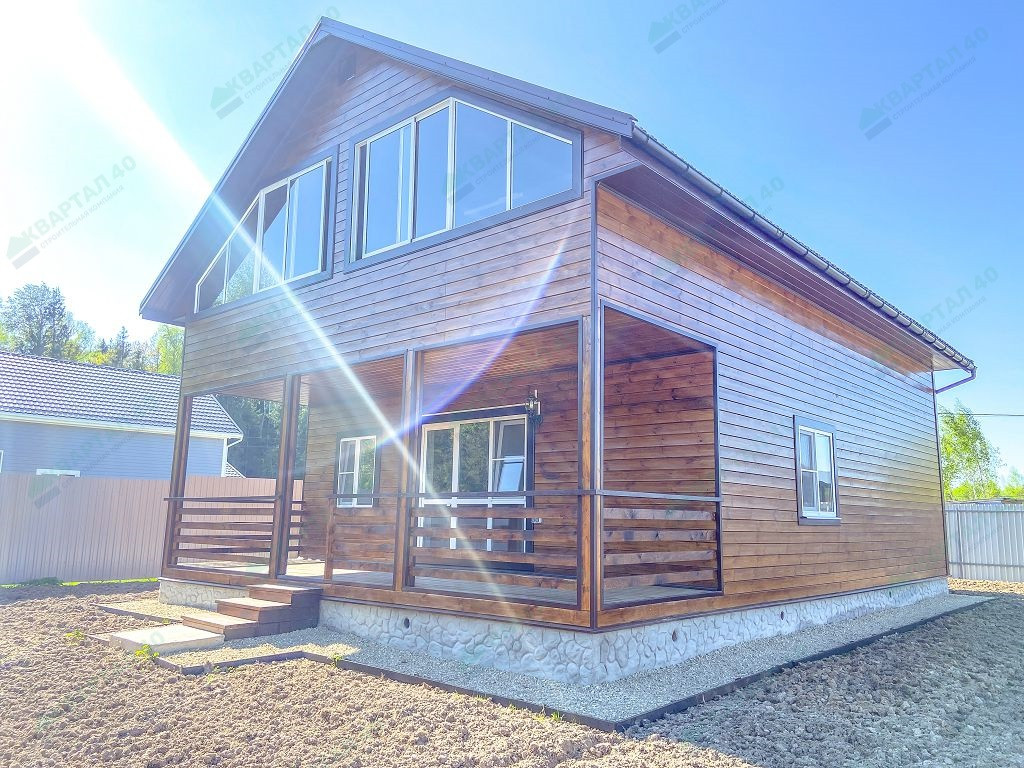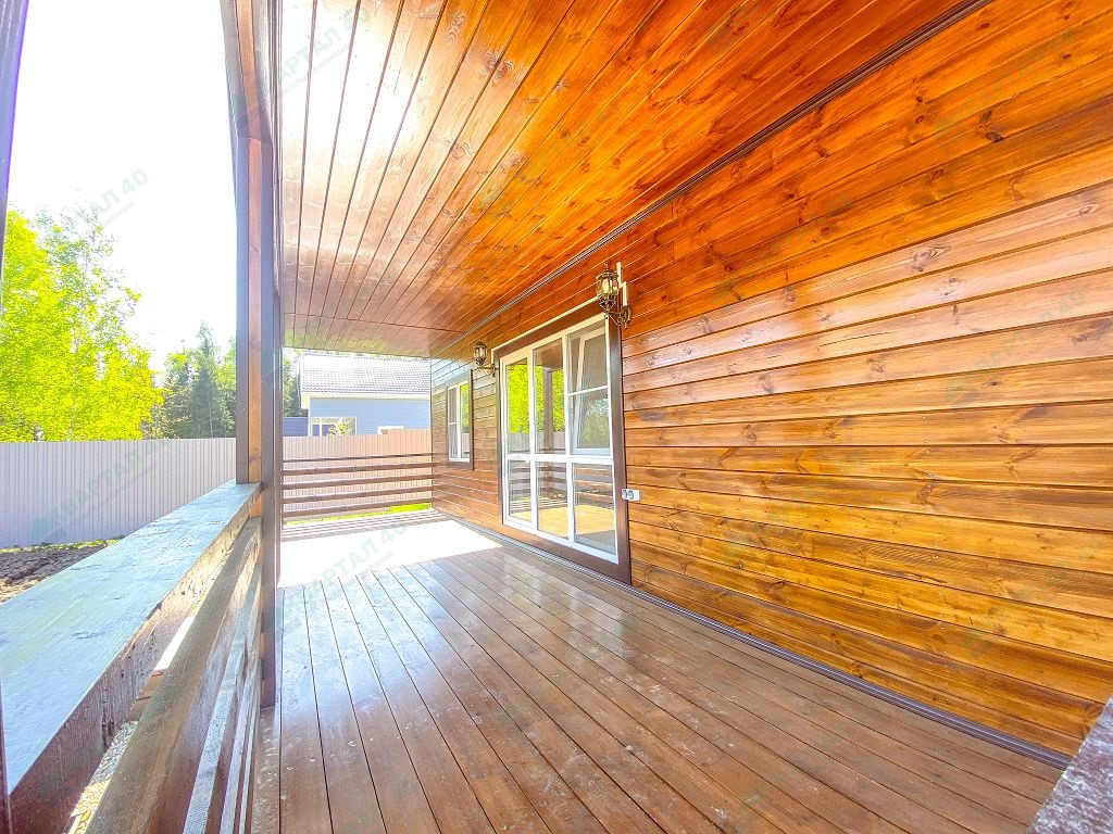 Материал стен - брус 150 мм. и наружное утепление 100 мм., пол и крыша утеплены - 150 мм, отделка наружная и внутренняя - имитация бруса (внутри и снаружи обработан, покрашен);