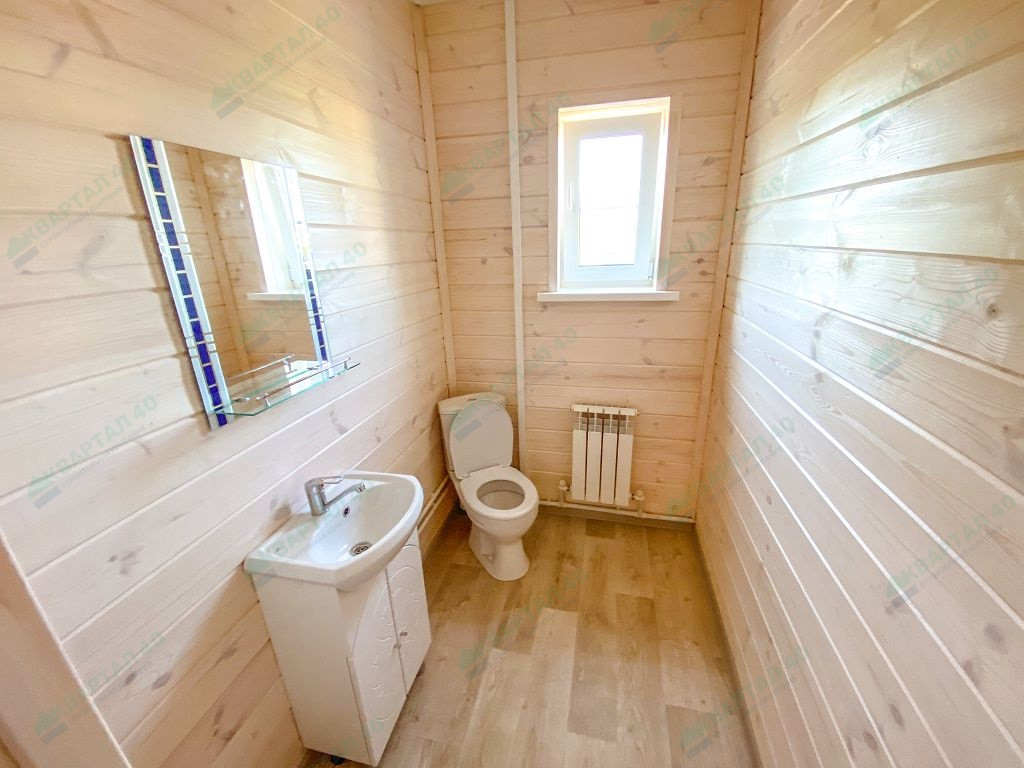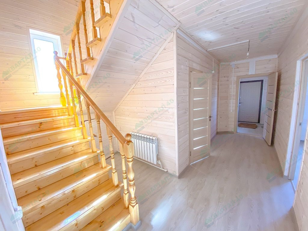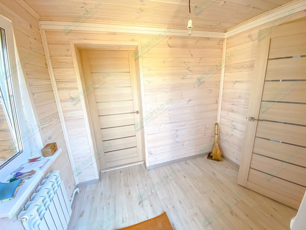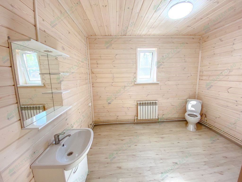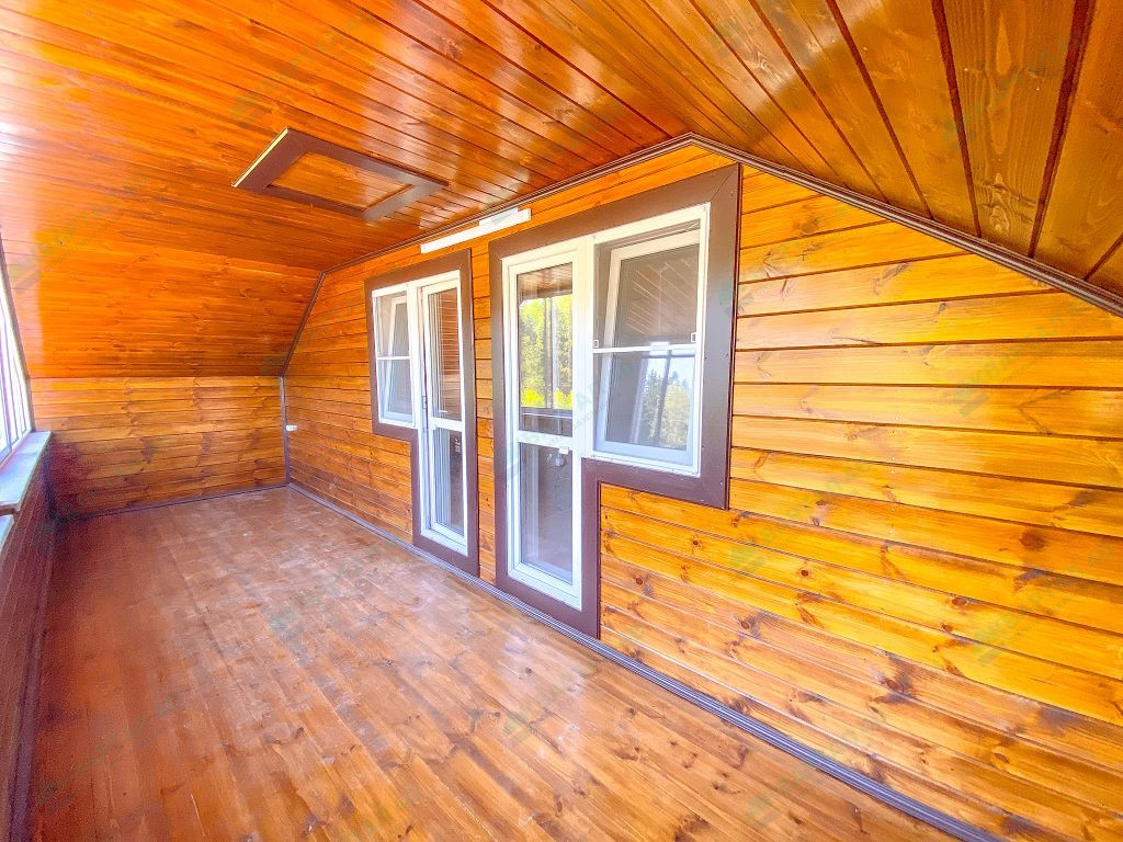 Материал стен - брус 150 мм. и наружное утепление 100 мм., пол и крыша утеплены - 150 мм, отделка наружная и внутренняя - имитация бруса (внутри и снаружи обработан, покрашен);
