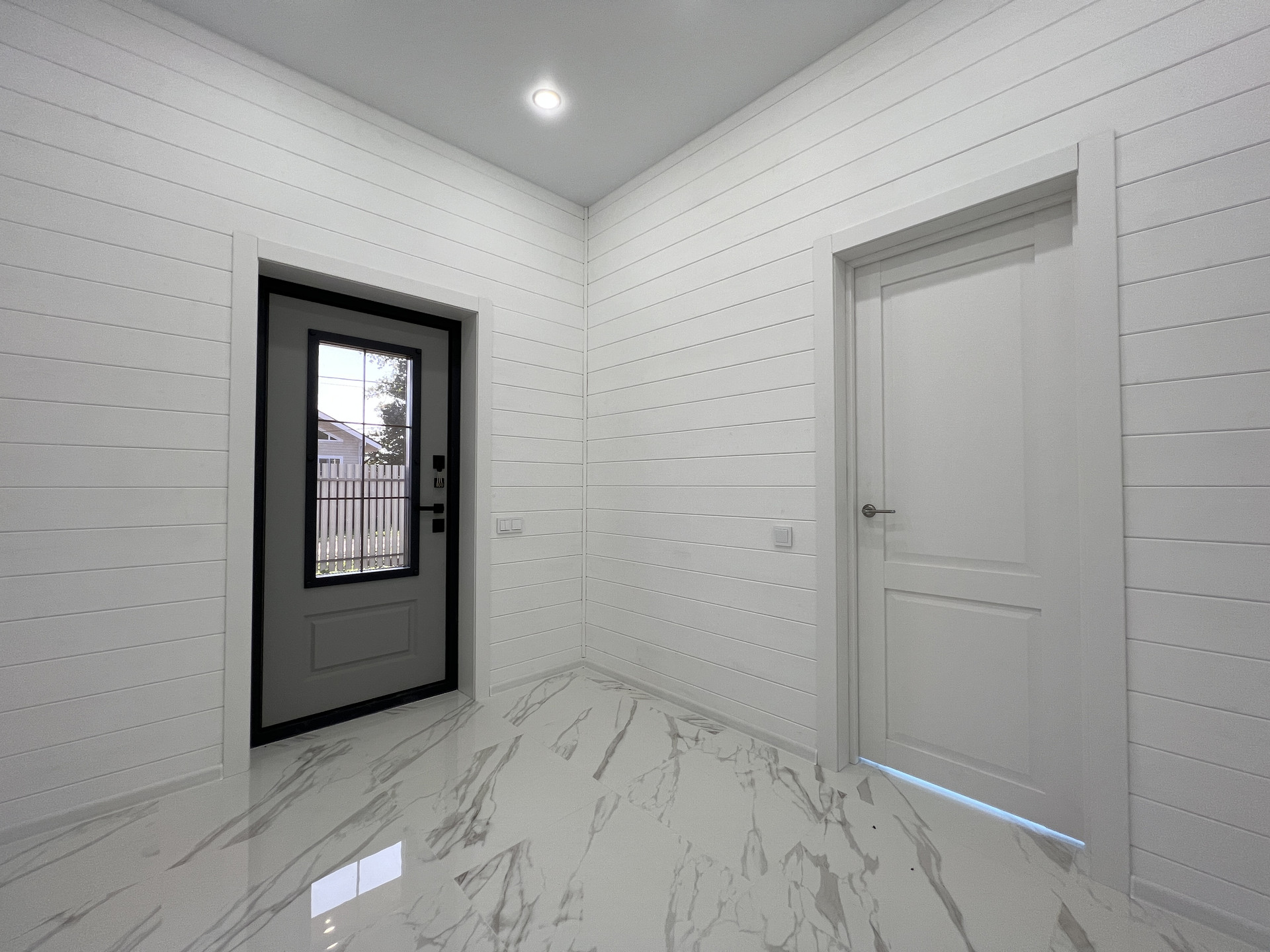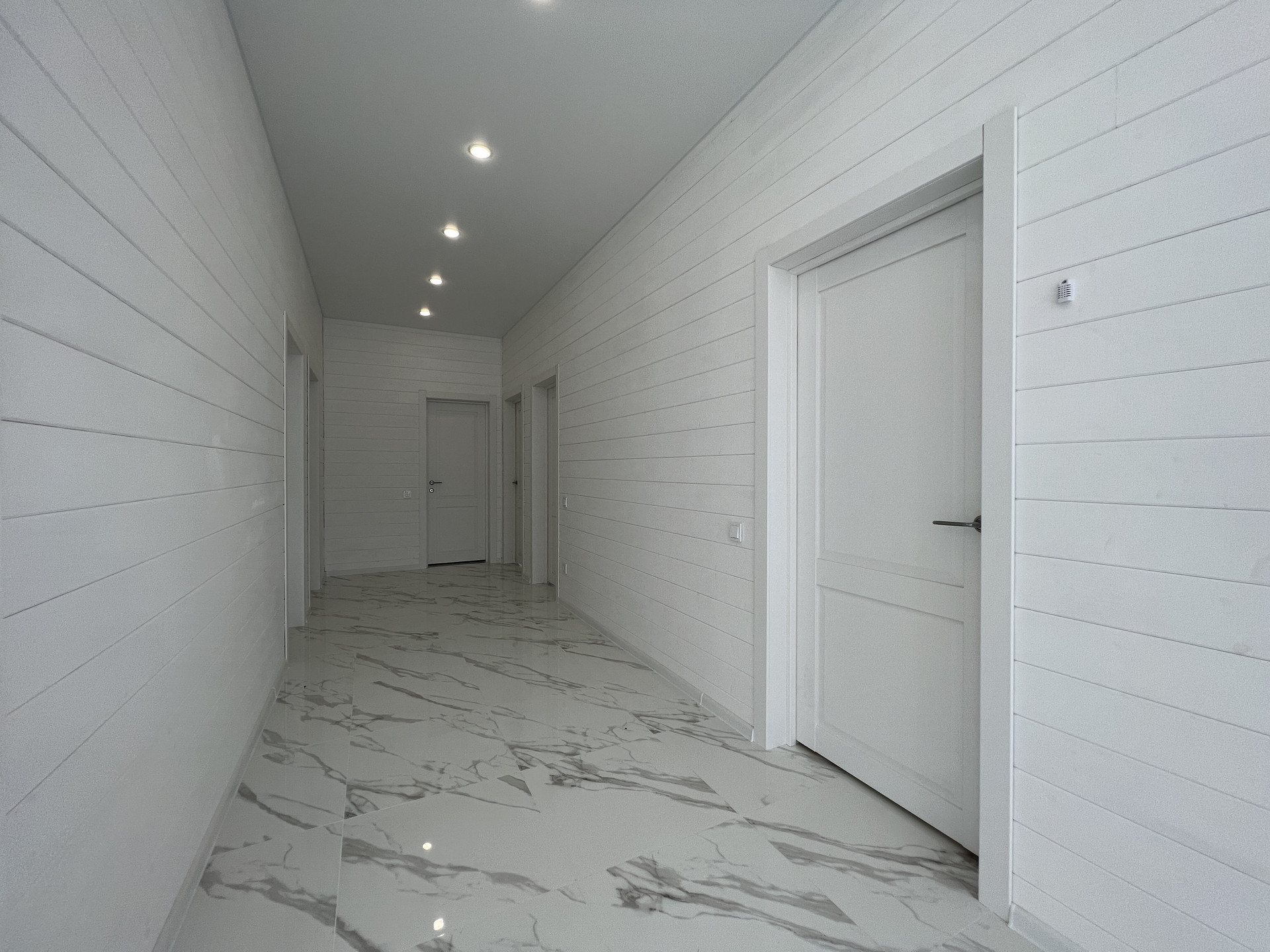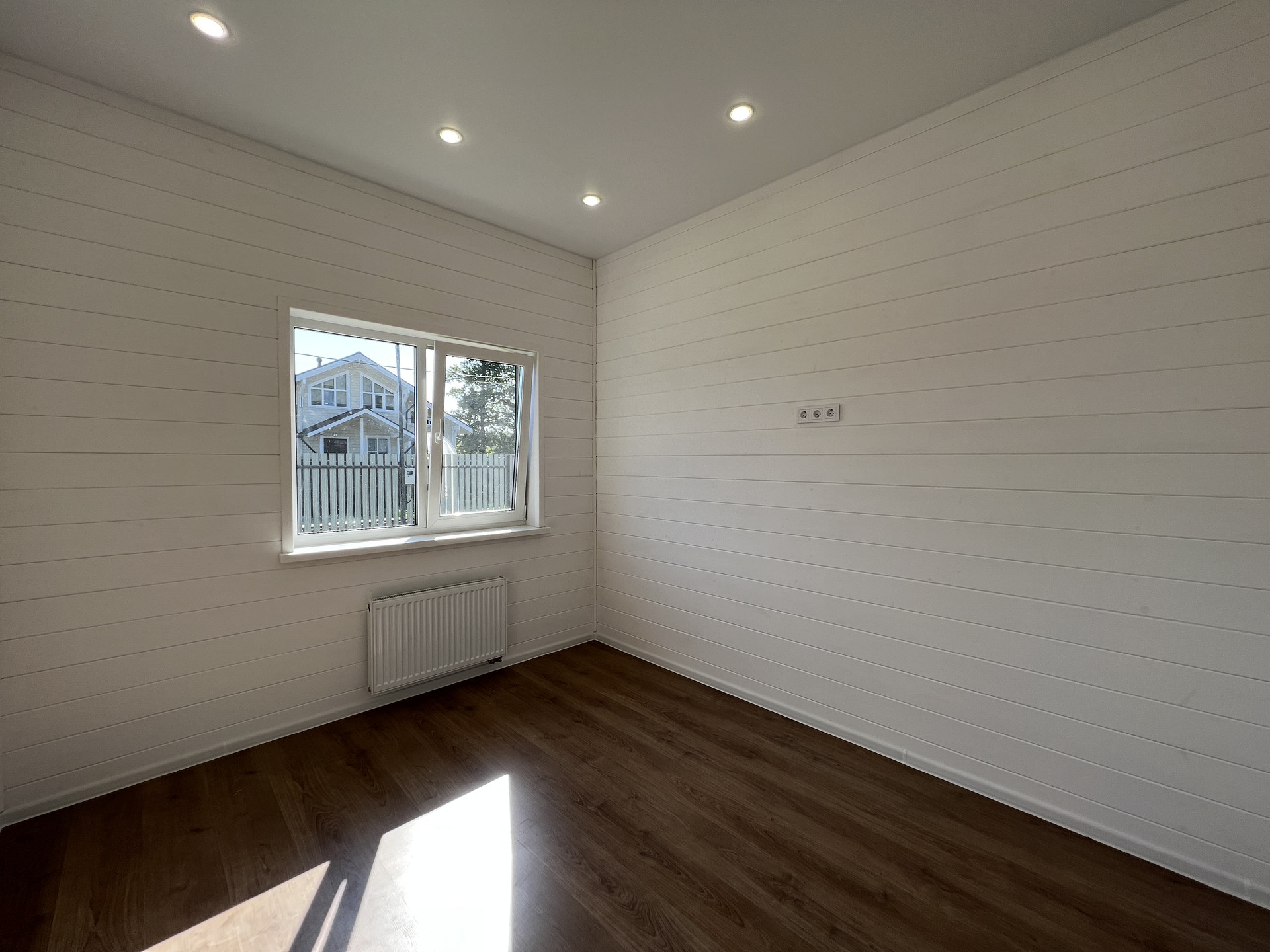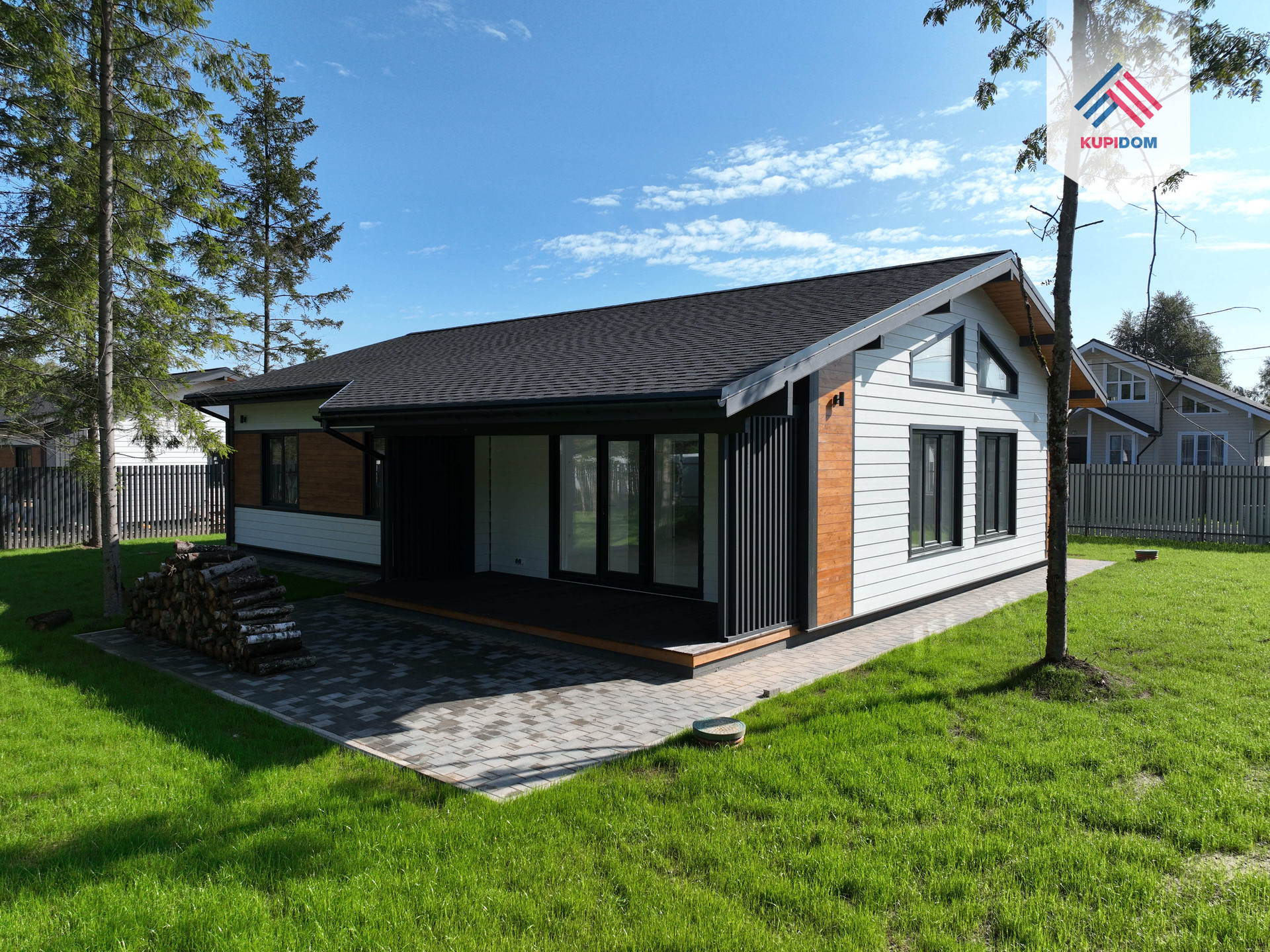 Дом каркасный, из сухого строганного дерева, построен по проекту. Фундамент - монолитная армированная плита; Крыша и фасад - вентилируемые; Вентиляция в котельной, санузлах и кухне; установлена водосточная система с отведением в ливневые колодца; Внешняя отделка дома - фиброцементный сайдинг DECOVER с декорирующими элементами из лиственницы; Декоративная подсветка дома; Утепление дома - стены - 200мм Knauf / межкомнатные - 100мм, пол - 50мм Пеноплекс, потолки - 250мм Knauf; Мембраны Grand Line; Окна - двухкамерные стеклопакеты REHAU 70 профиль с темной ламинацией; Крыша - мягкая кровля Технониколь; внутренняя отделка - полы - керамогранит / ламинат; Потолок - натяжной. На крыльце и террасе - террасная доска.