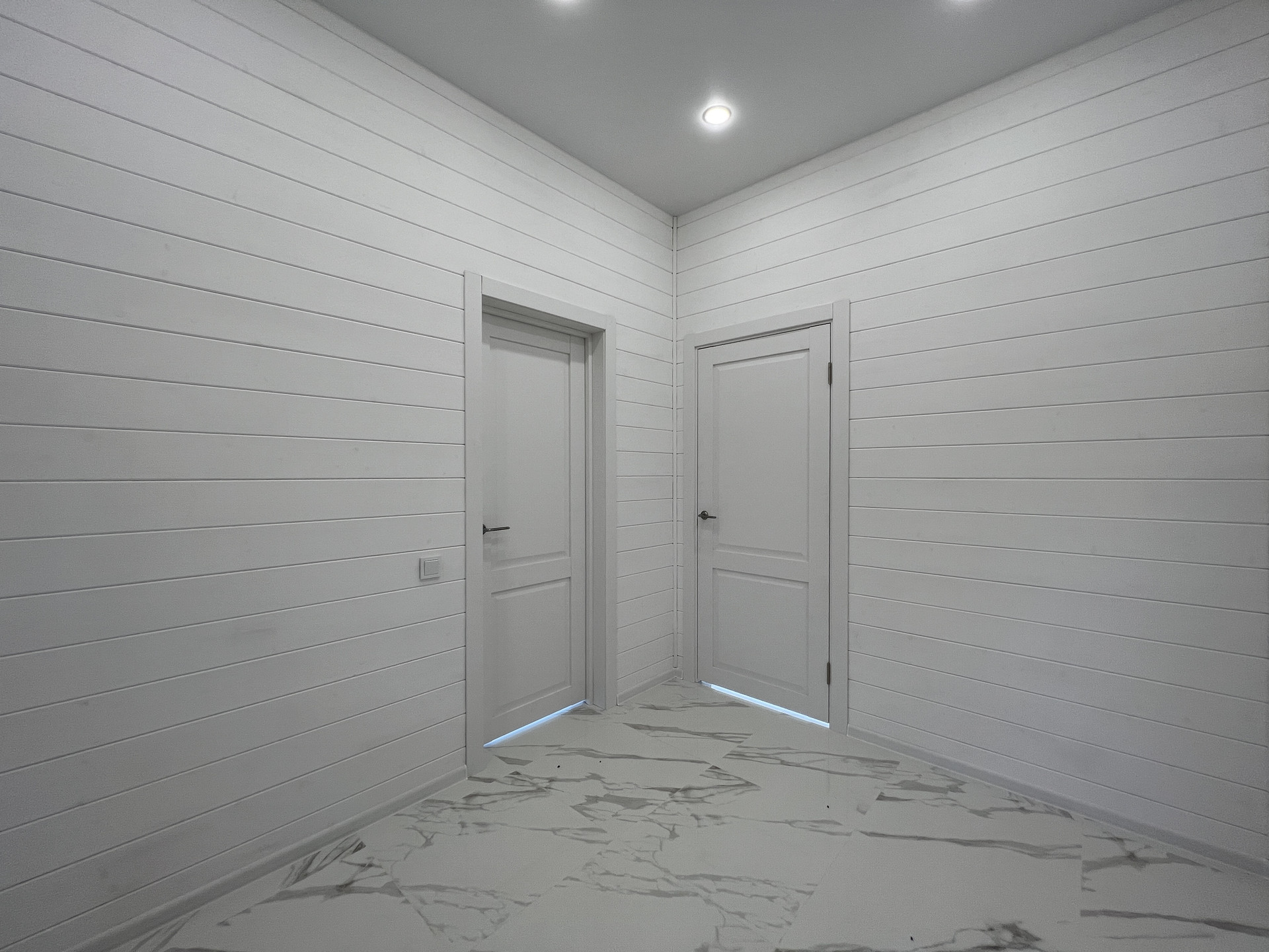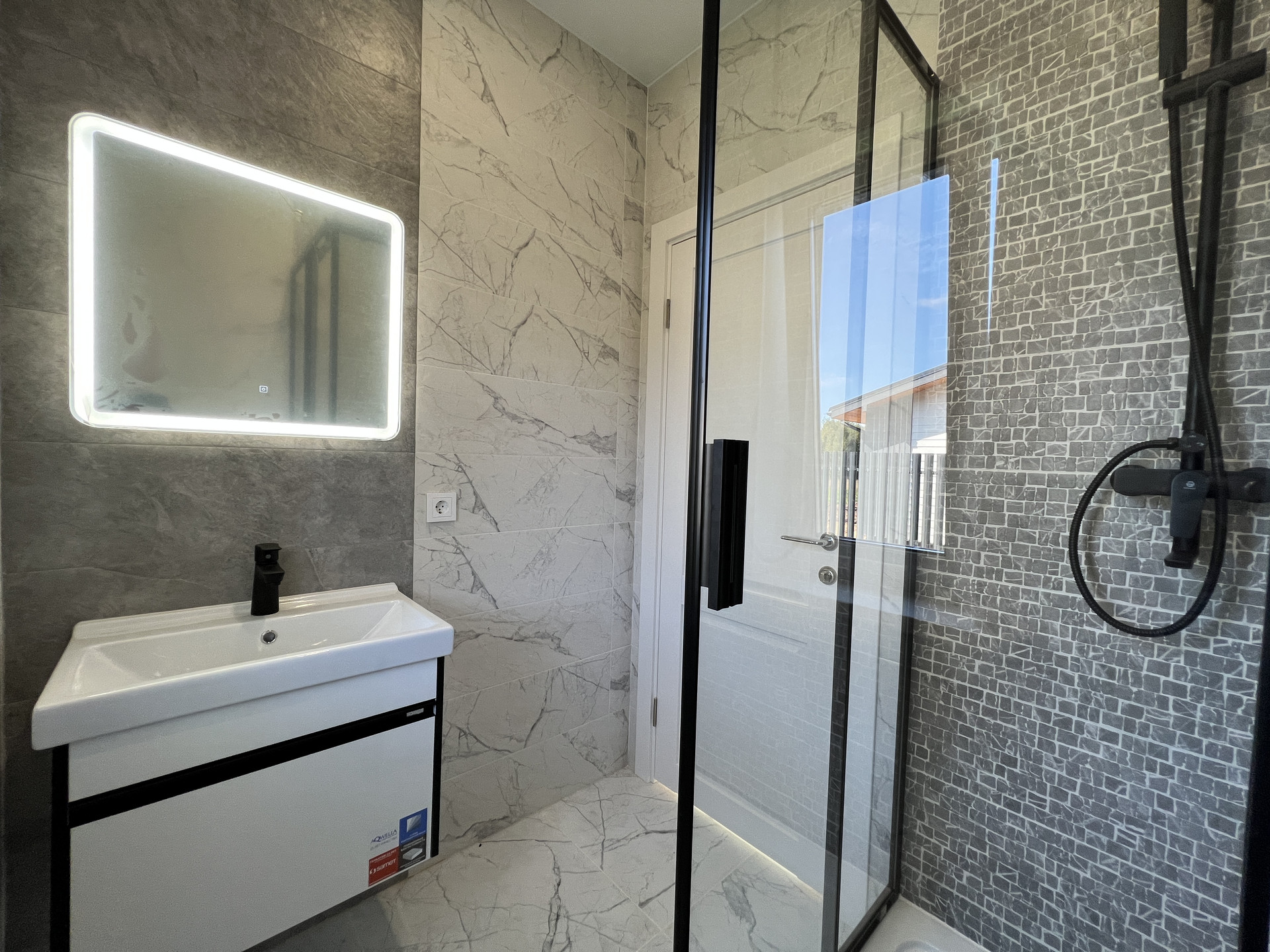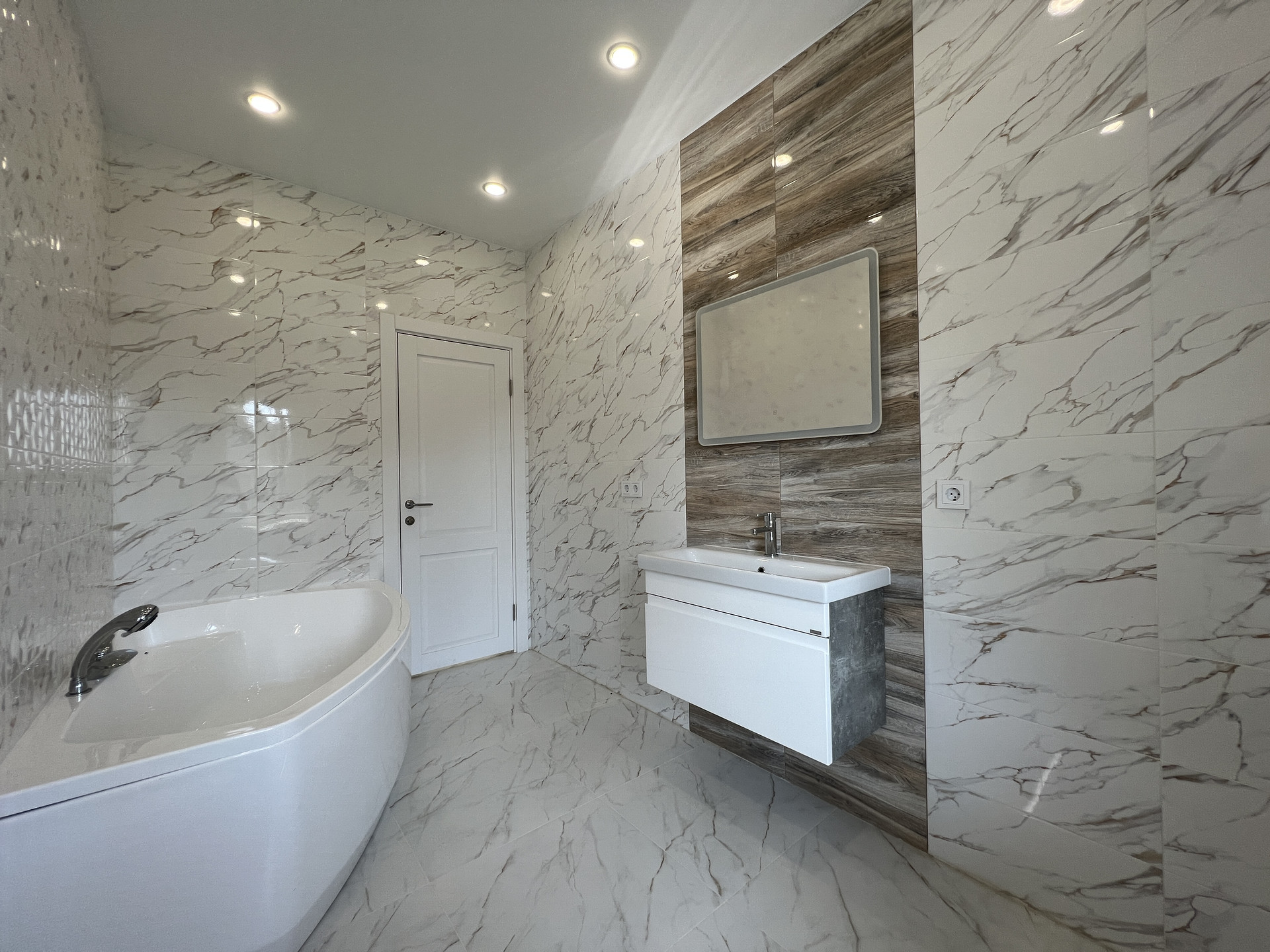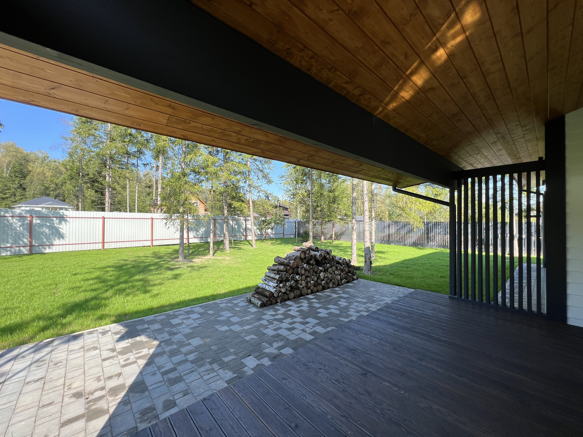 Дом каркасный, из сухого строганного дерева, построен по проекту. Фундамент - монолитная армированная плита; Крыша и фасад - вентилируемые; Вентиляция в котельной, санузлах и кухне; установлена водосточная система с отведением в ливневые колодца; Внешняя отделка дома - фиброцементный сайдинг DECOVER с декорирующими элементами из лиственницы; Декоративная подсветка дома; Утепление дома - стены - 200мм Knauf / межкомнатные - 100мм, пол - 50мм Пеноплекс, потолки - 250мм Knauf; Мембраны Grand Line; Окна - двухкамерные стеклопакеты REHAU 70 профиль с темной ламинацией; Крыша - мягкая кровля Технониколь; внутренняя отделка - полы - керамогранит / ламинат; Потолок - натяжной. На крыльце и террасе - террасная доска.