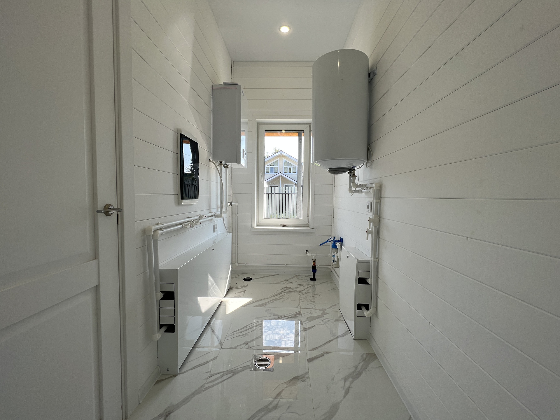 Электричество 15 кВт 380В, подключено по ГОСТУ и разведено по точкам потребления; Котельная оборудована, установлен электрический котел STOUT Plus; Газификация поселка запланирована на 2024 год; Водоснабжение и канализация - центральные. Водопровод с водой питьевого качества и сети канализации для круглогодичного использования; По всему дому разведен теплый водяной пол, установлены радиаторы; Установлен водонагреватель Edisson 80л. Интернет - оптоволокно.