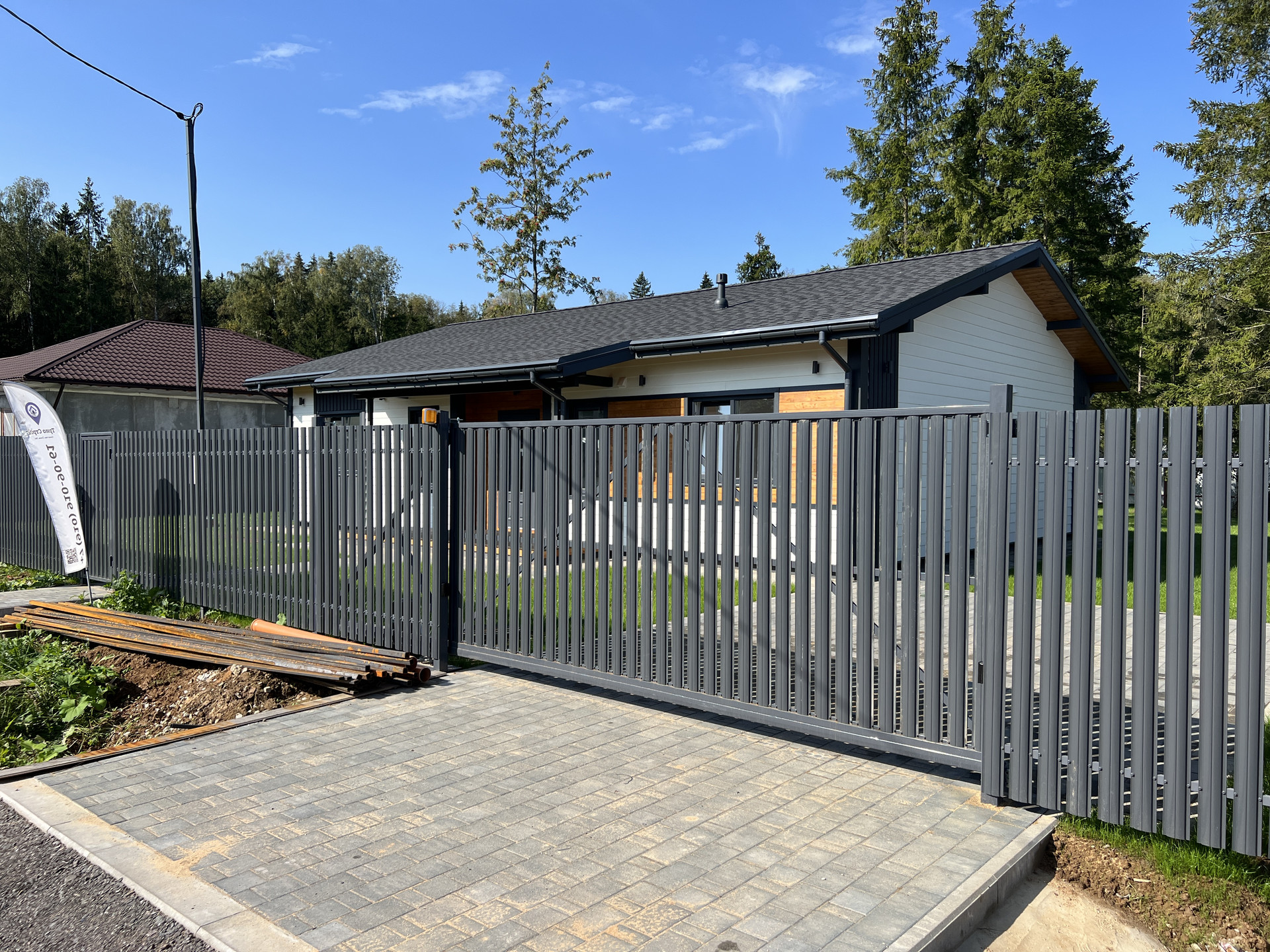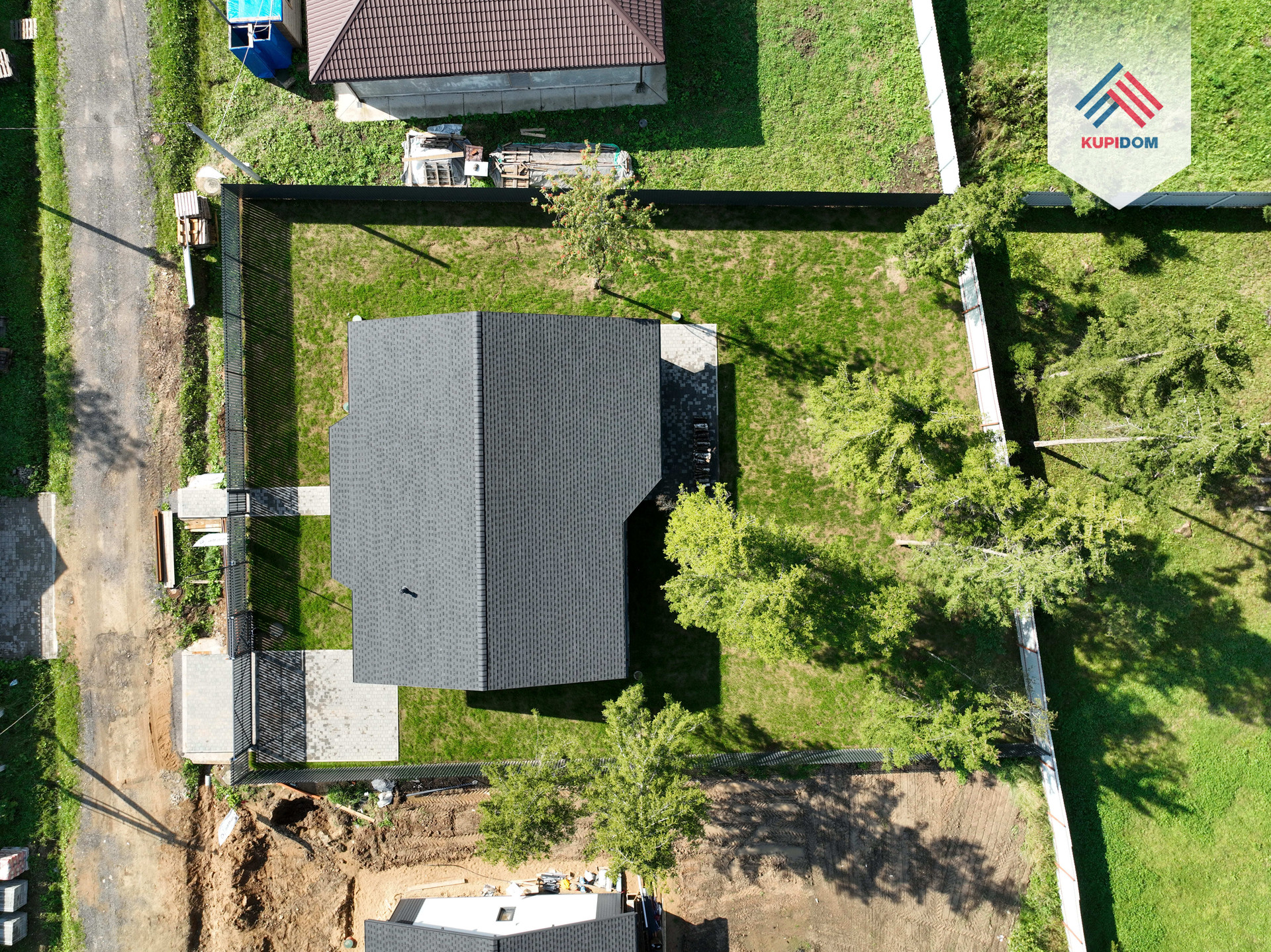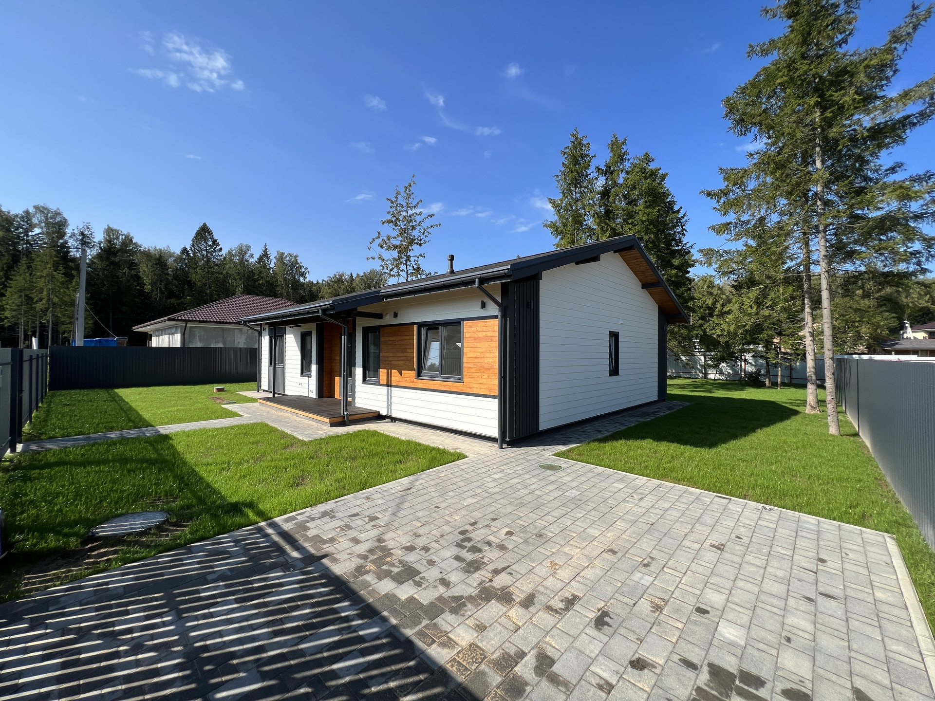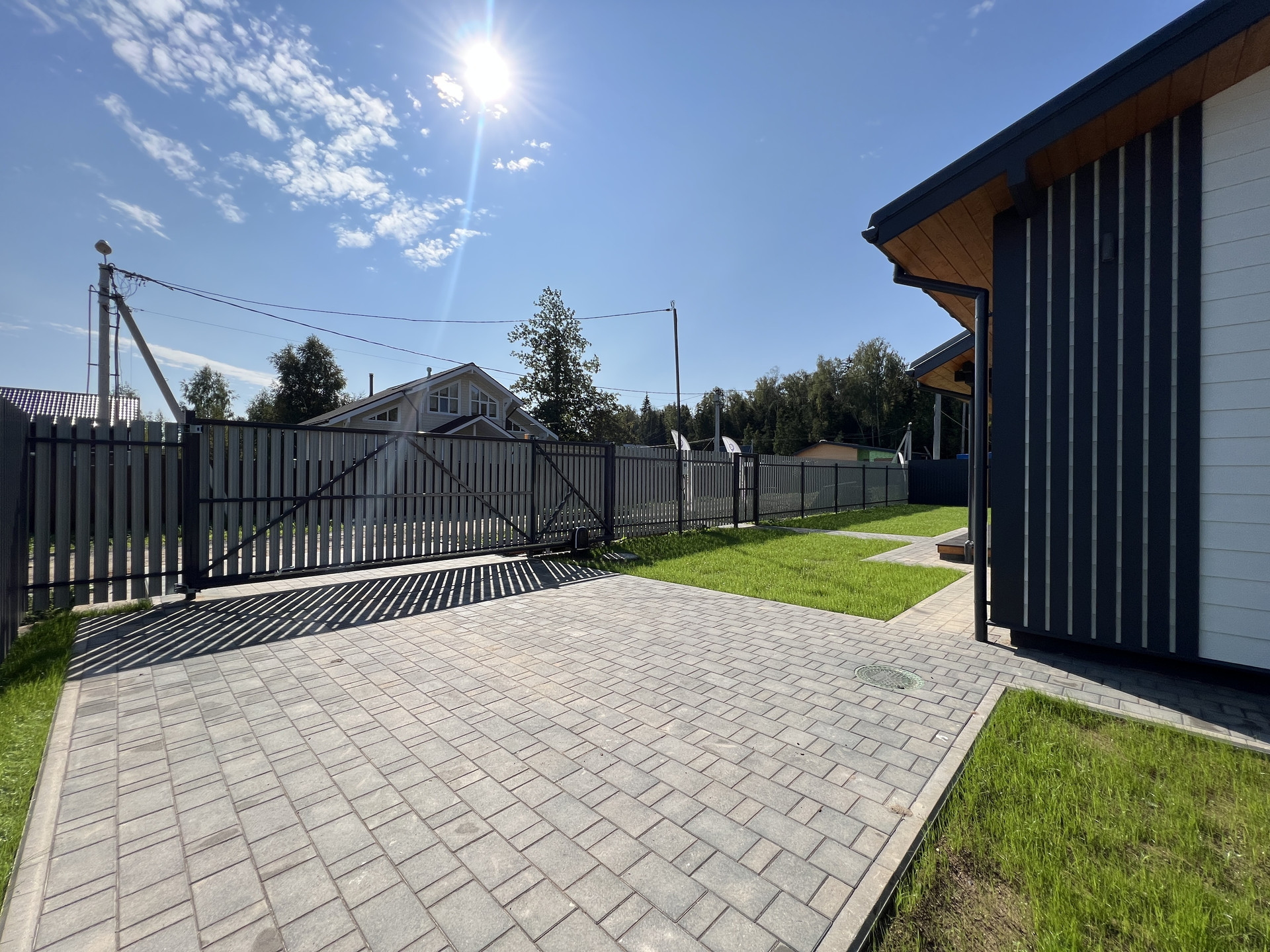 8,2 сотки (дополнительно можно рассмотреть участки 9-12 соток), выровнен, организована дренажная система, газон; Забор - металлический штакетник / рабица; Установлены откатные ворота Алютех; Оборудовано место для машины с подготовкой; Отмостка, стоянка, дорожка выложены брусчаткой.