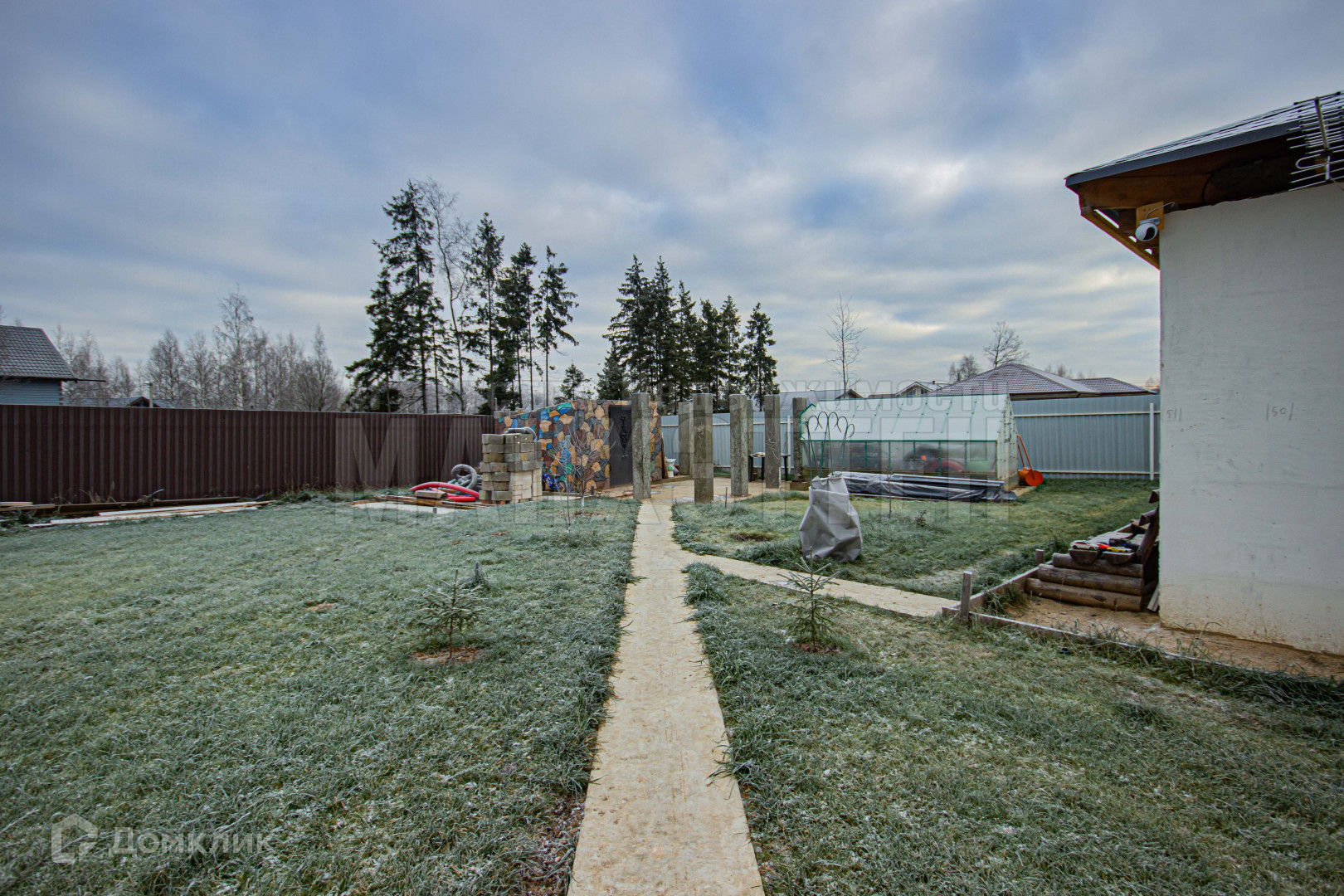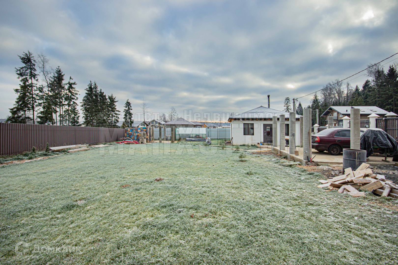 Участок огорожен металлопрофилем+ штакетником;