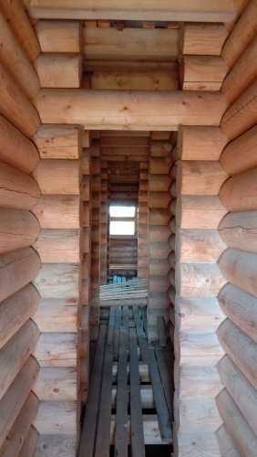 О самом доме. Материал стен - оцилиндрованный брус, строился по принципу минимум мебели, поэтому в каждой комнате есть гардеробная или кладовая. Первый этаж по сути гостевой. Небольшая гостевая комната при входе с гардеробной и санузлом, напротив большой гардероб, далее открытая площадь с лестницей каминным залом со вторым светом и видом на лес и ручей, кухонная зона объединенная с обеденной зоной и выходом на огромную видовую веранду. Так же выход на веранду предусмотрен и из каминного зала. Высота потолков в каминном зале около 7-8 метров. На видовой веранде размещено 2 беседки пристроенные к дому, планировалось оборудовать зону отдыха в непогоду и барбекю. В доме второй свет, поэтому второй этаж меньше первого и на нем размещено 2 просторные спальни со своими гардеробными и санузлами. Так же планировался переход в зимний сад, который должен был быть рядом над гаражом.