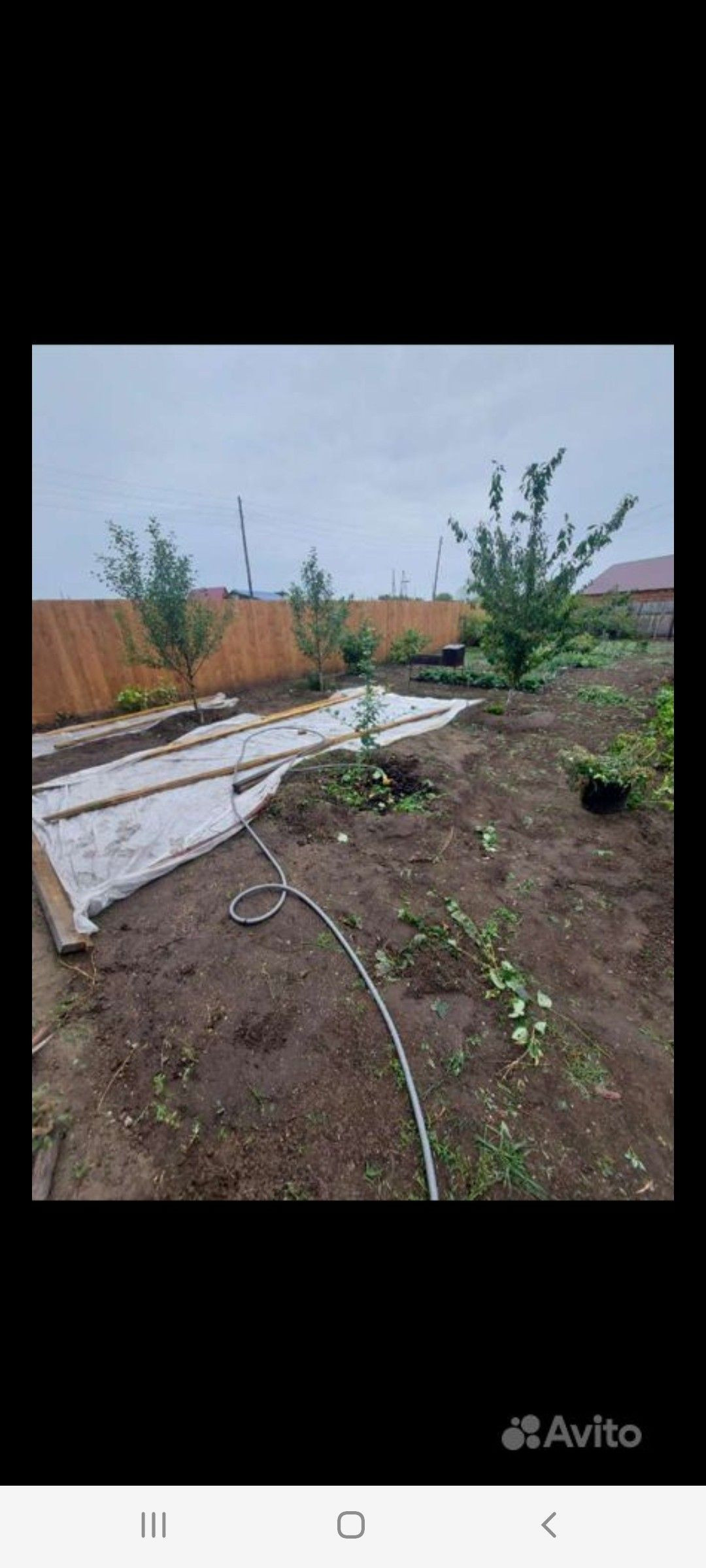 Ухоженный участок, плодовые деревья,частично засеян газоном.