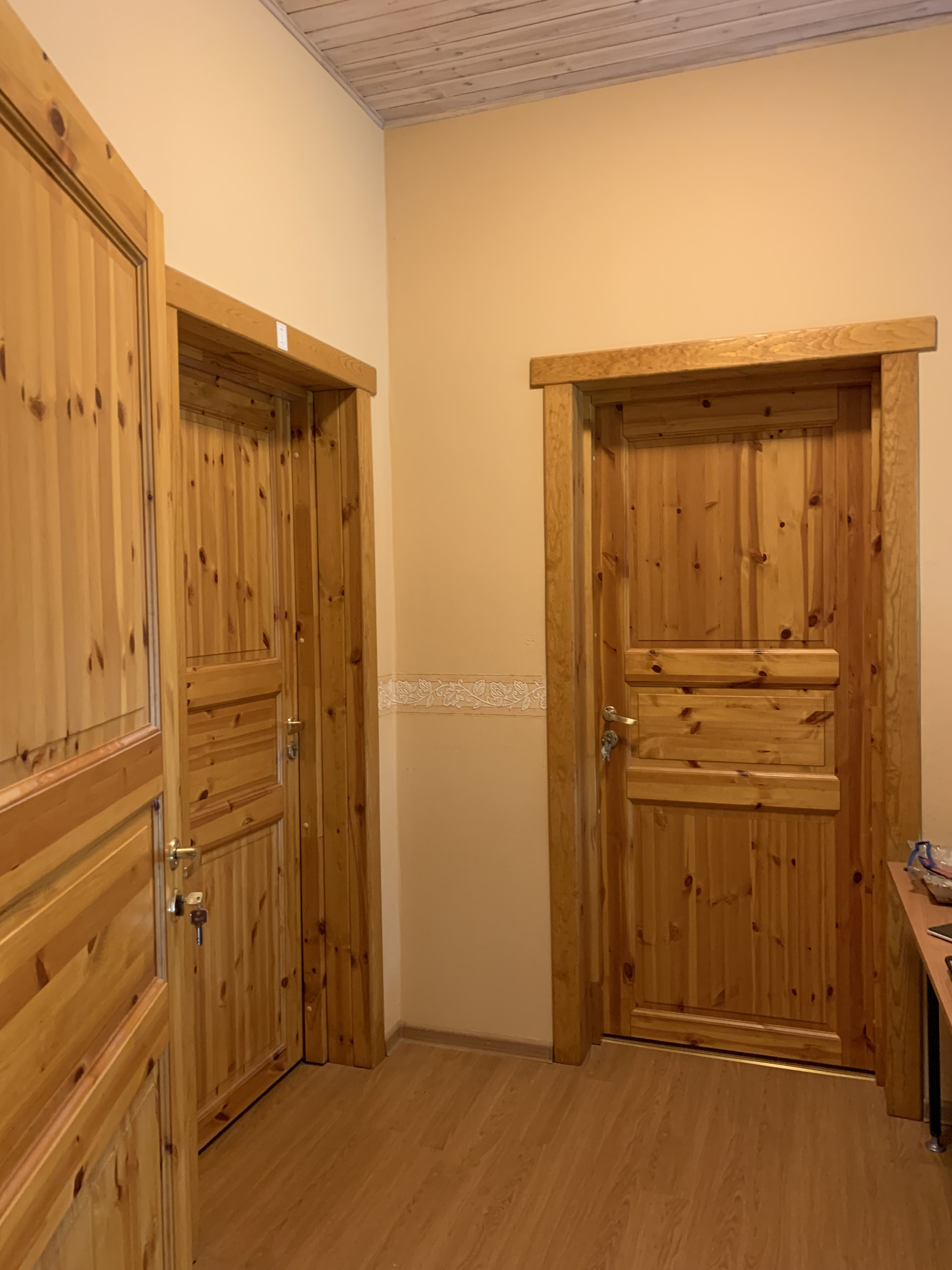 Всего в доме 8 комнат, три кухни, четыре санузла. На данный момент планировка дома предусматривает 4 отдельных блока, со своей кухней, санузлом и спальней. Дом легко подается планированию пространства, можно без труда перекроить планировку под любые цели. В доме выполнена шумоизоляция, на батареях имеются регуляторы температуры.