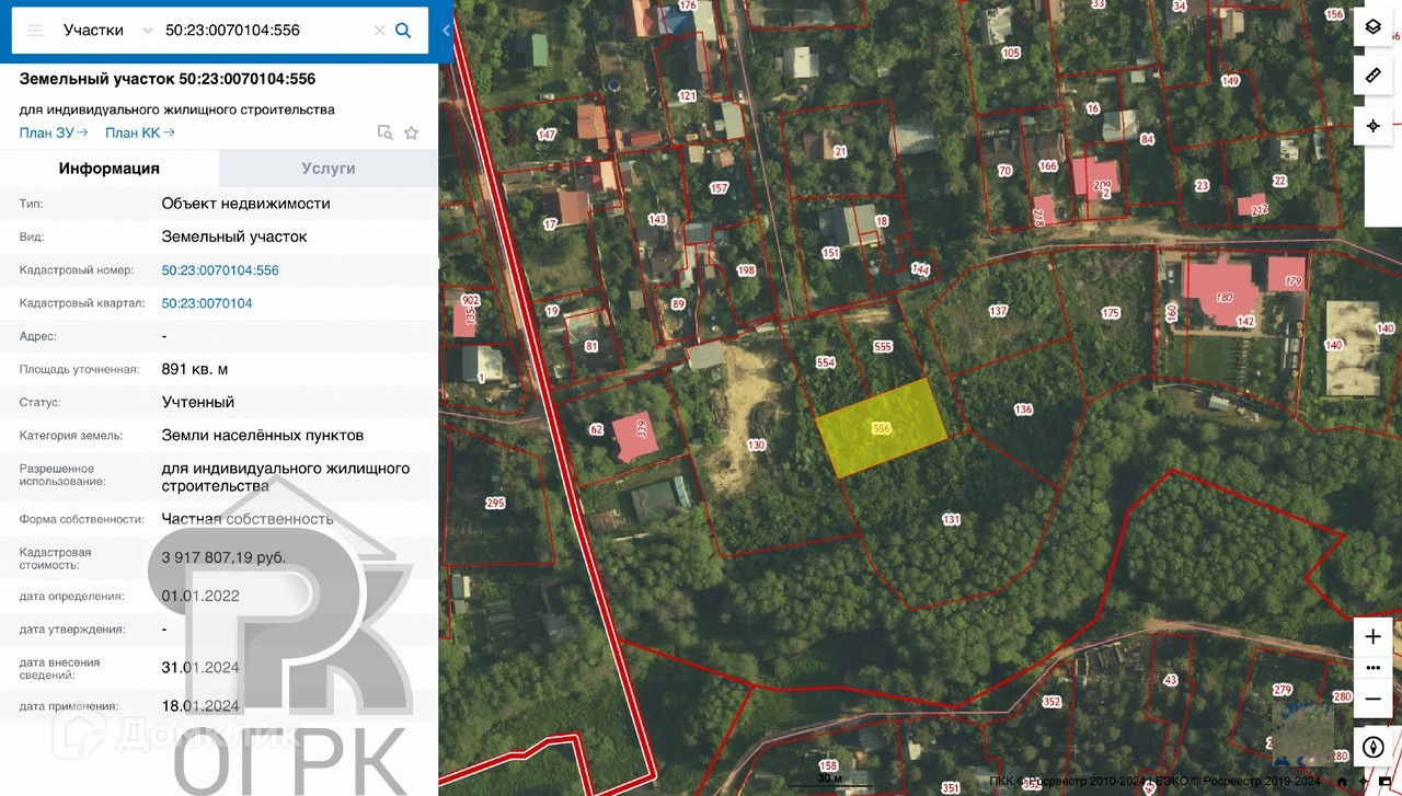 Кадастровый номер: 50:23:0070104:556