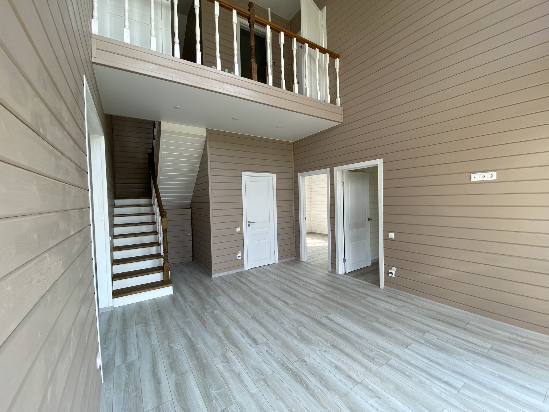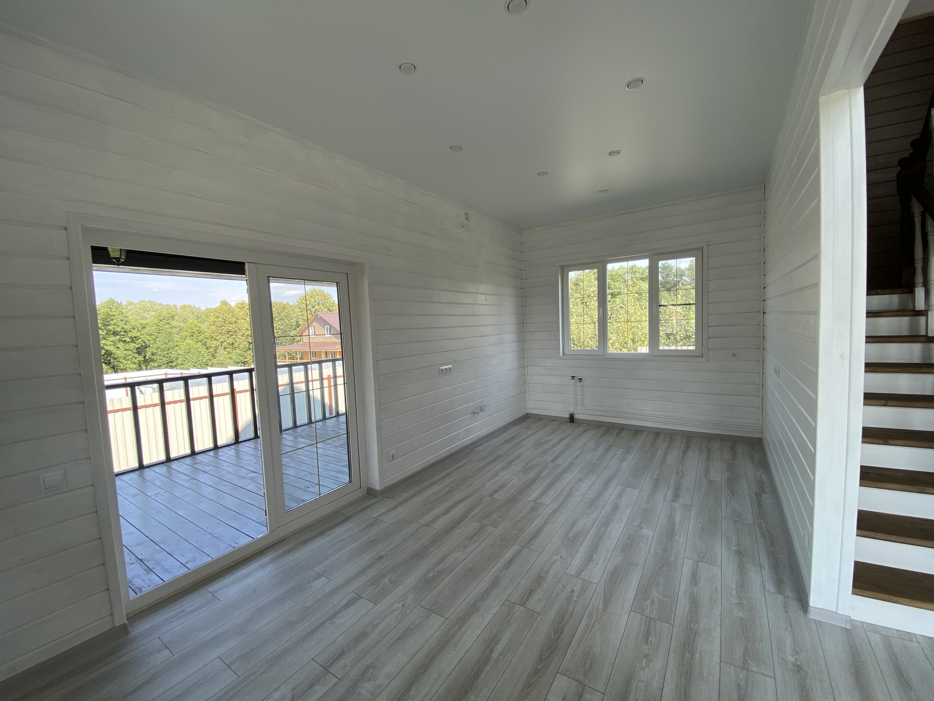 Продуманная и функциональная планировка: 1 этаж- крыльцо, прихожая, светлая гостиная со вторым светом! и панорамными окнами, кухня-столовая с выходом на просторную открытую террасу, спальня, ванная комната; 2 этаж- холл с балконом, 2 спальни, гардеробная, санузел.