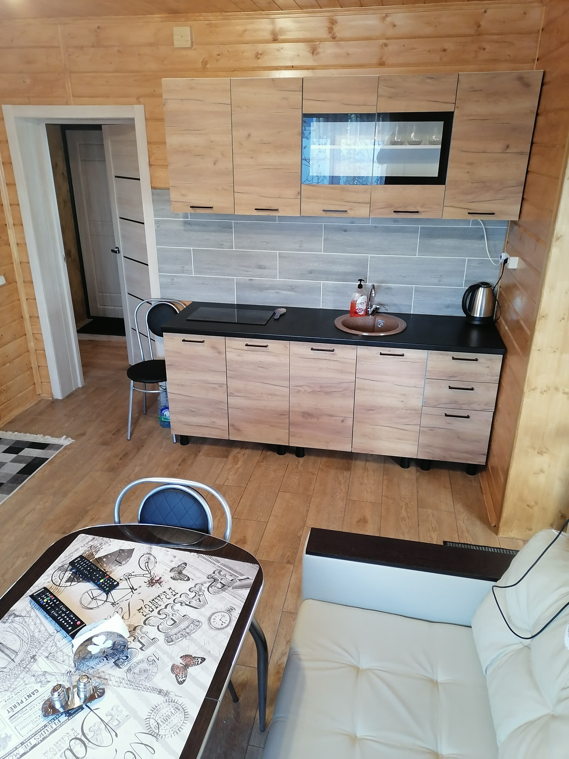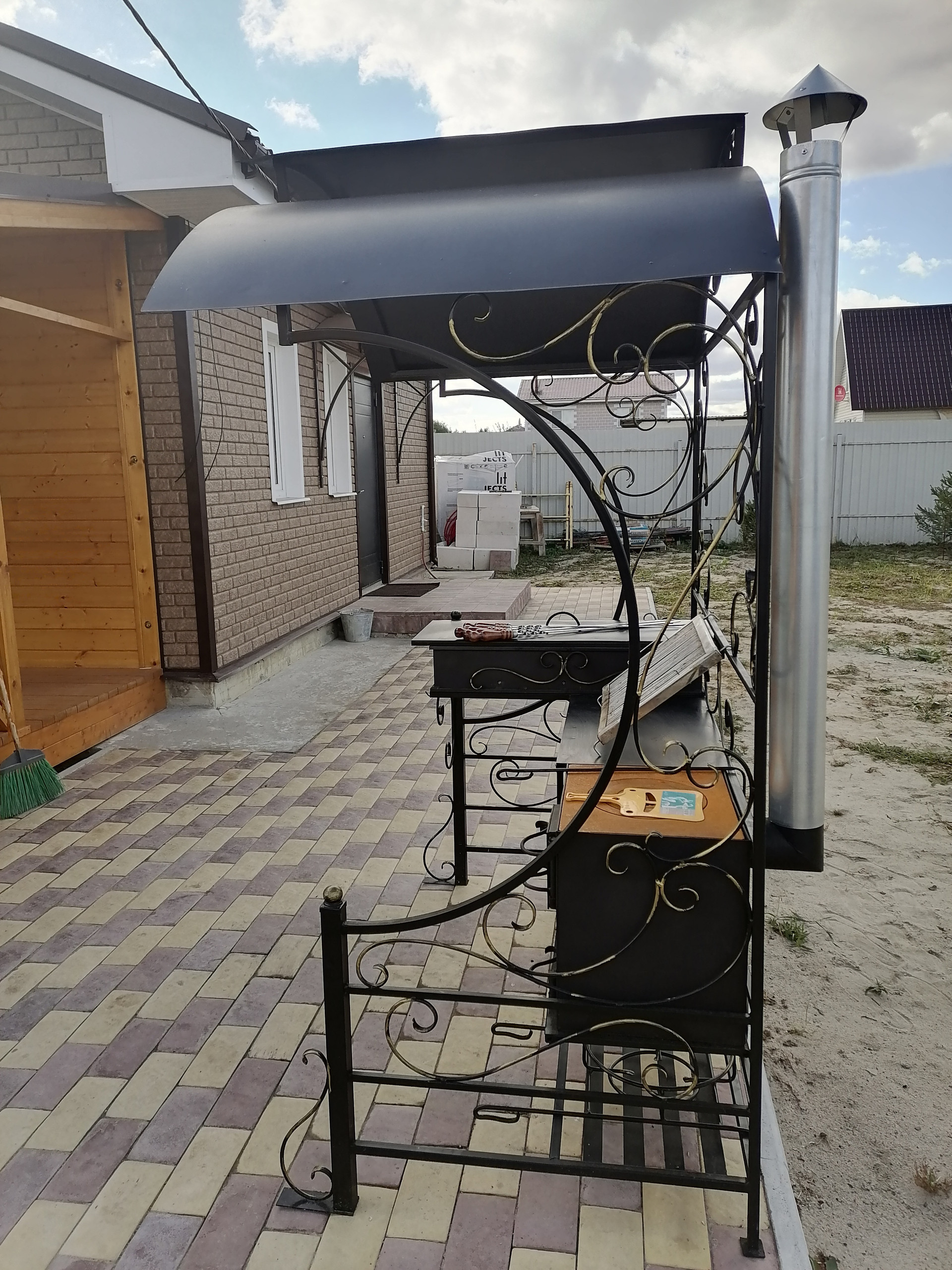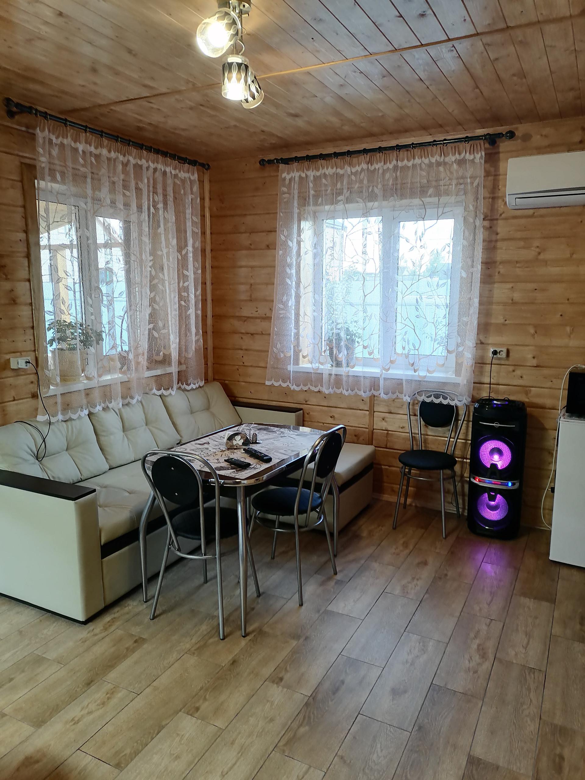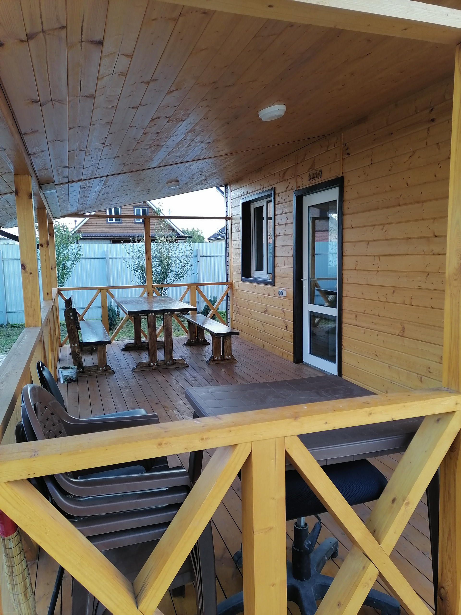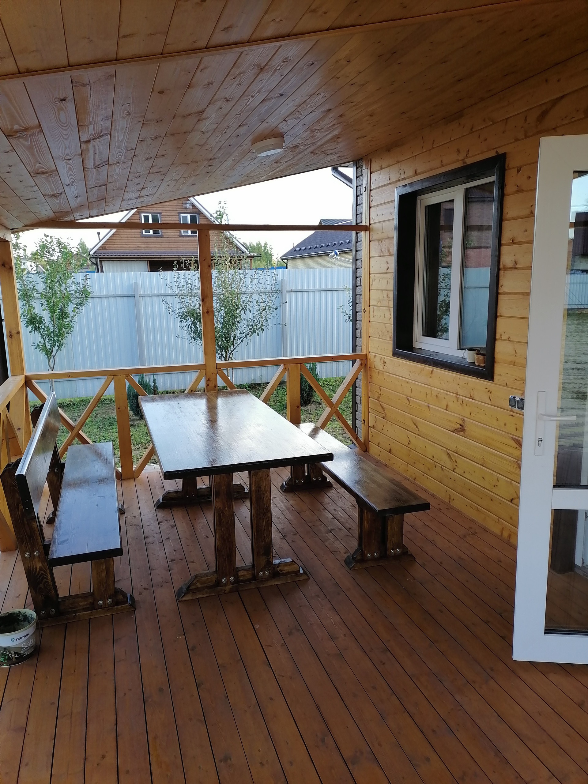 ДОМ-баня, капитальное строение из газосиликатного блока размером 7х7 метра с пристроенной террасой 7х3 метра. Снаружи дом обшит сайдингом с утеплением 5см, внутренняя отделка имитацией бруса. Дом состоит из нескольких помещений: кухня-гостиная с камином, парная с отделкой из липы, помывочная, туалет, подсобное помещение (котельная), коридор. Во всем доме сделан теплый пол, отопление- электрический котел 4.5 кВт, собственная скважина, установлена насосная станция с системой фильтрации воды, установлен кондиционер и спутниковое тв. Вокруг дома выложена тротуарная плитка, обустроена мангальная зона (с хорошим мангалом). По периметру участка насажено много растений.