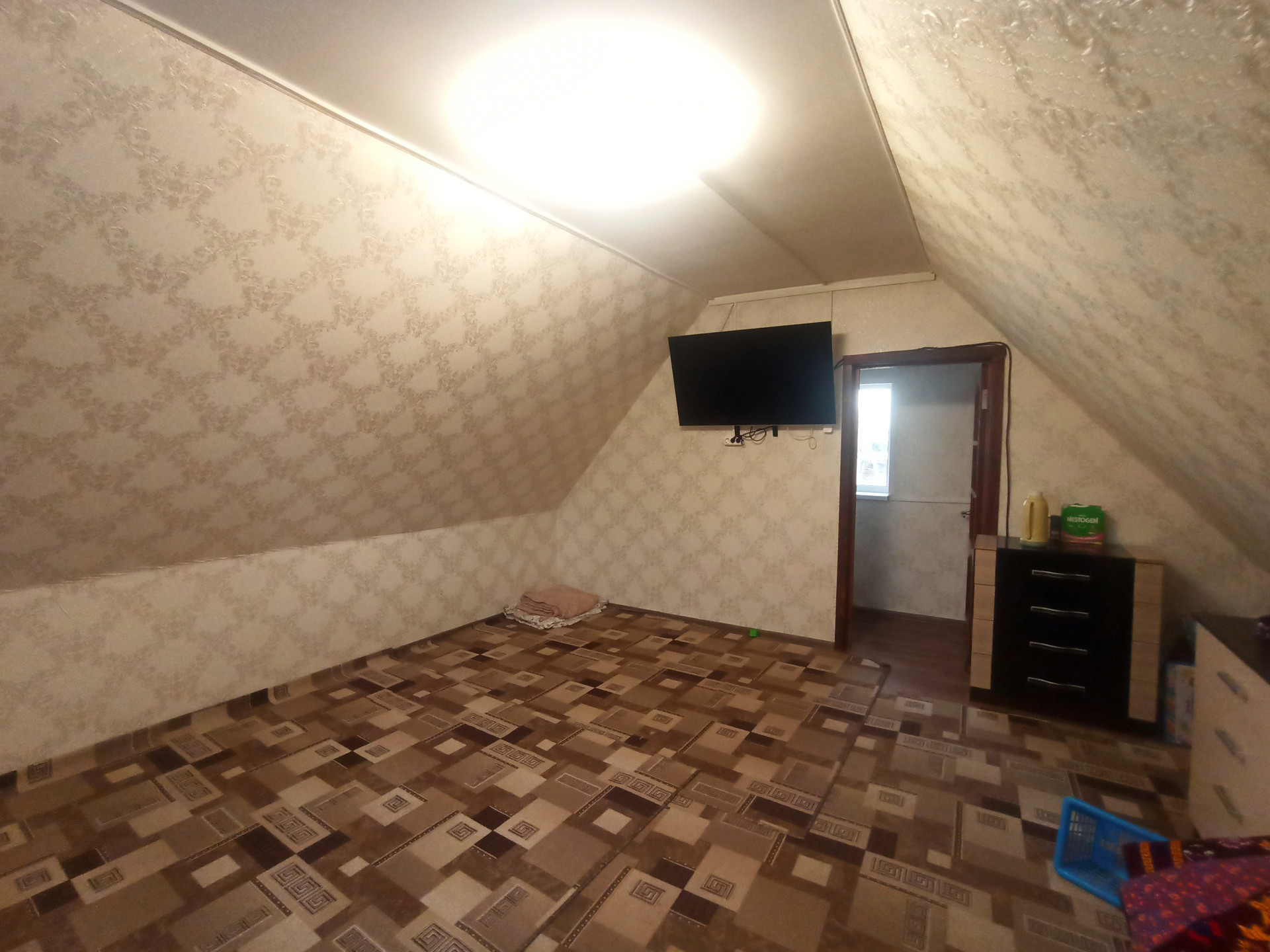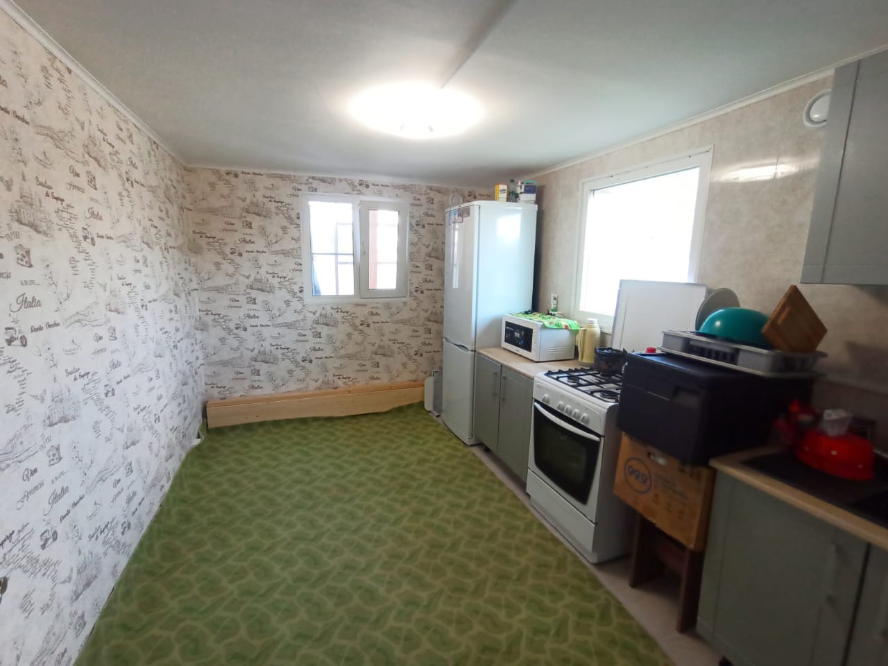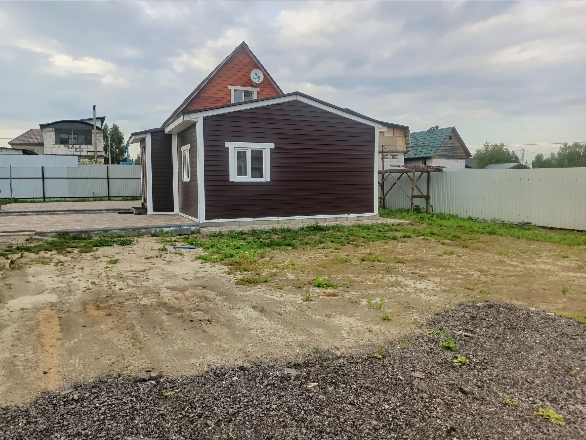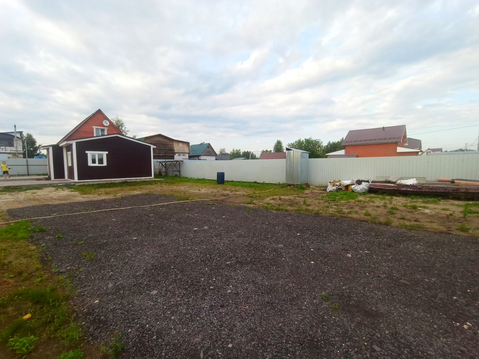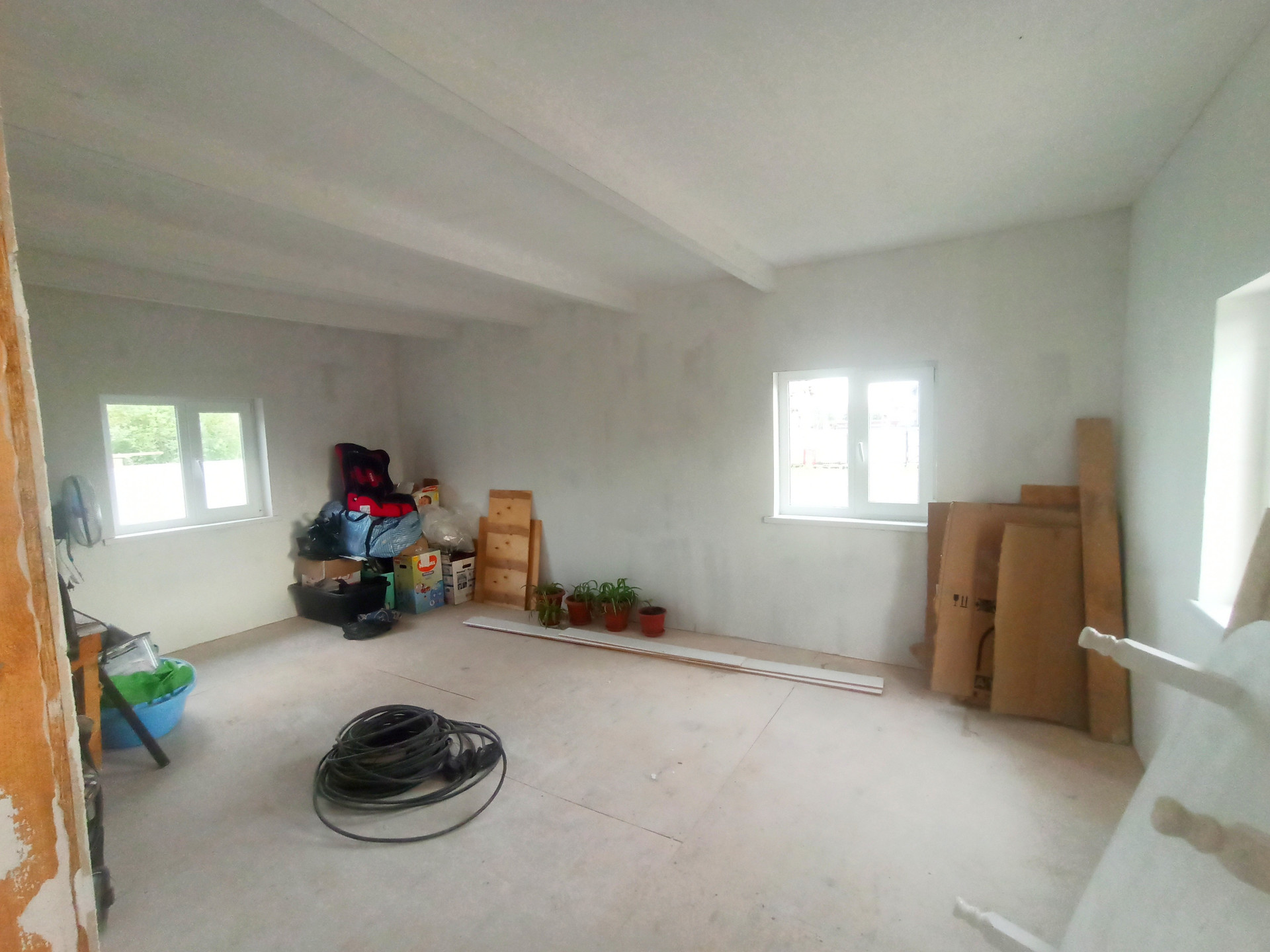 Дом выполнен по каркасной технологии и имеет все необходимые коммуникации: свет, вода, отопление. На первом этаже расположена большая кухня, санузел, коридор и одна комната с пред чистовой отделкой. На втором этаже находится просторная спальня. Участок земли площадью 8 соток огорожен забором, есть летний туалет и ворота для заезда машины.