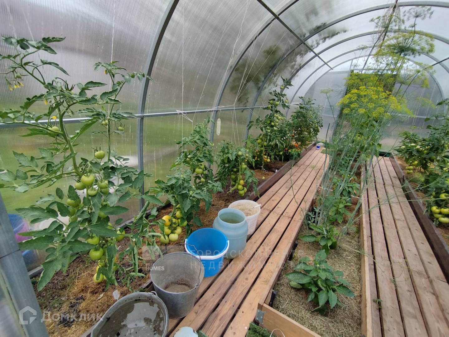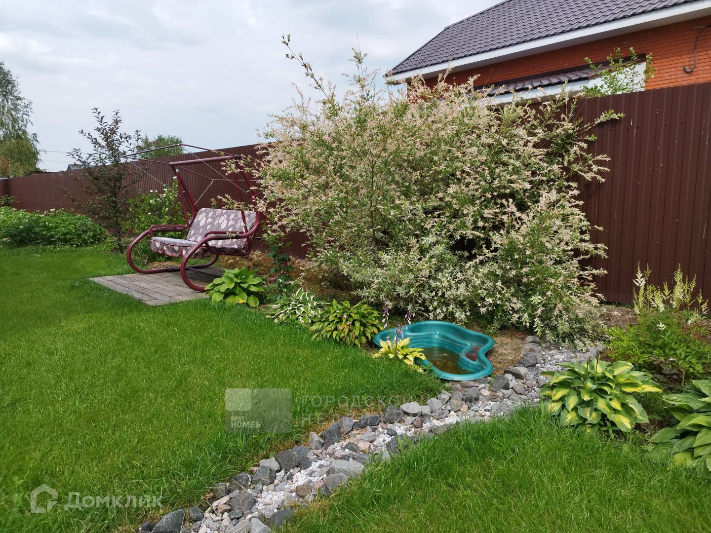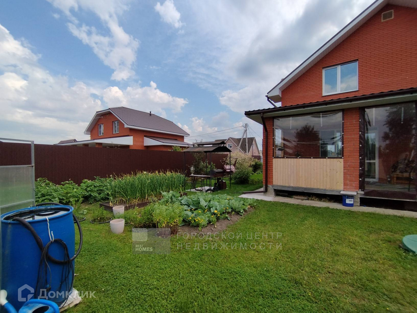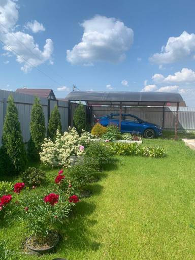 Участок восемь соток очень ухоженный. Замечательный газон, клумбы с цветами и декоративными кустарниками. На огороде установлены высокие металлические грядки, разбит молодой плодовый сад (яблони, груша, слива, вишня, чёрная смородина, крыжовник, жимолость, малина ремонтантная и «Камберленд»), теплица из поликарбоната.