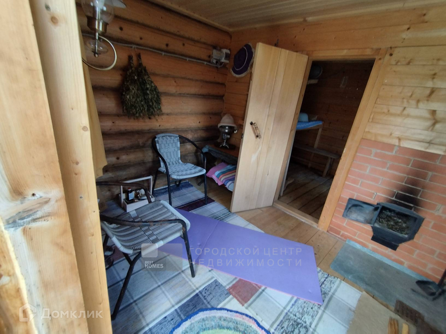 В небольшой баньке из сосновых бревен можно расслабится и получить удовольствие от русской парной. Для хранения дров рядом с баней - крытый дровник. А для садового инвентаря предусмотрена кладовая.